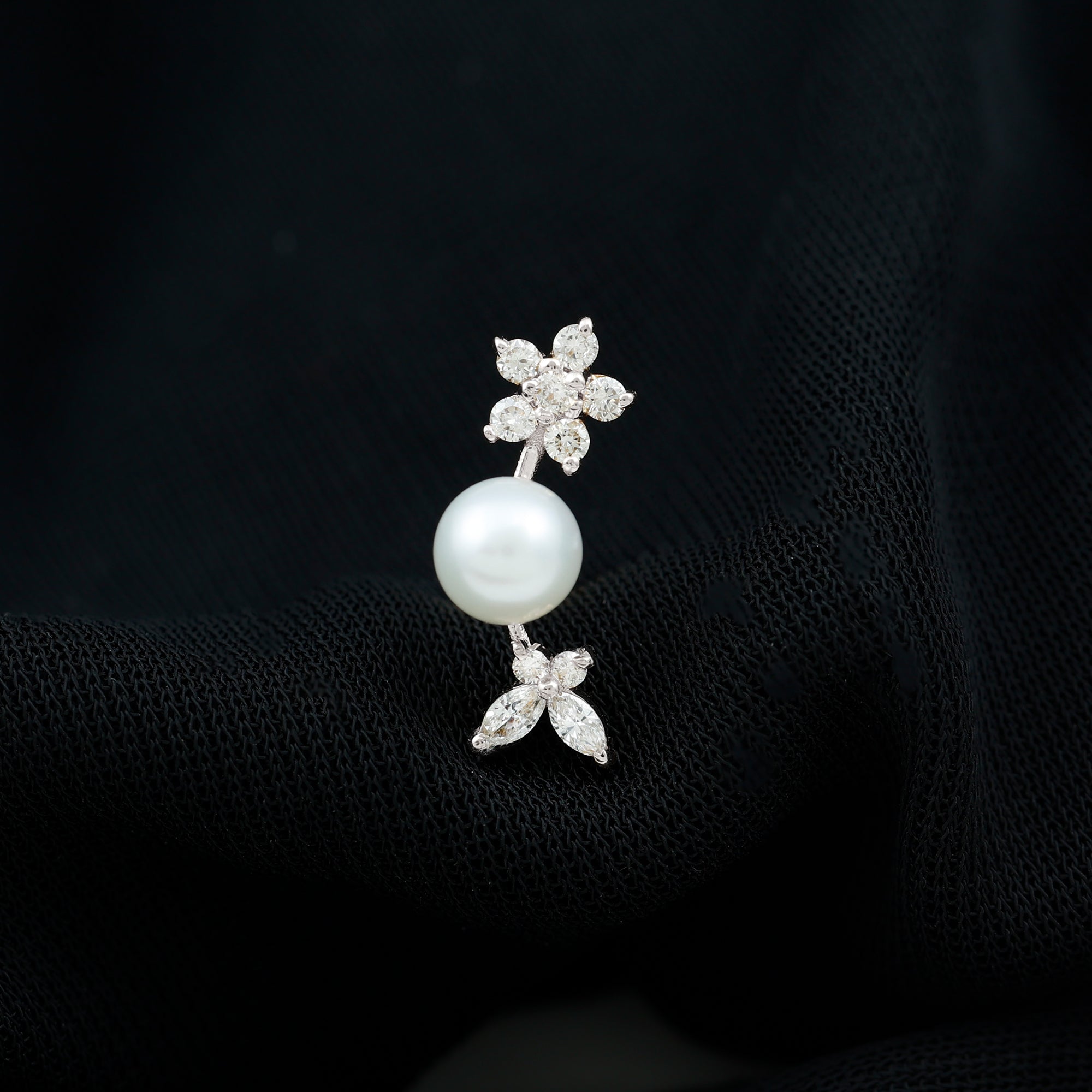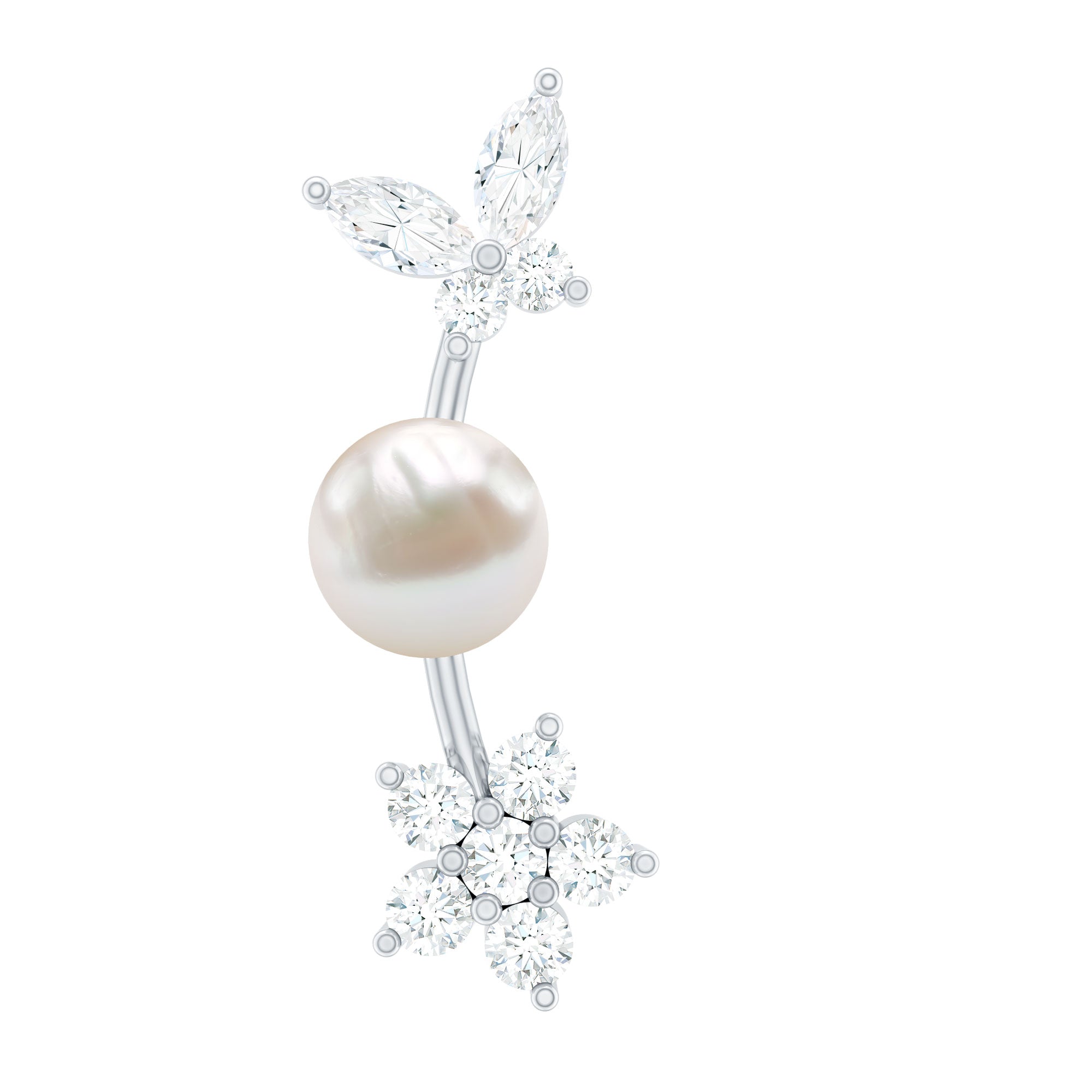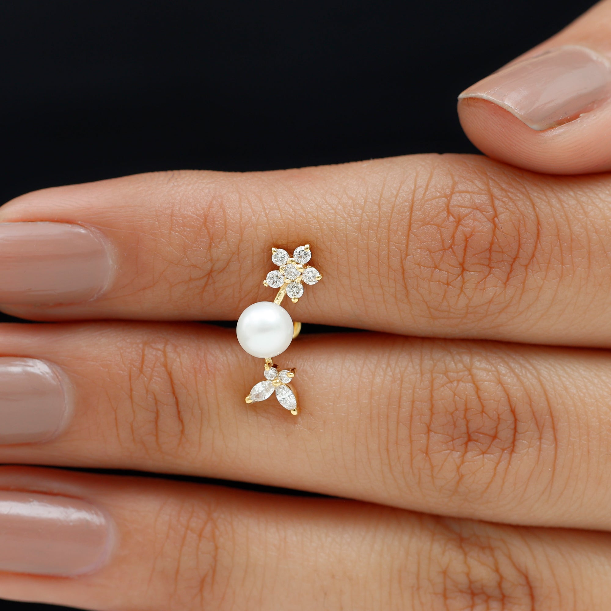 Nature Inspired Freshwater Pearl and Moissanite Crawler Earring