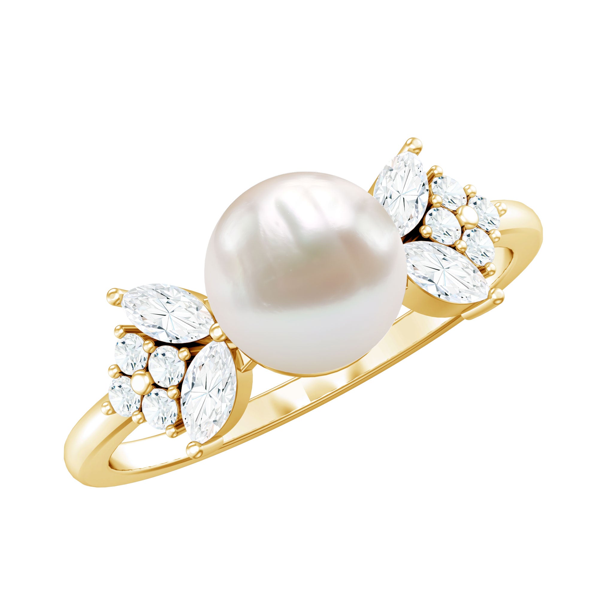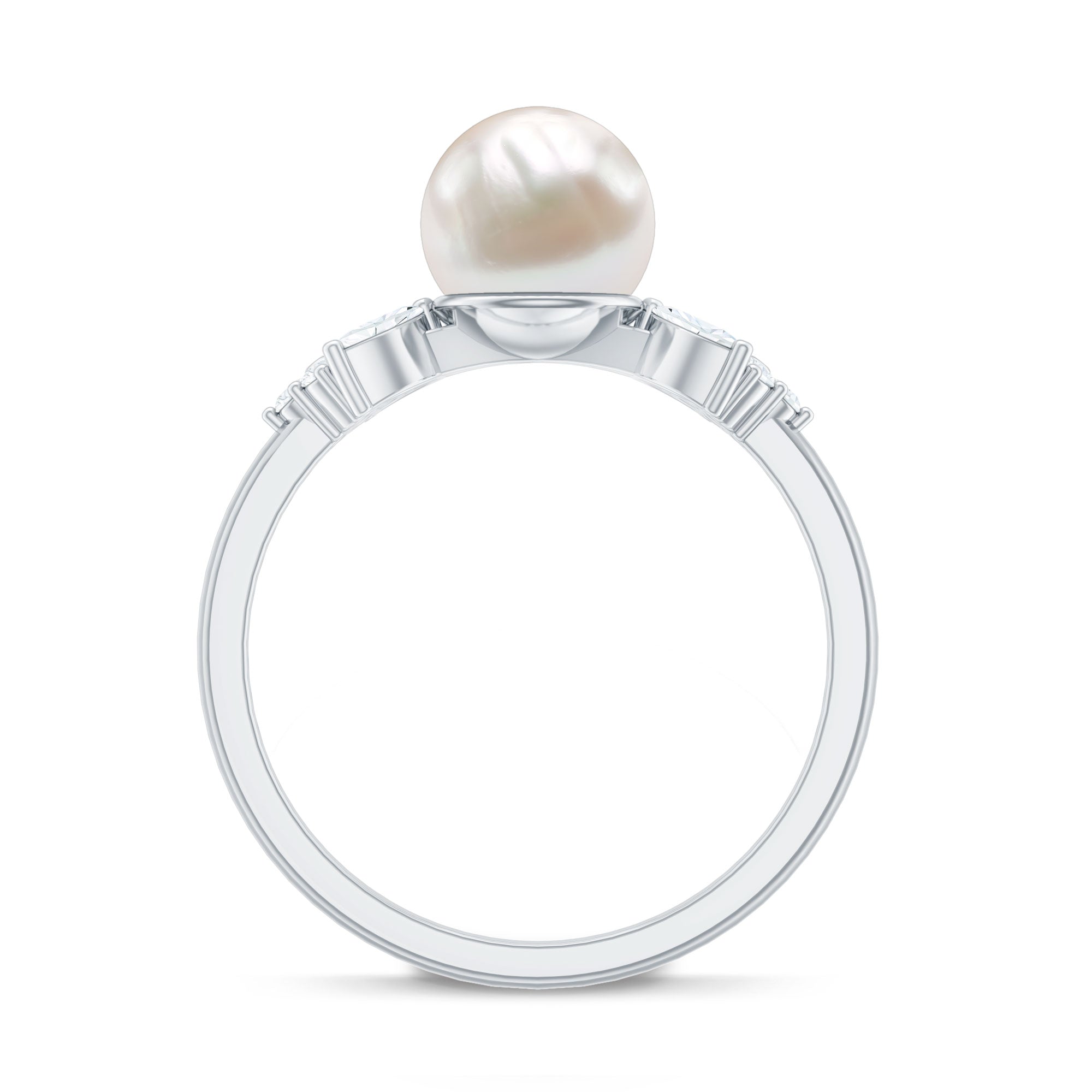 Nature Inspired Freshwater Pearl Solitaire Ring with Diamond
