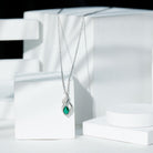 Nature Inspired Lab Emerald Designer Necklace with Silver Chain