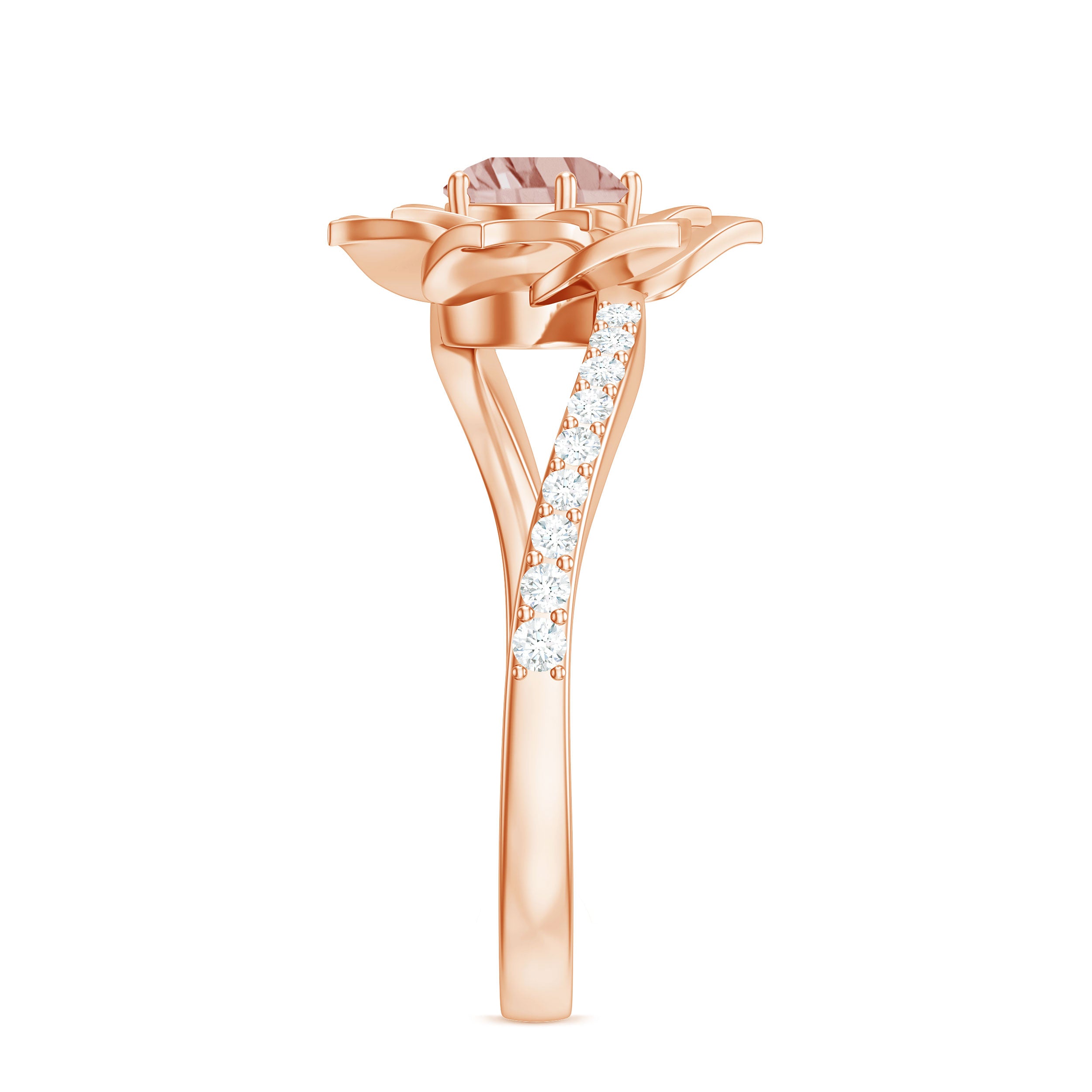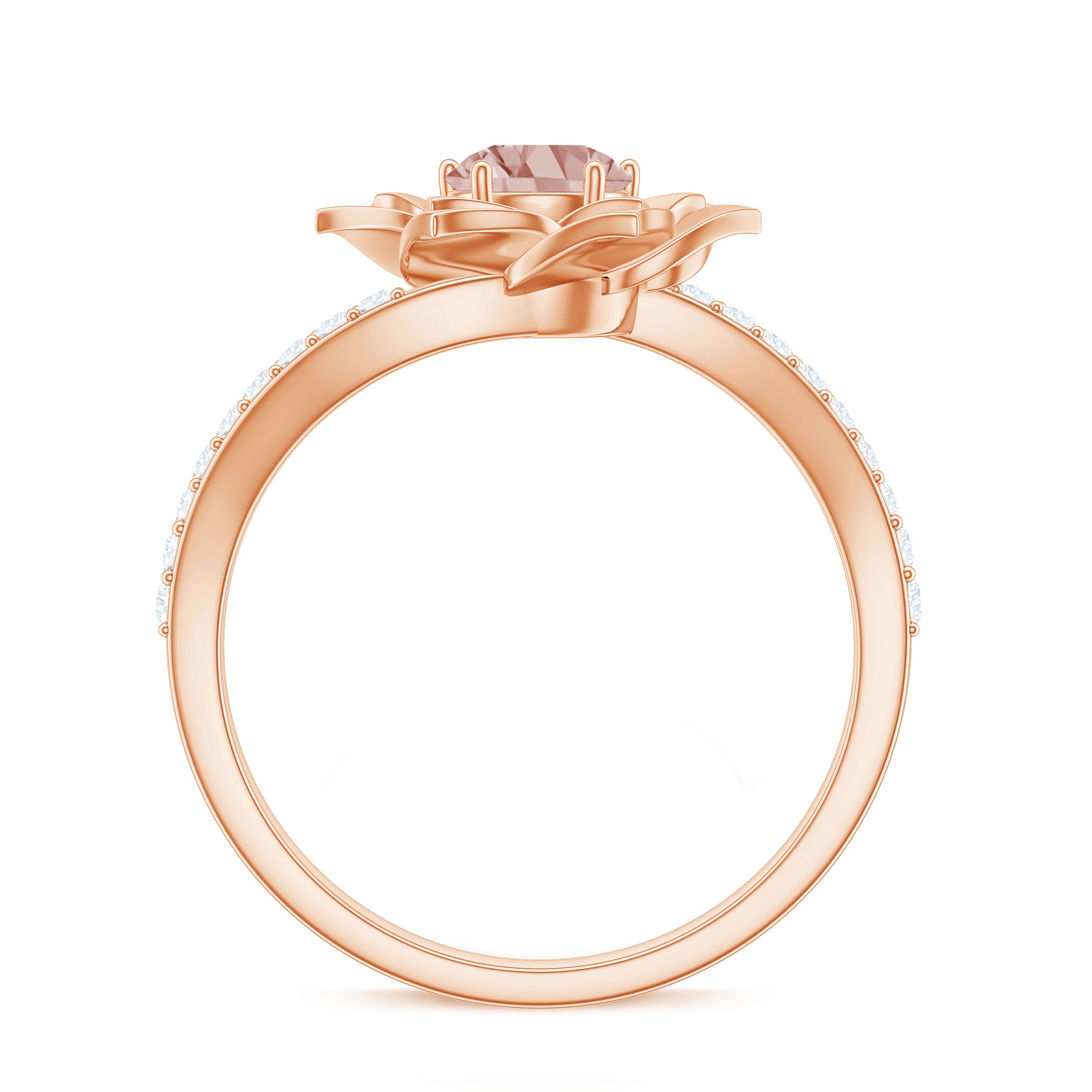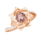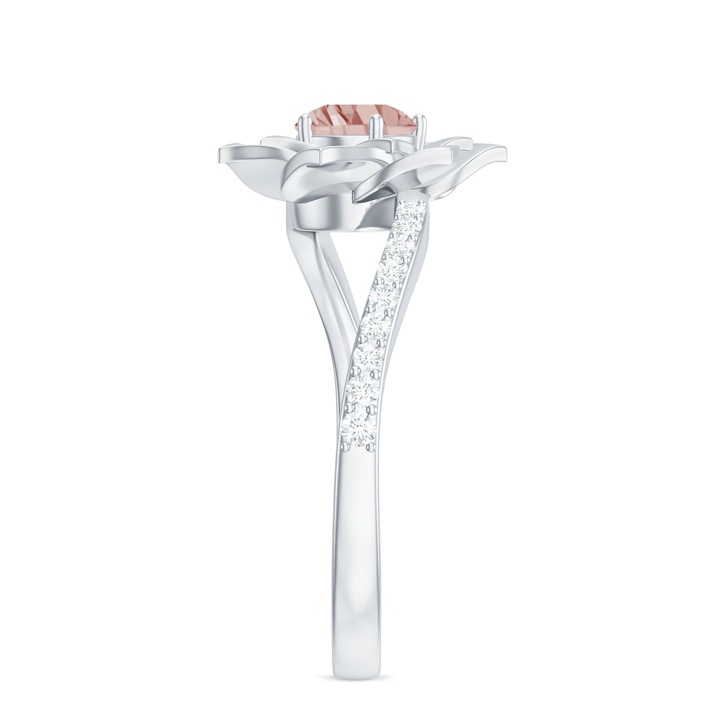 Blossom like a flower with this nature-inspired morganite floral ring with Diamond. The center morganite gemstone, with its soft pinkish hues, evokes the beauty of springtime. The Diamond side stones, add a touch of glamour and sophistication. The Diamond side stones are arranged in a way that suggests a flowers stem and leaves. This ring is perfect for any occasion, from a romantic dinner date to a formal wedding ceremony. It is also a beautiful gift for any woman who loves nature and all things beautiful.