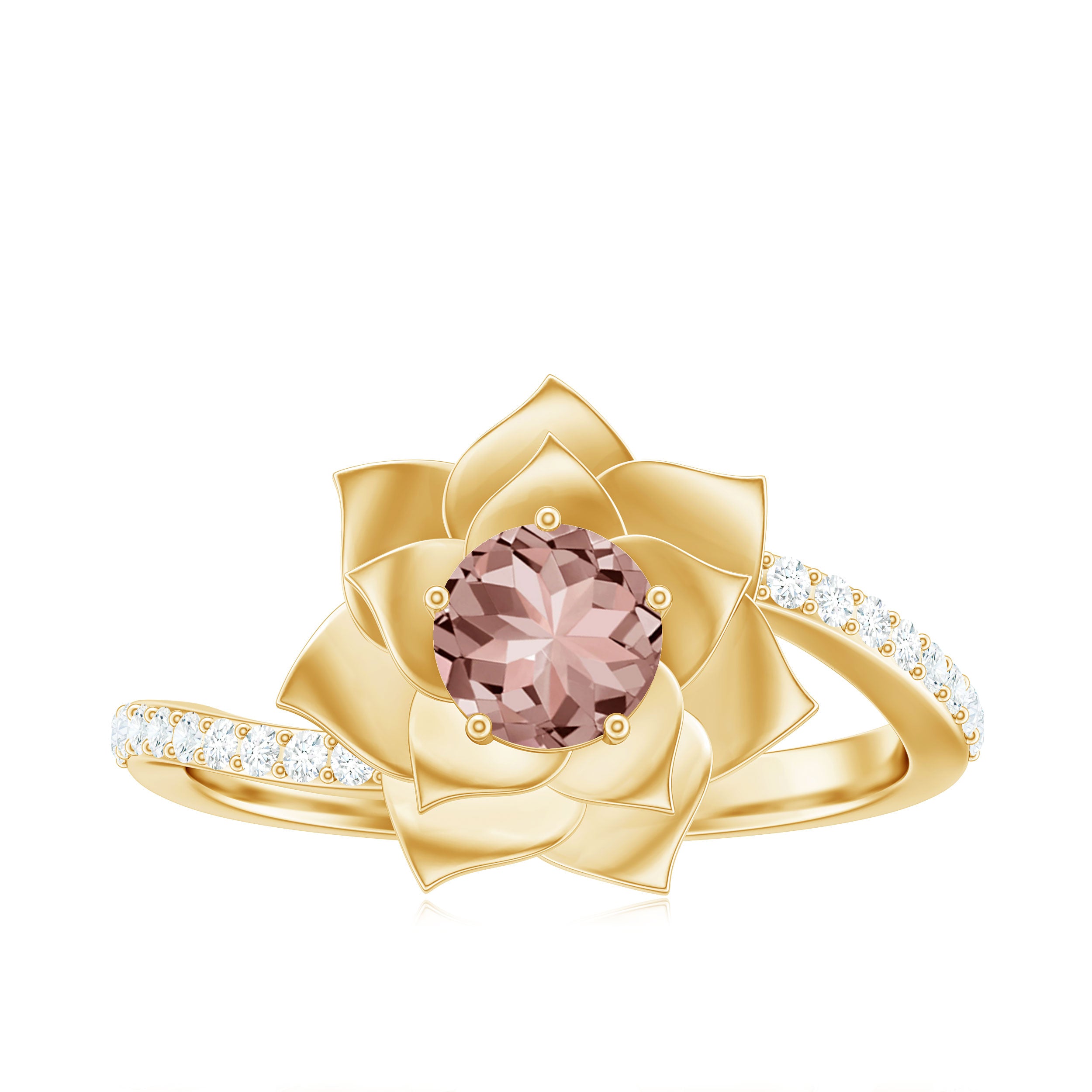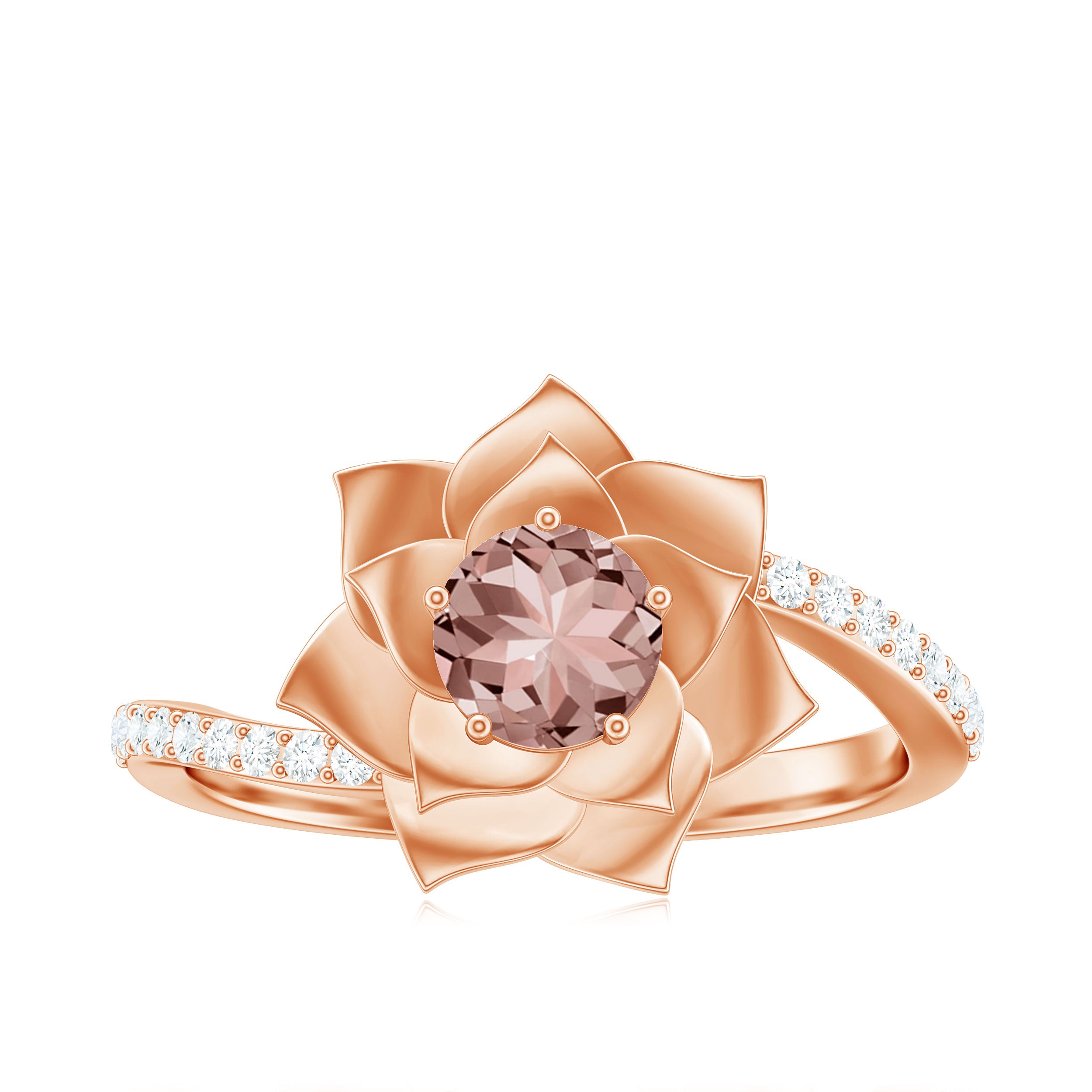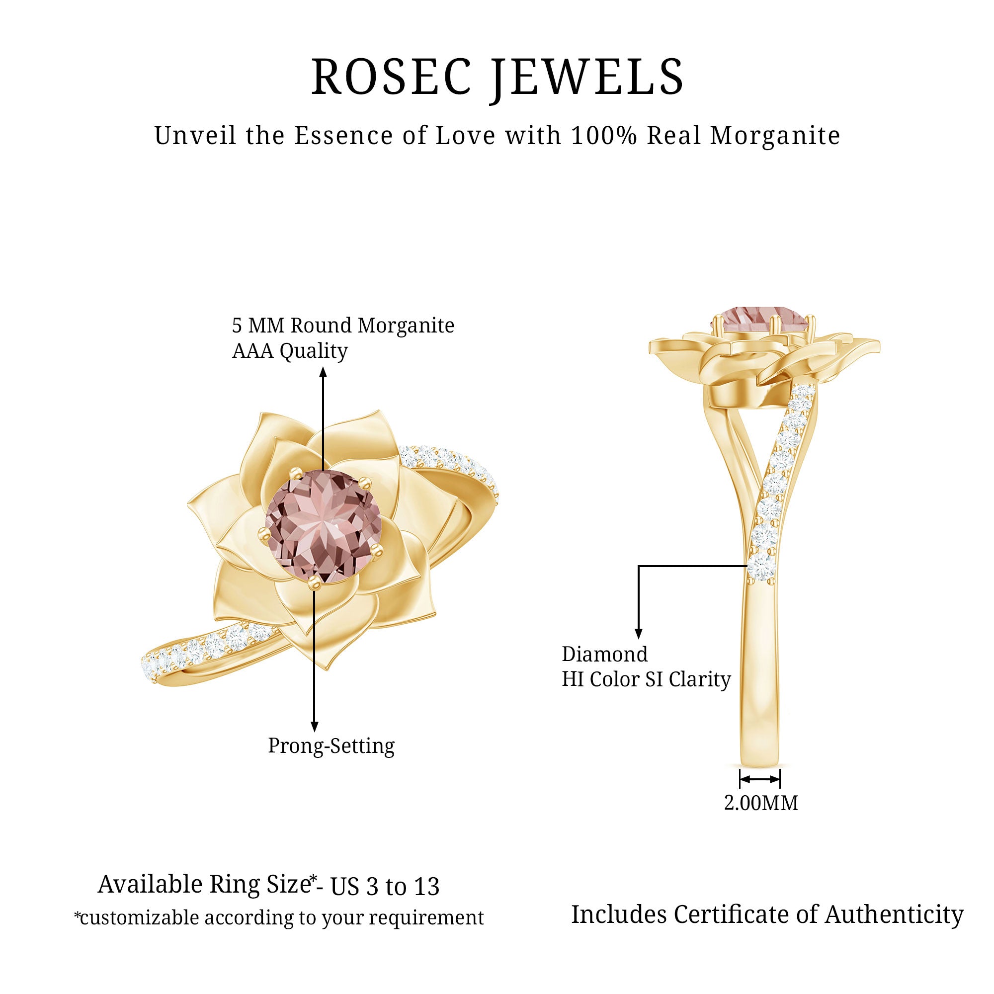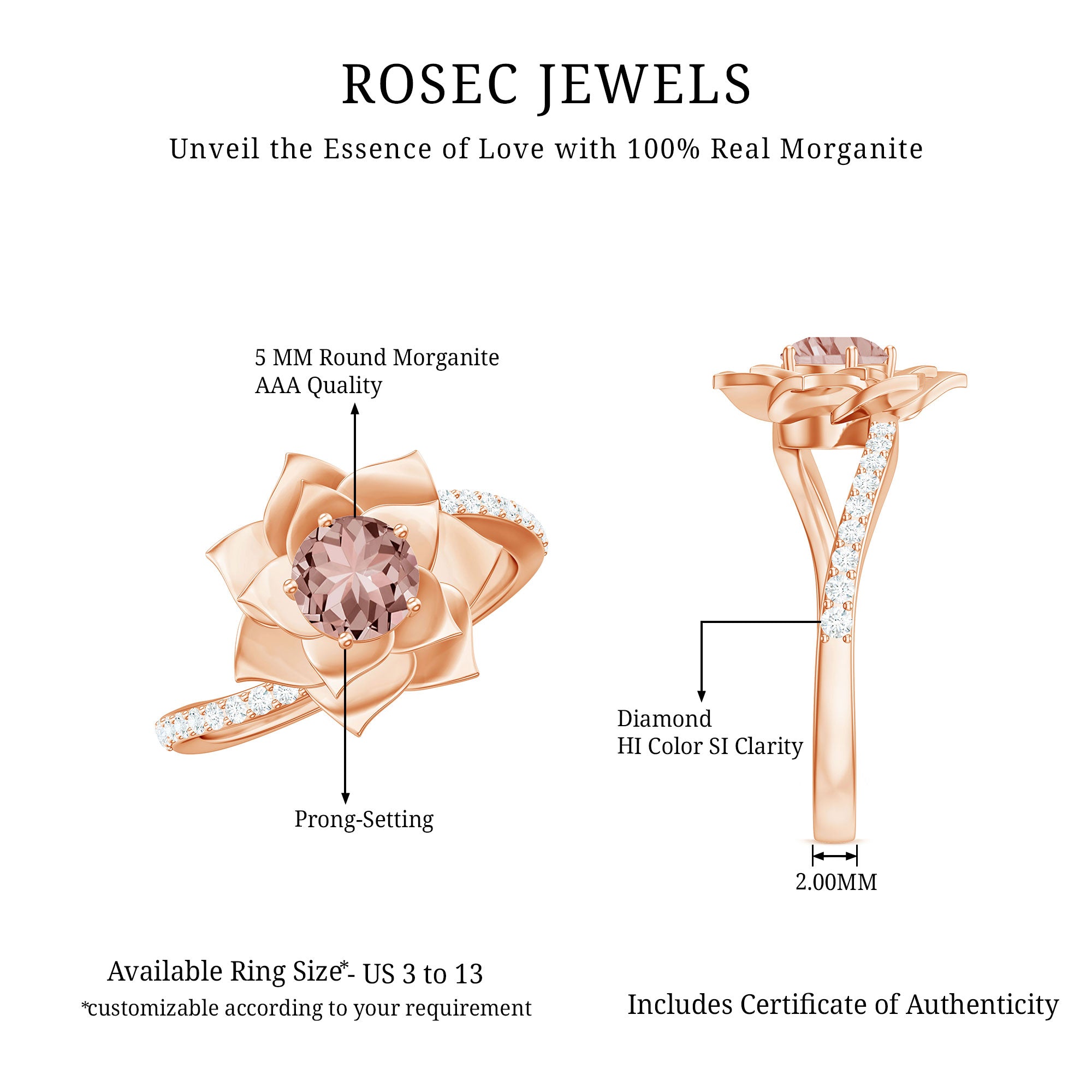 Blossom like a flower with this nature-inspired morganite floral ring with Diamond. The center morganite gemstone, with its soft pinkish hues, evokes the beauty of springtime. The Diamond side stones, add a touch of glamour and sophistication. The Diamond side stones are arranged in a way that suggests a flowers stem and leaves. This ring is perfect for any occasion, from a romantic dinner date to a formal wedding ceremony. It is also a beautiful gift for any woman who loves nature and all things beautiful.