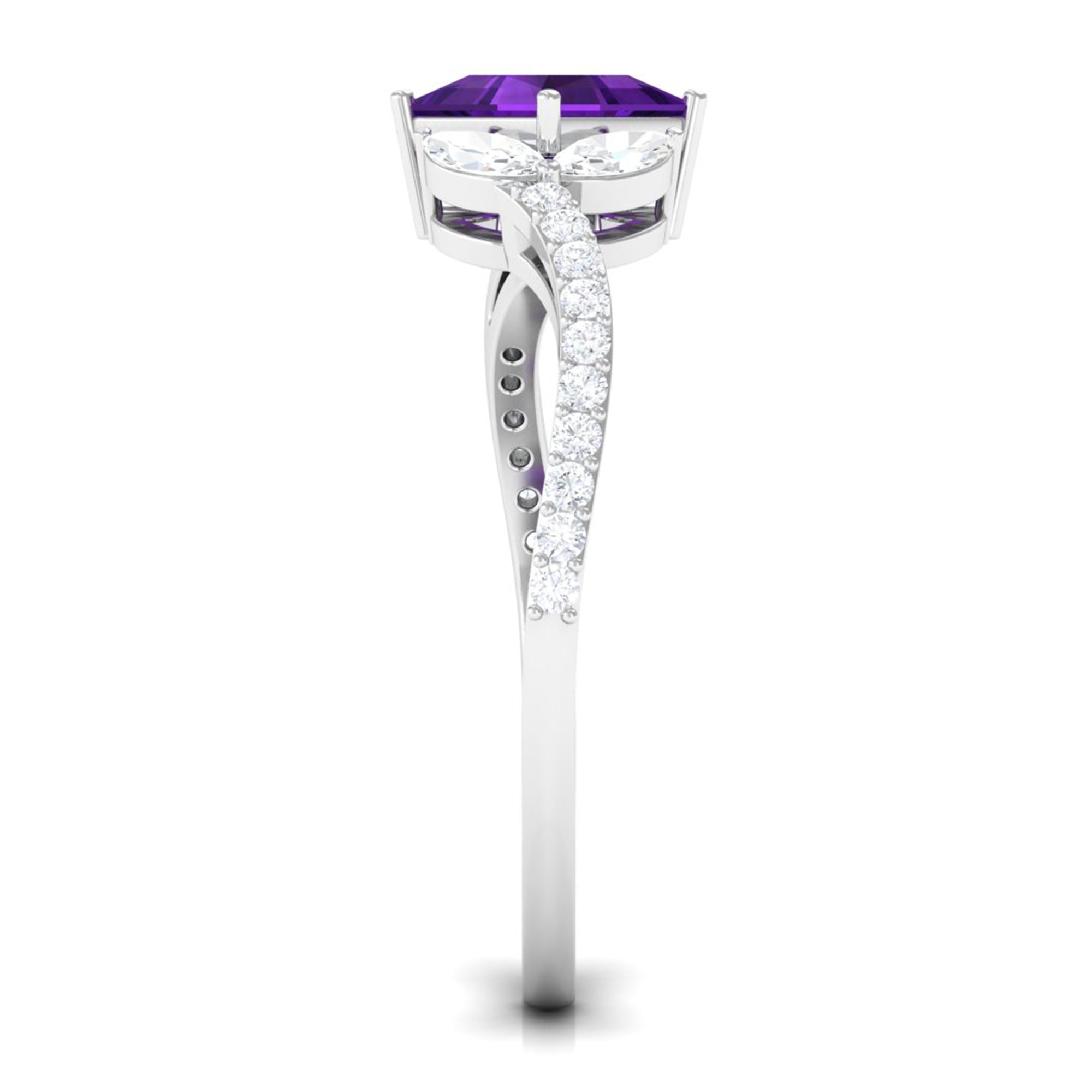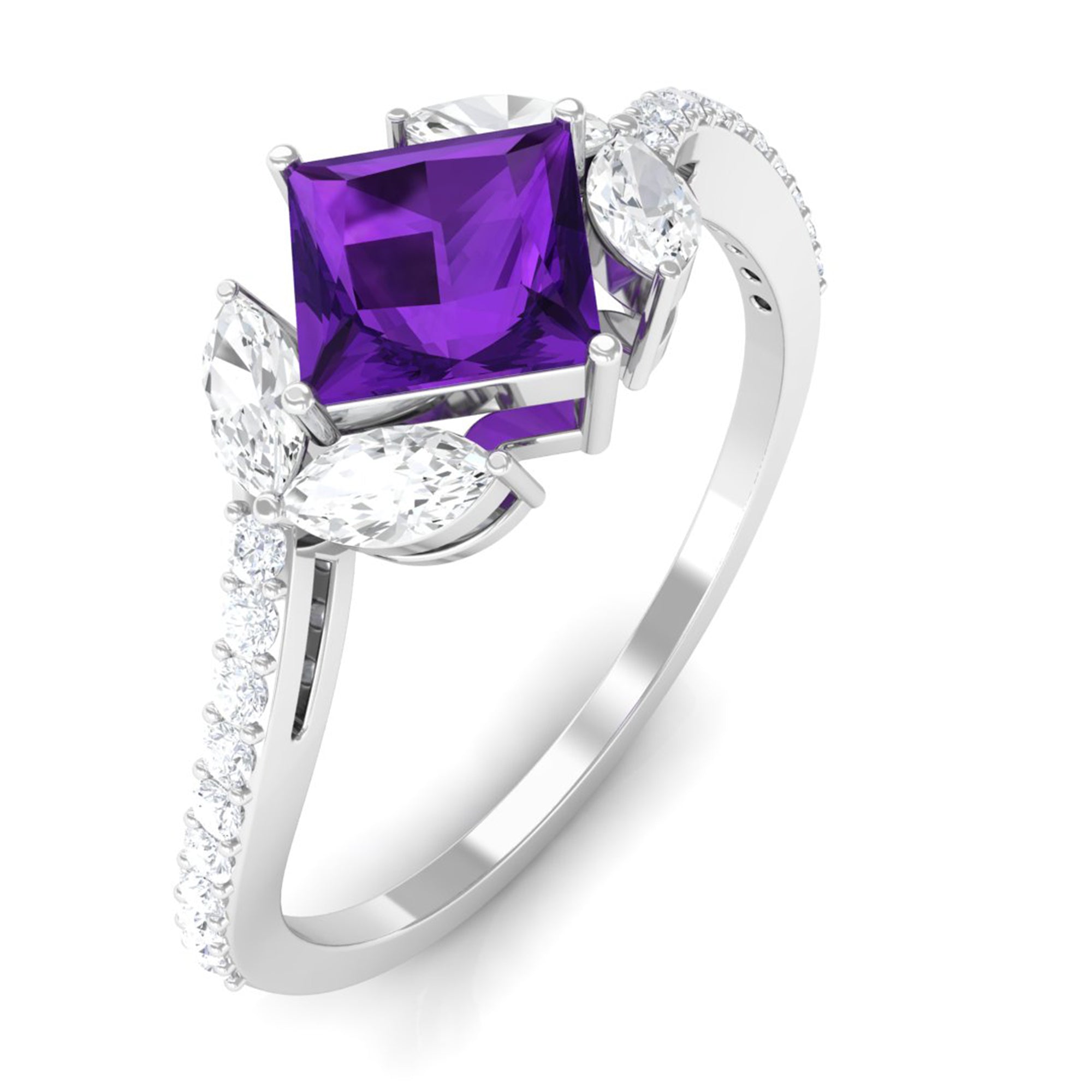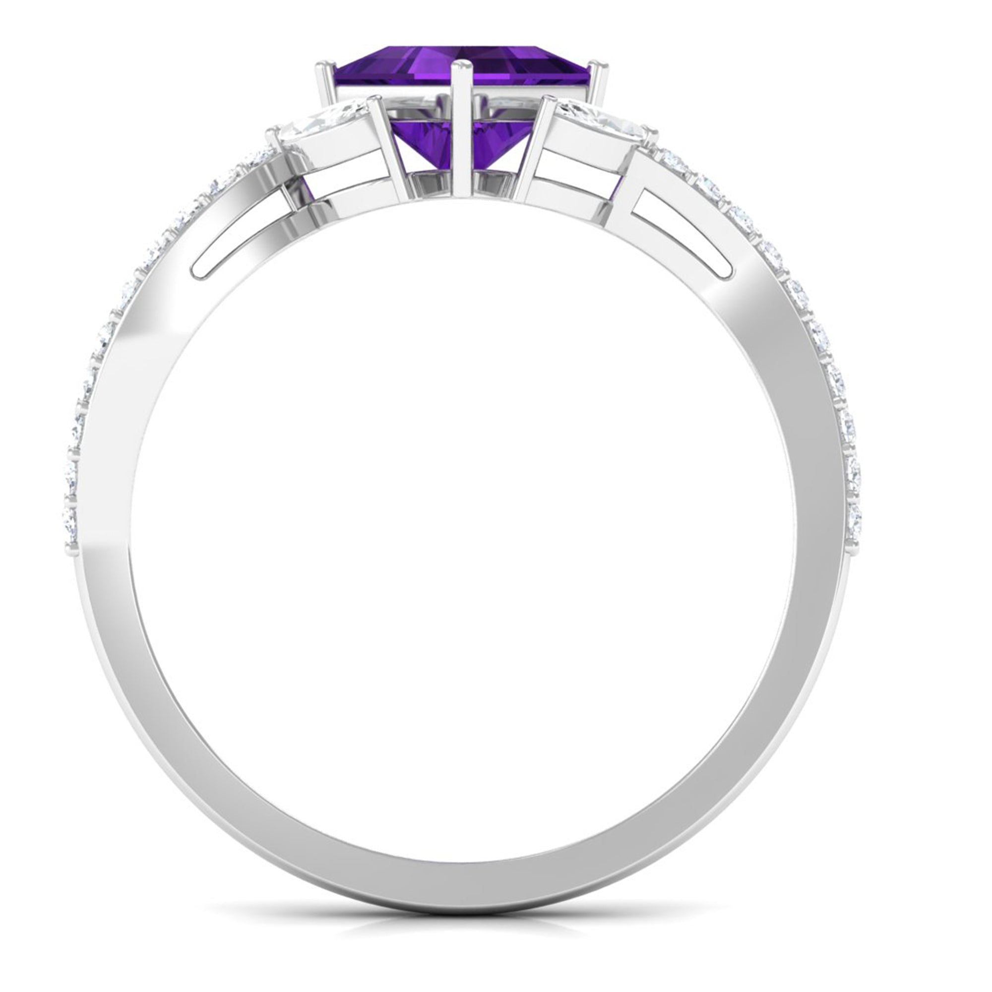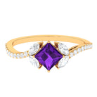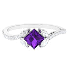 Nature Inspired Princess Cut Amethyst and Diamond Engagement Ring