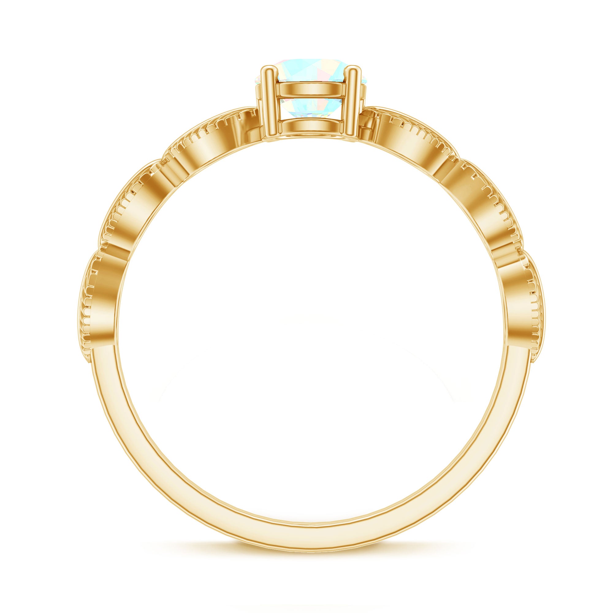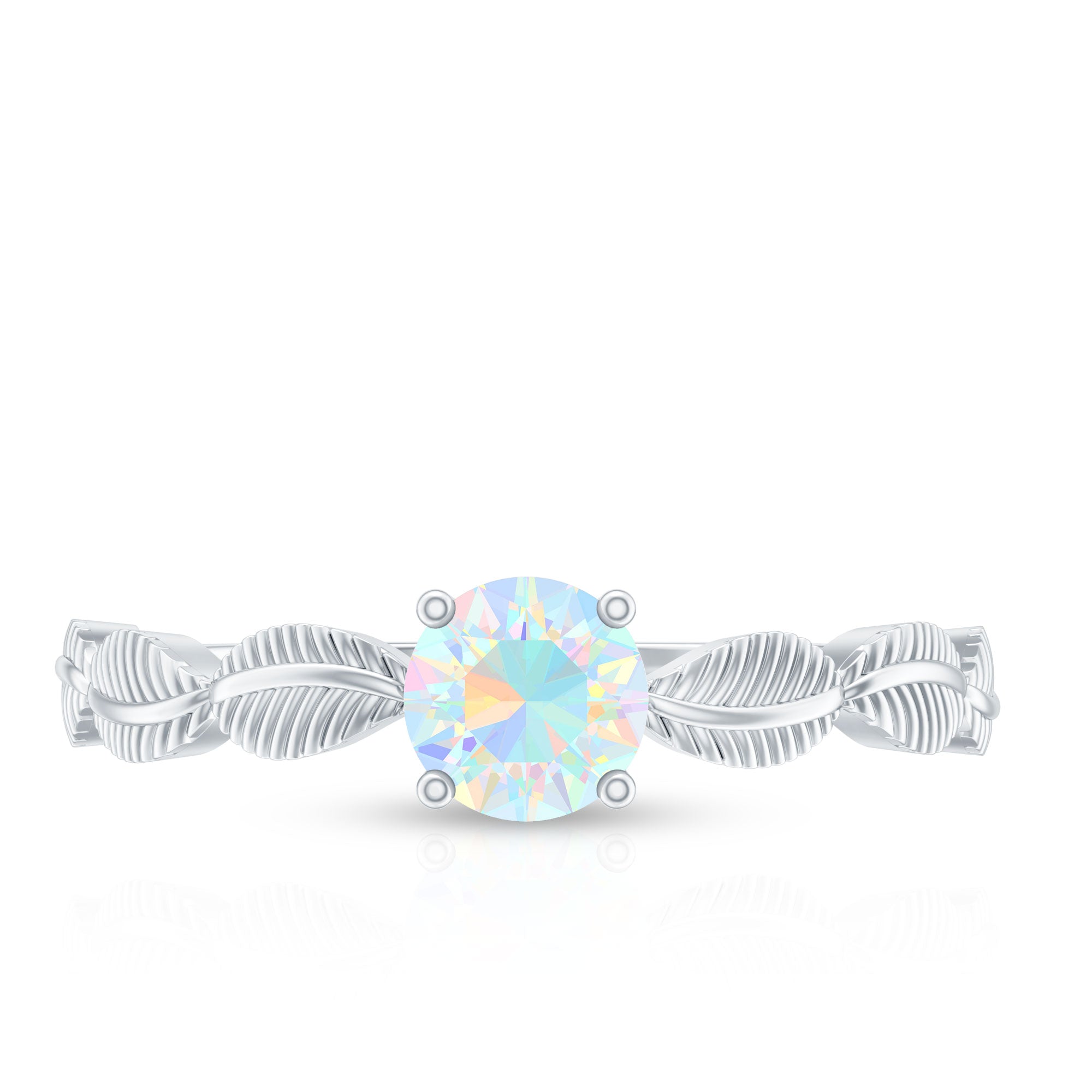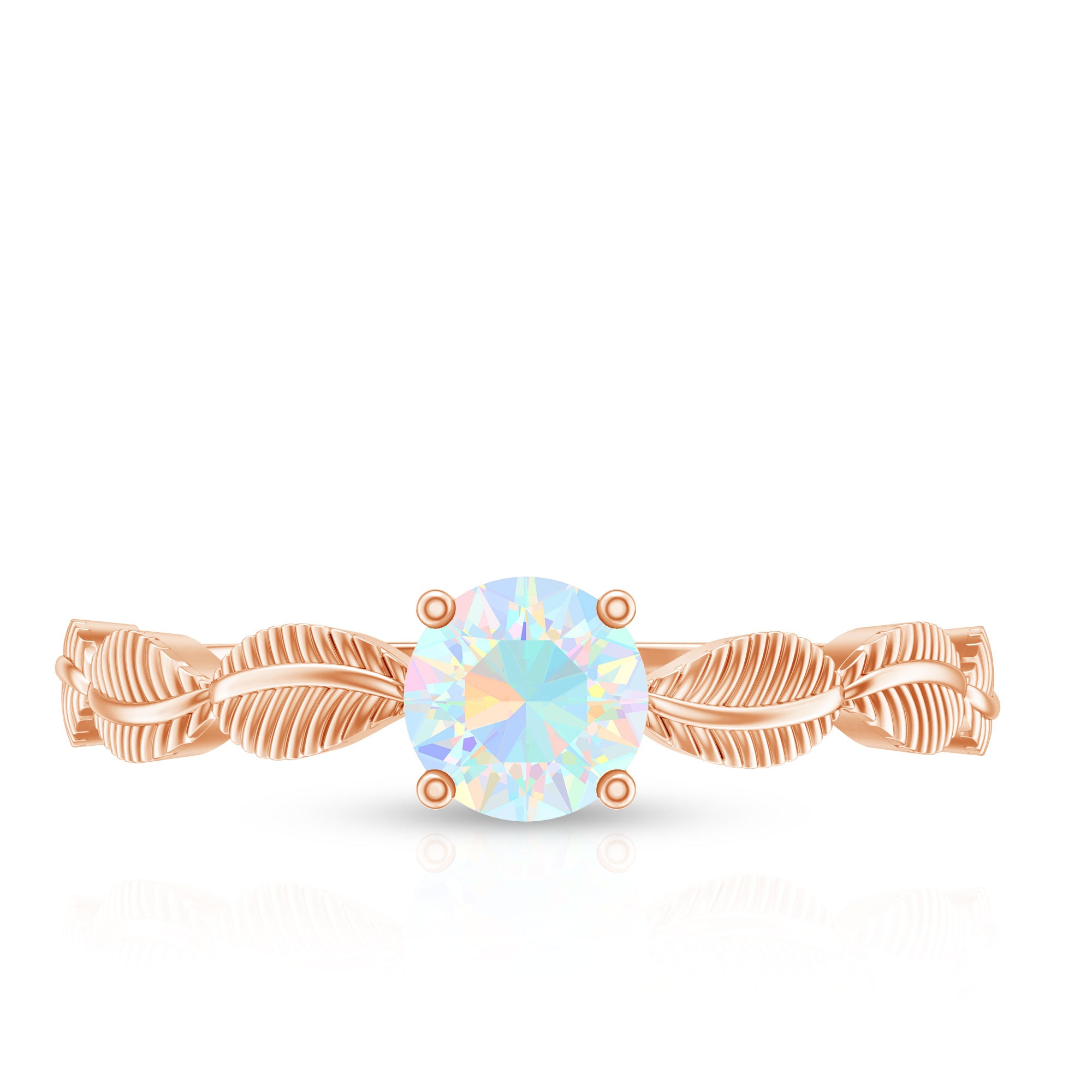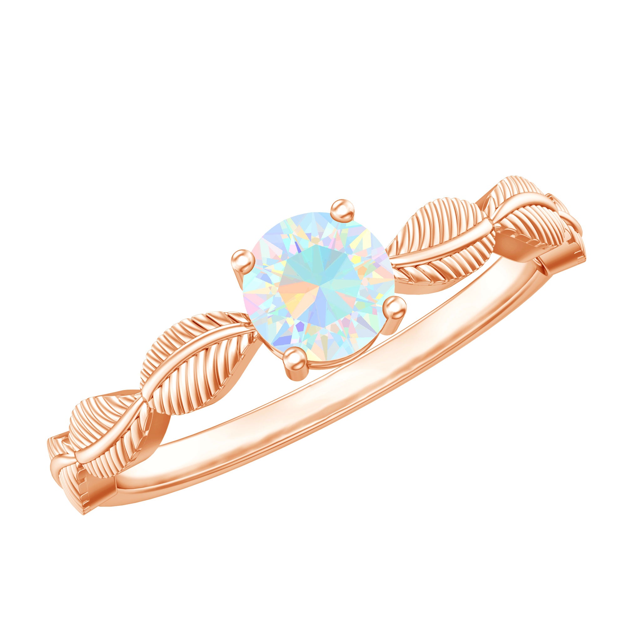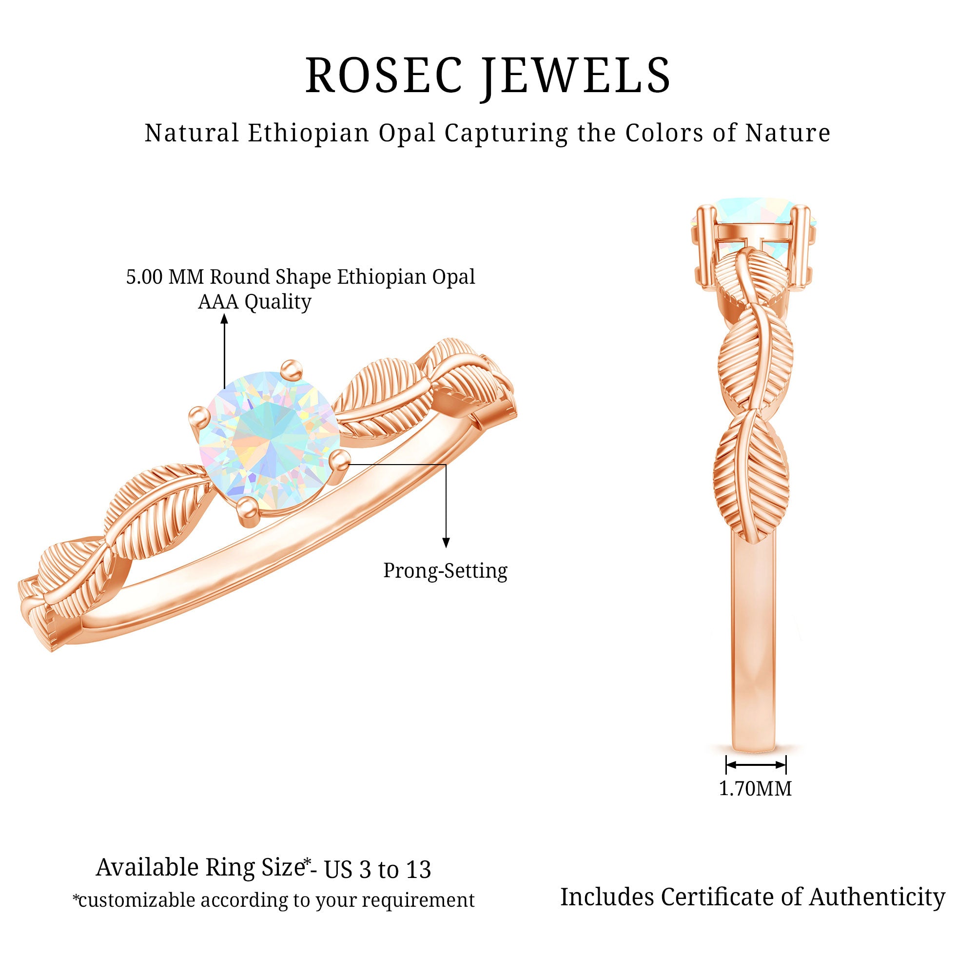 Embrace the beauty of nature and the magic of love with this Leaf Ring, a design that feels like it bloomed straight from a fairytale. At its center lies a 5 mm Round Shape Ethiopian Opal set in Prong Setting, glowing with a mesmerizing play of rainbow colors that shift with every turn, capturing the ever-changing essence of love. The band is delicately crafted with graceful Leaf motifs, wrapping around the finger. Each detail speaks to nature inspired elegance and wonder, making this Ethiopian Opal Ring perfect for anyone who loves a touch of nature. Symbolizing growth, harmony and eternal connection, this Opalescent Ring is a wearable love story. Whether chosen as a unique engagement ring, a promise of forever or a meaningful gift, this October Birthstone Ring is sure to stand out with its earthy charm and ethereal glow. Available in a range of sizes and delivered in a beautiful jewelry box, this Rainbow Opal Ring is ready to gift and guaranteed to enchant. This Opal Promise Ring is for the one who sees beauty in every little detail and magic in every moment.