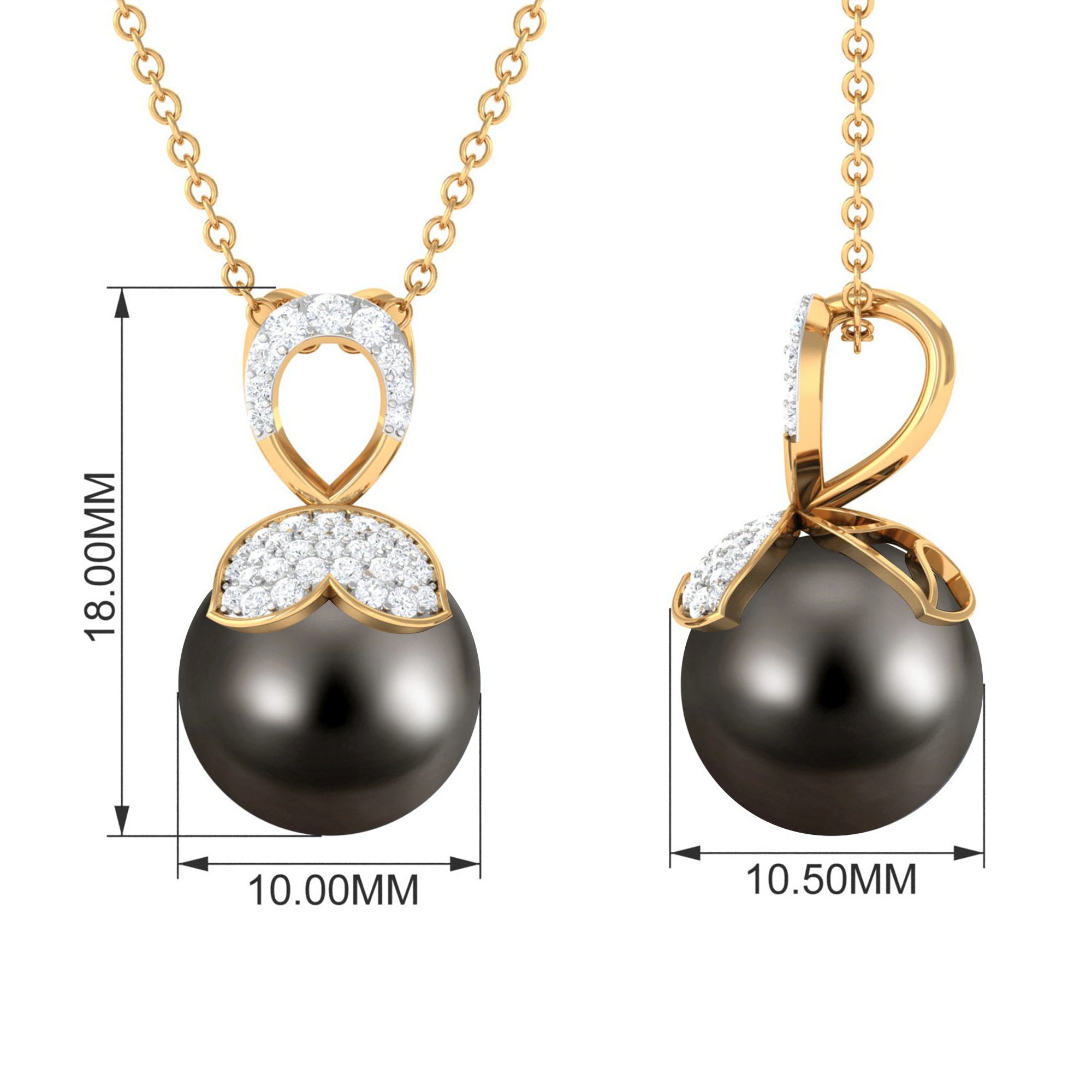 Wear something new or fashionable just like this alluring Drop Pendant Necklace. Decorated with Round Shape Black Shape Tahitian Pearl and Round Diamond studded on the unique design. This Black Pearl Pendant Necklace will complement her casual or special looks. Surprise your favorite person by presenting this Pearl Pendant at her Birthday Party.