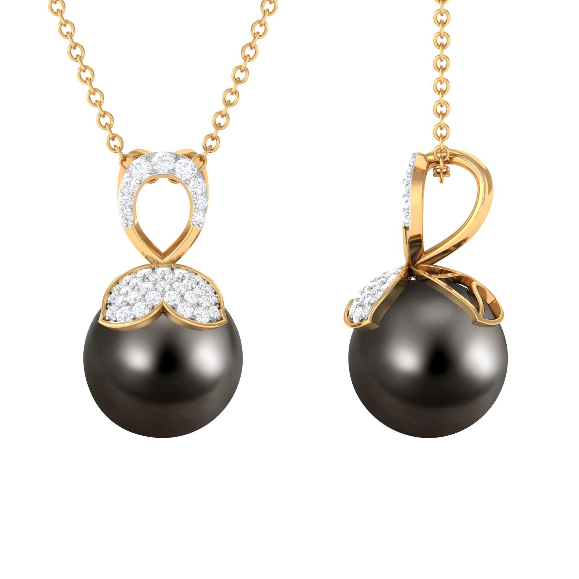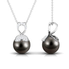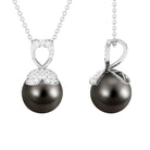 Wear something new or fashionable just like this alluring Drop Pendant Necklace. Decorated with Round Shape Black Shape Tahitian Pearl and Round Diamond studded on the unique design. This Black Pearl Pendant Necklace will complement her casual or special looks. Surprise your favorite person by presenting this Pearl Pendant at her Birthday Party.