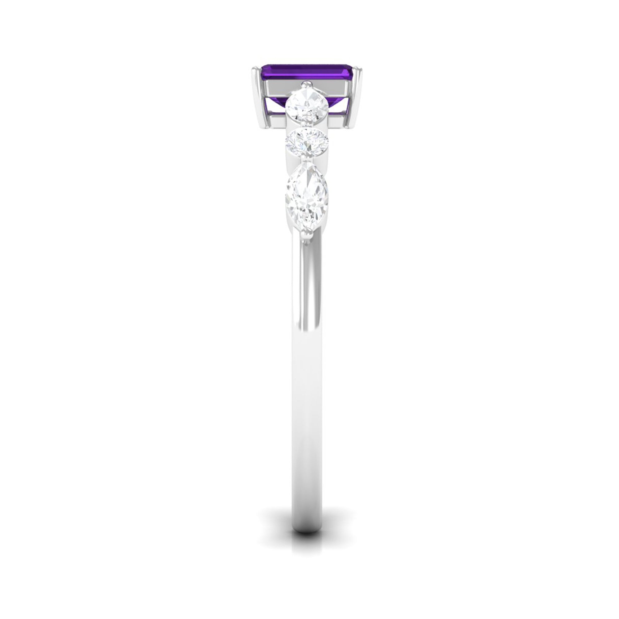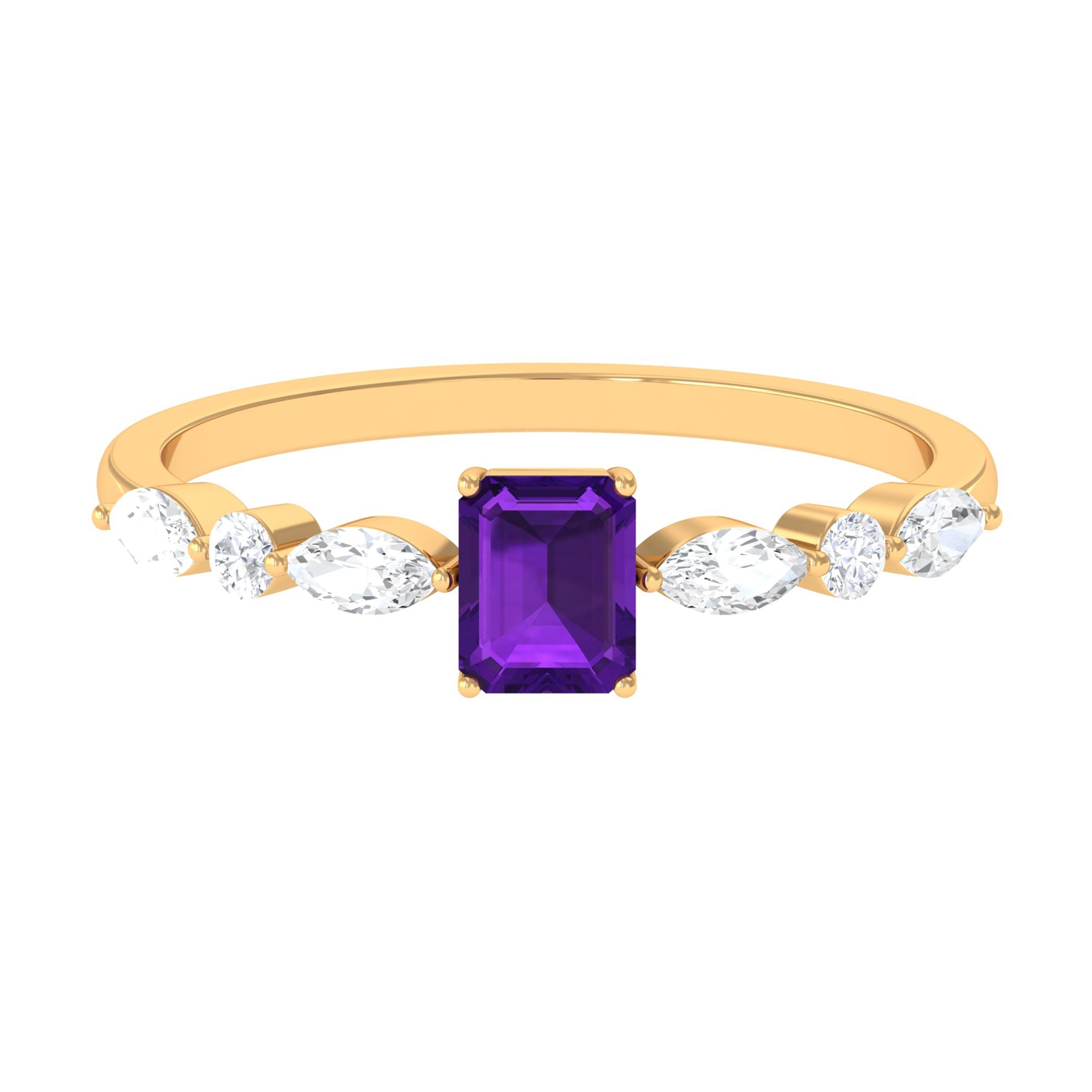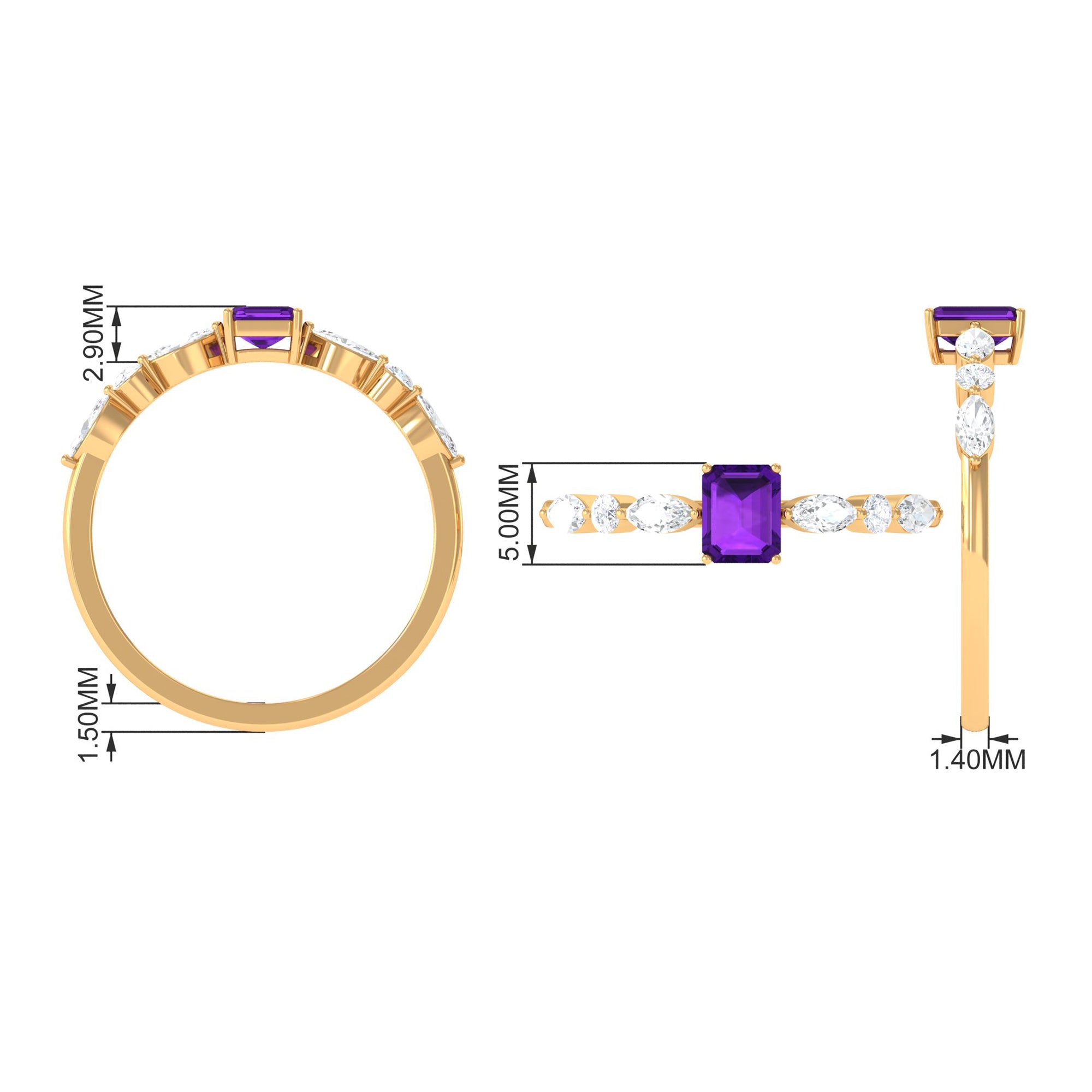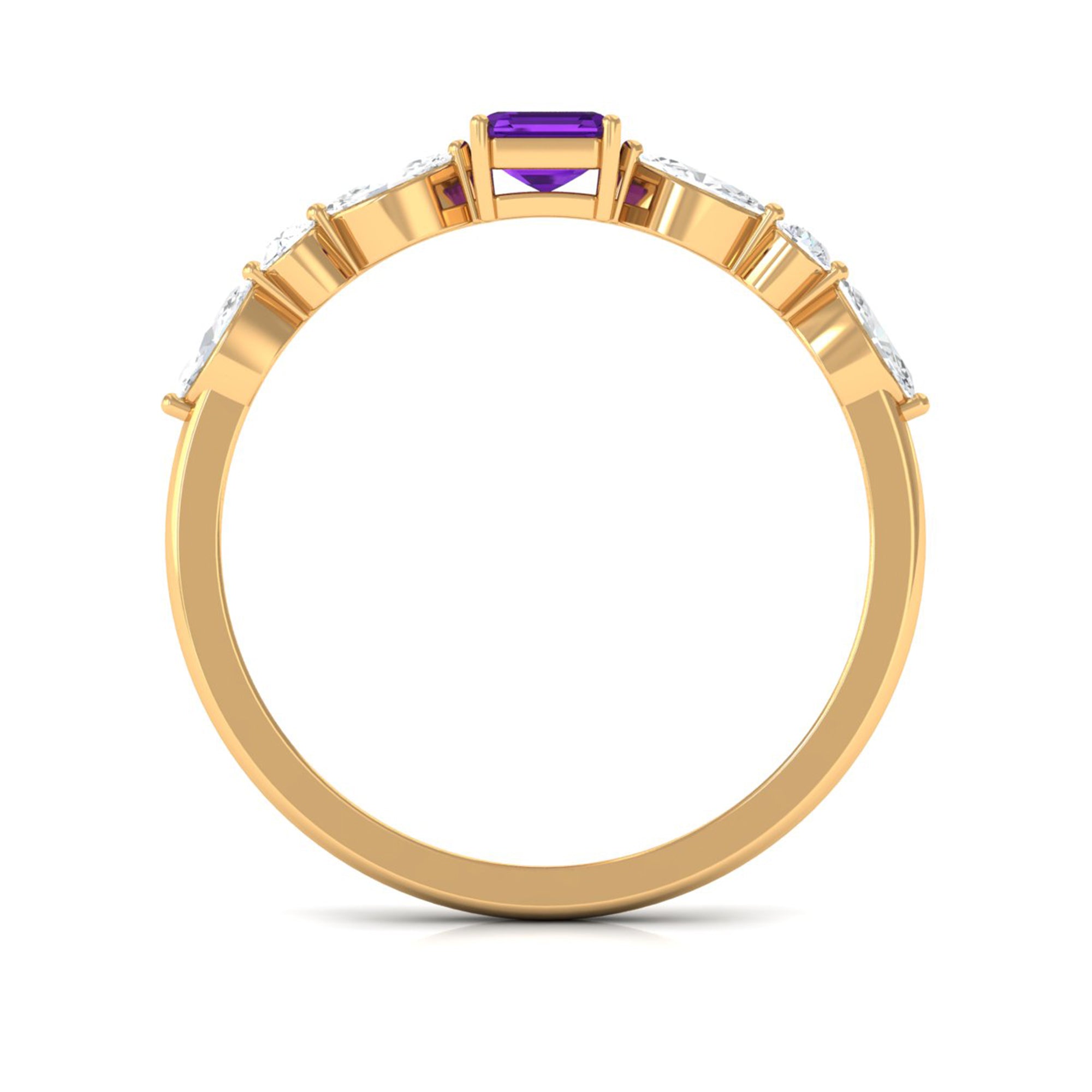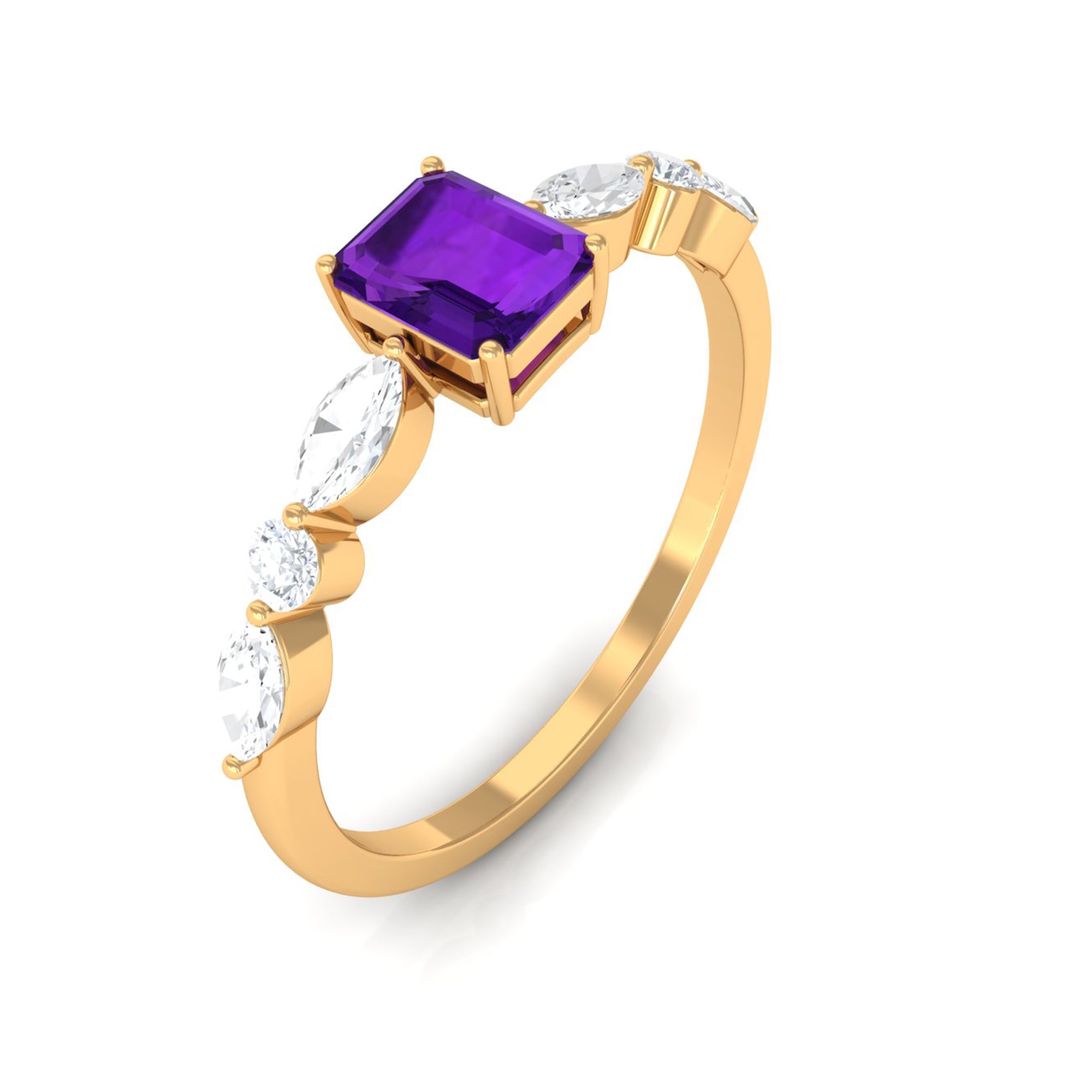 Confess your love with this Solitaire Engagement Ring for Her. It is embellished with Octagon Cut Amethyst as a solitaire in a prong setting with a Round and Marquise Diamond as a side stone. This February Birthstone Ring is composed of Gold Metal. This Amethyst Engagement Ring will be a unique present for women that they will wear on any occasion.