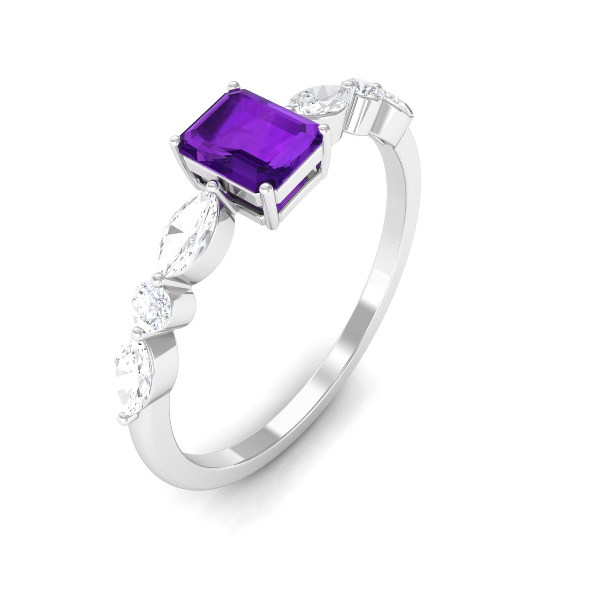 Octagon Amethyst Solitaire Ring with Diamond Side Stones