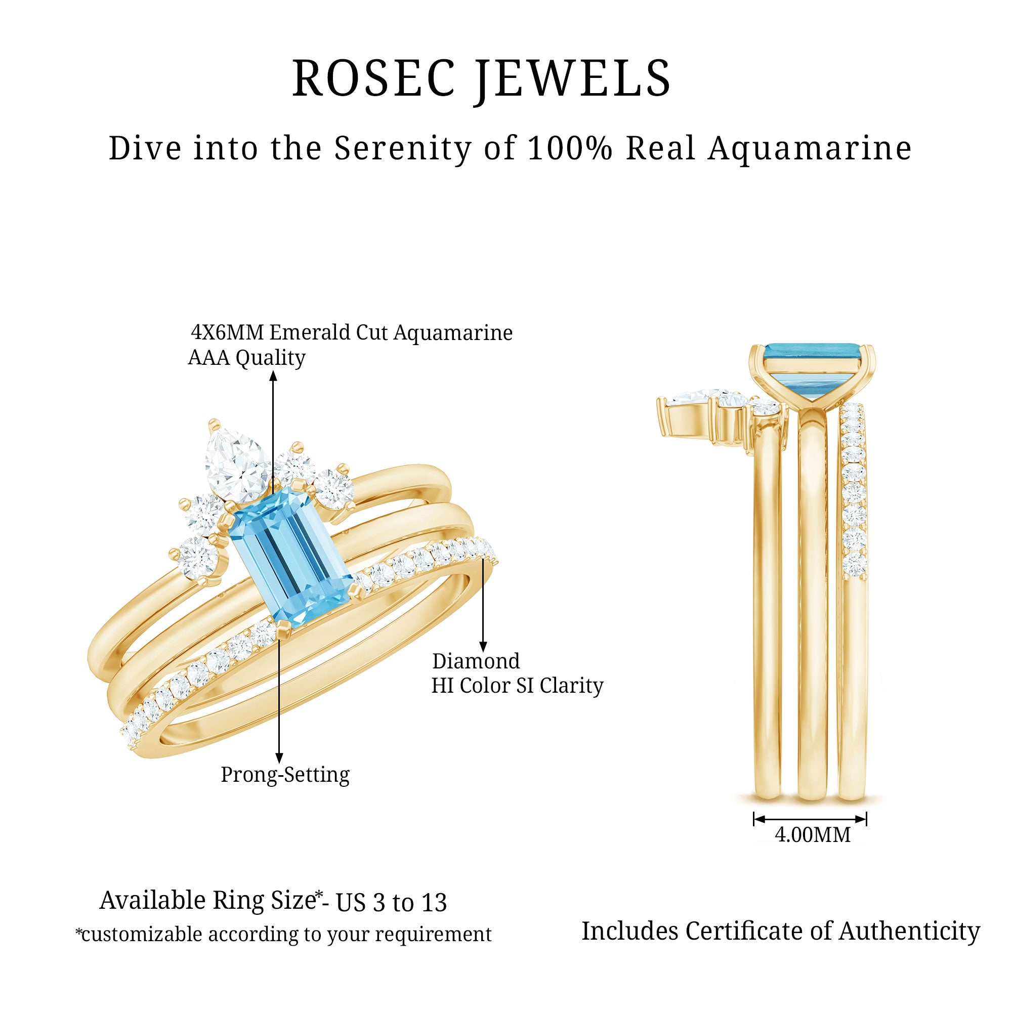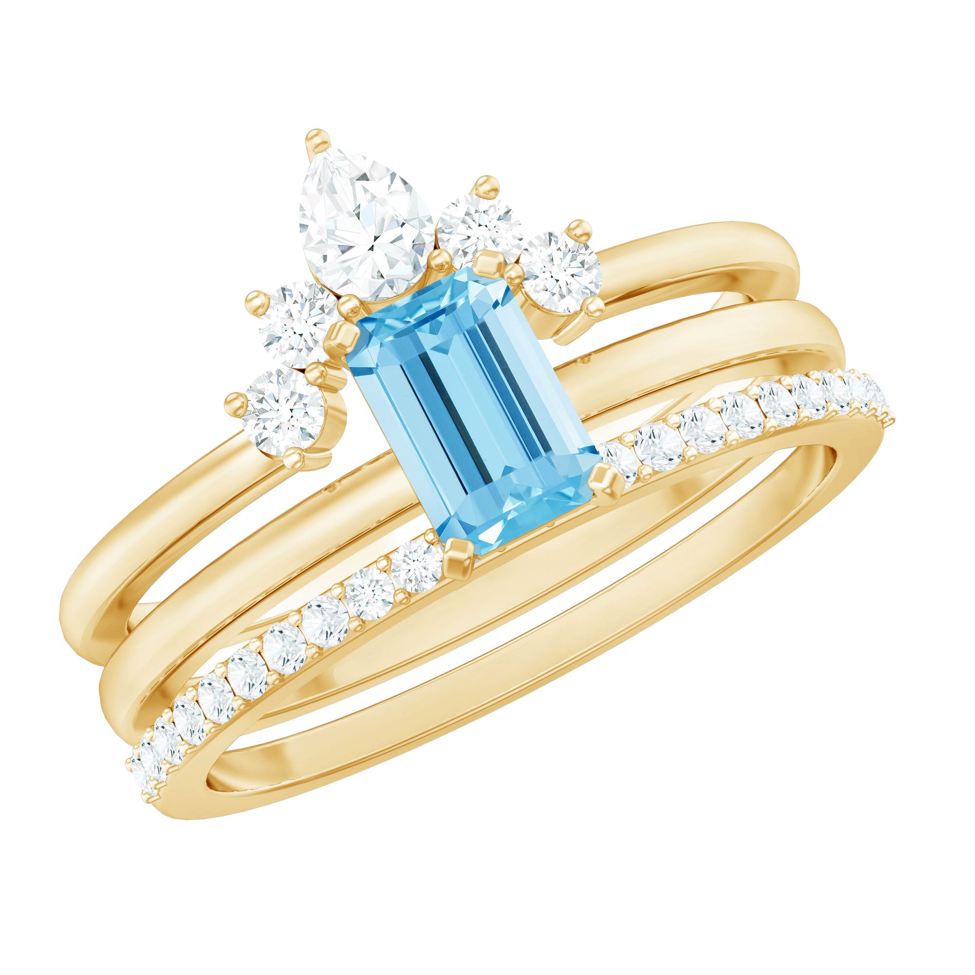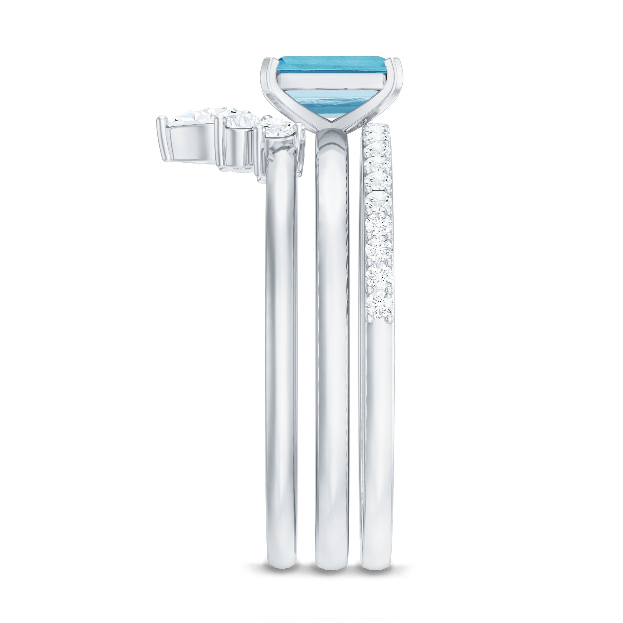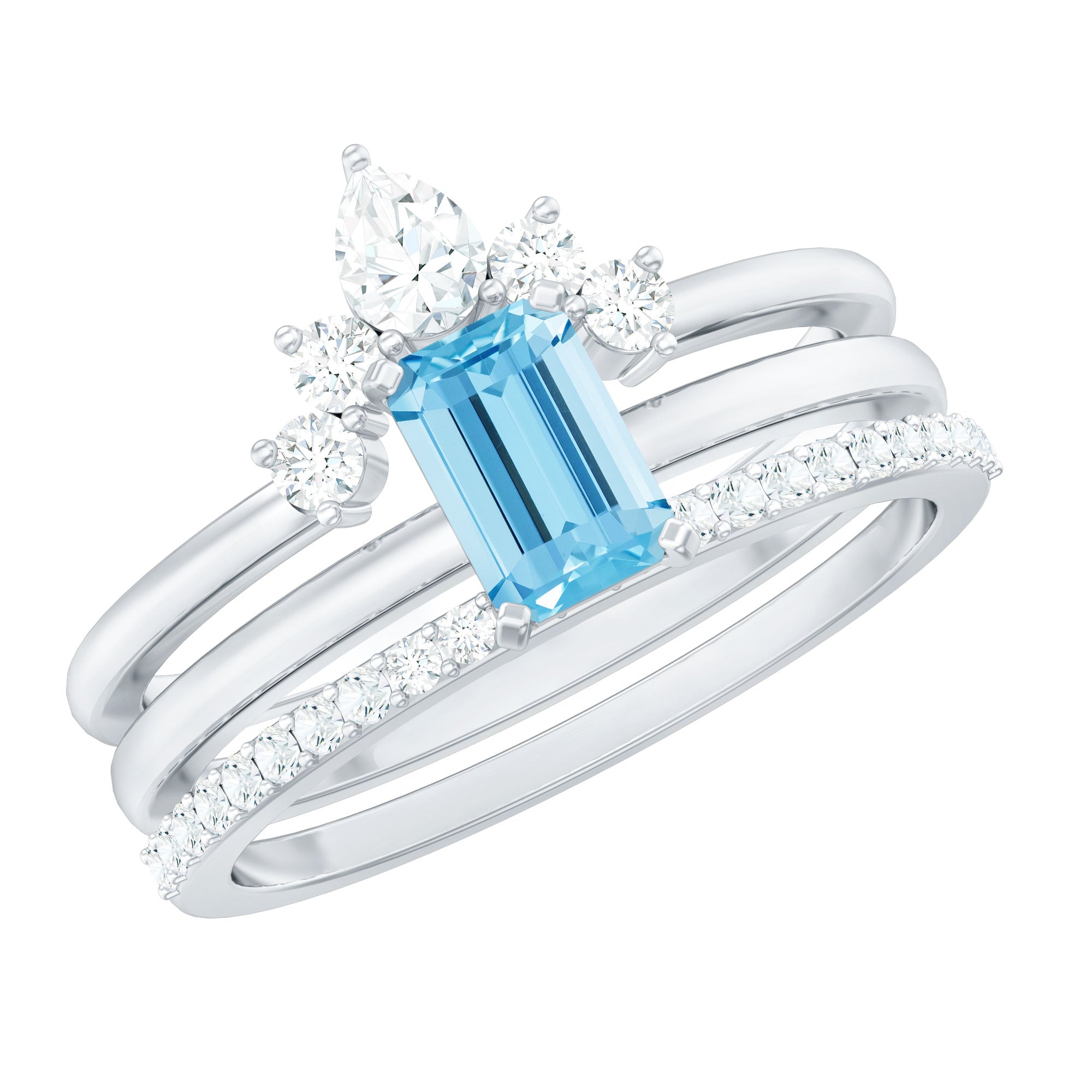 Octagon Aquamarine Solitaire Ring Set of 3 with Diamond
