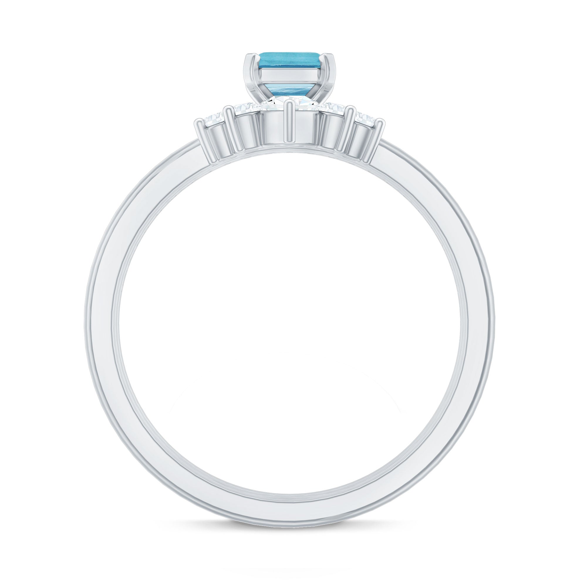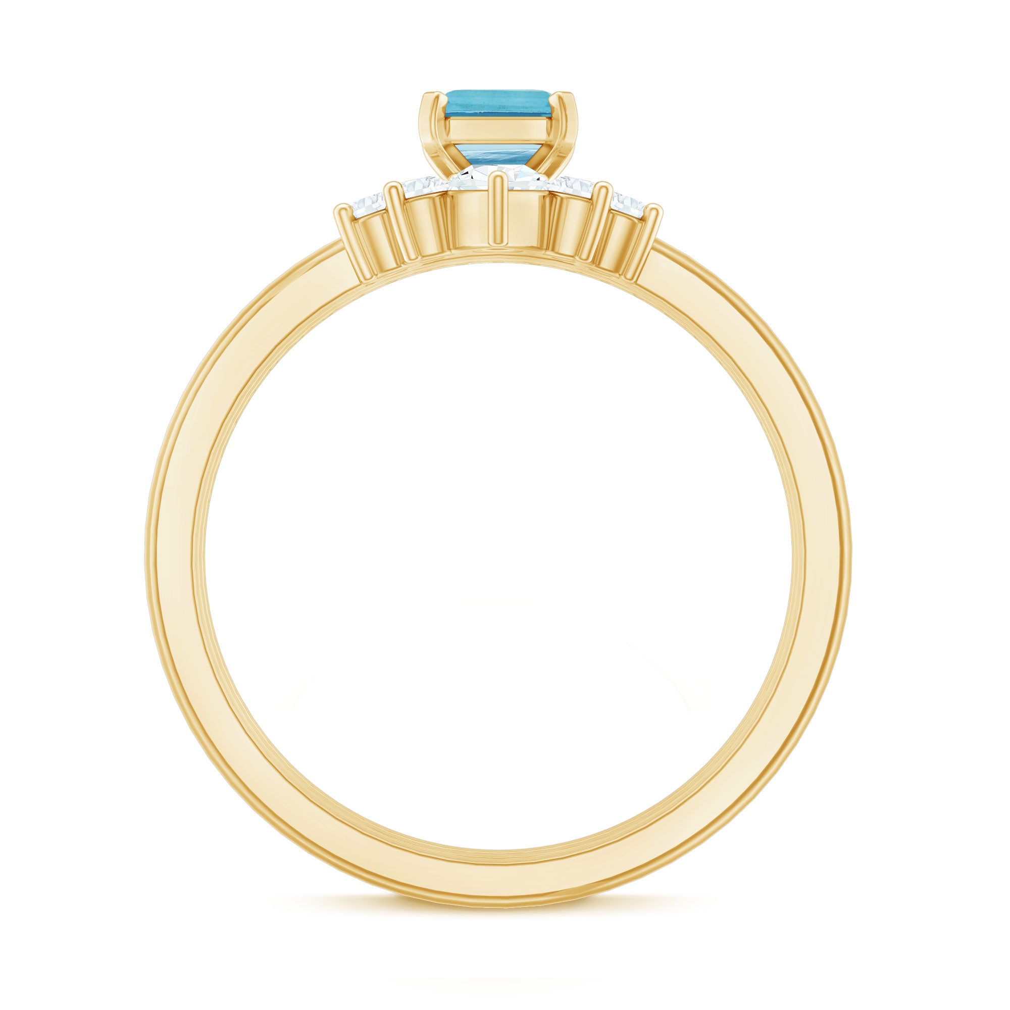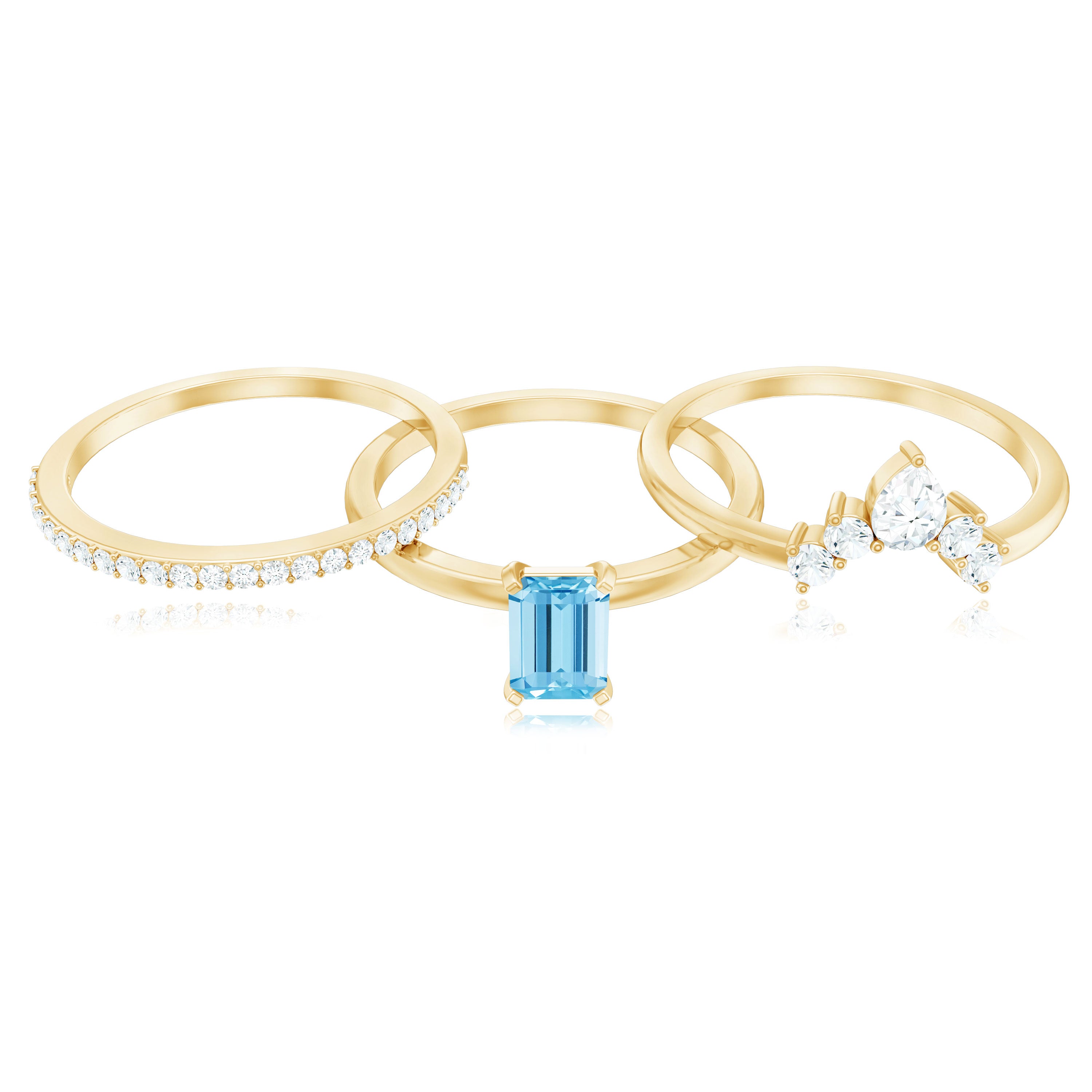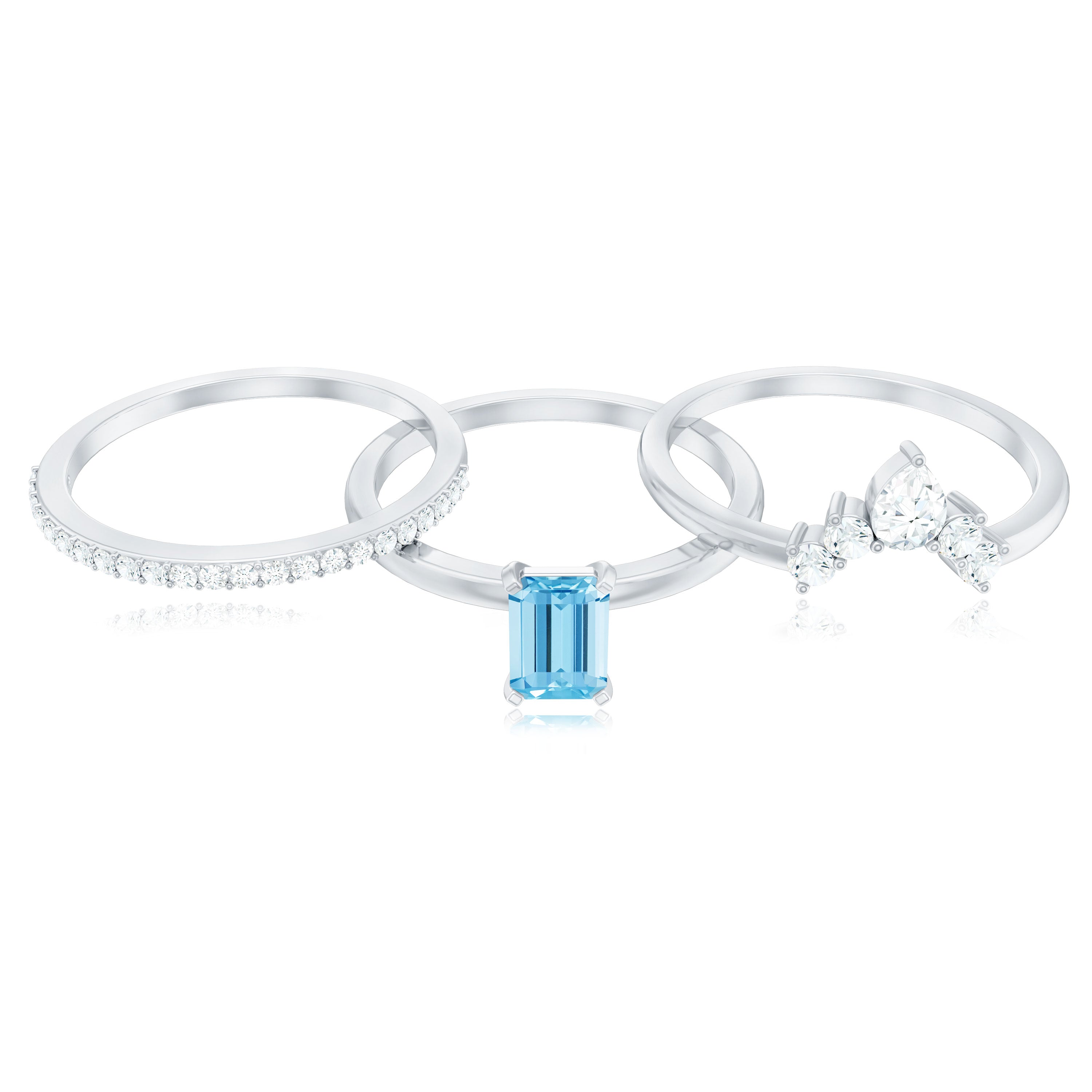 Octagon Aquamarine Solitaire Ring Set of 3 with Diamond