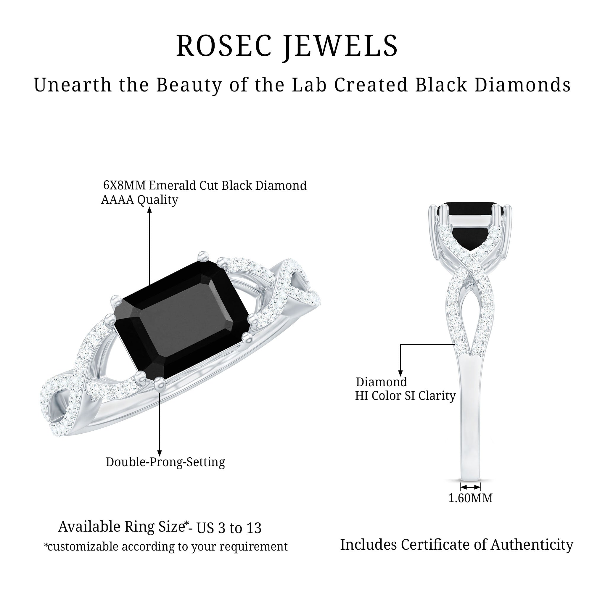 Introducing a stunning Designer Created Black Diamond Engagement Ring to enhance your beauty with its captivating black hue. Featuring an exquisite Octagon Cut Created Black Diamond gemstone set as a solitaire in an East-West style and embellished with Diamond on a Gold Crossover Shank, this Solitaire Ring is the perfect choice for your lovely lady.