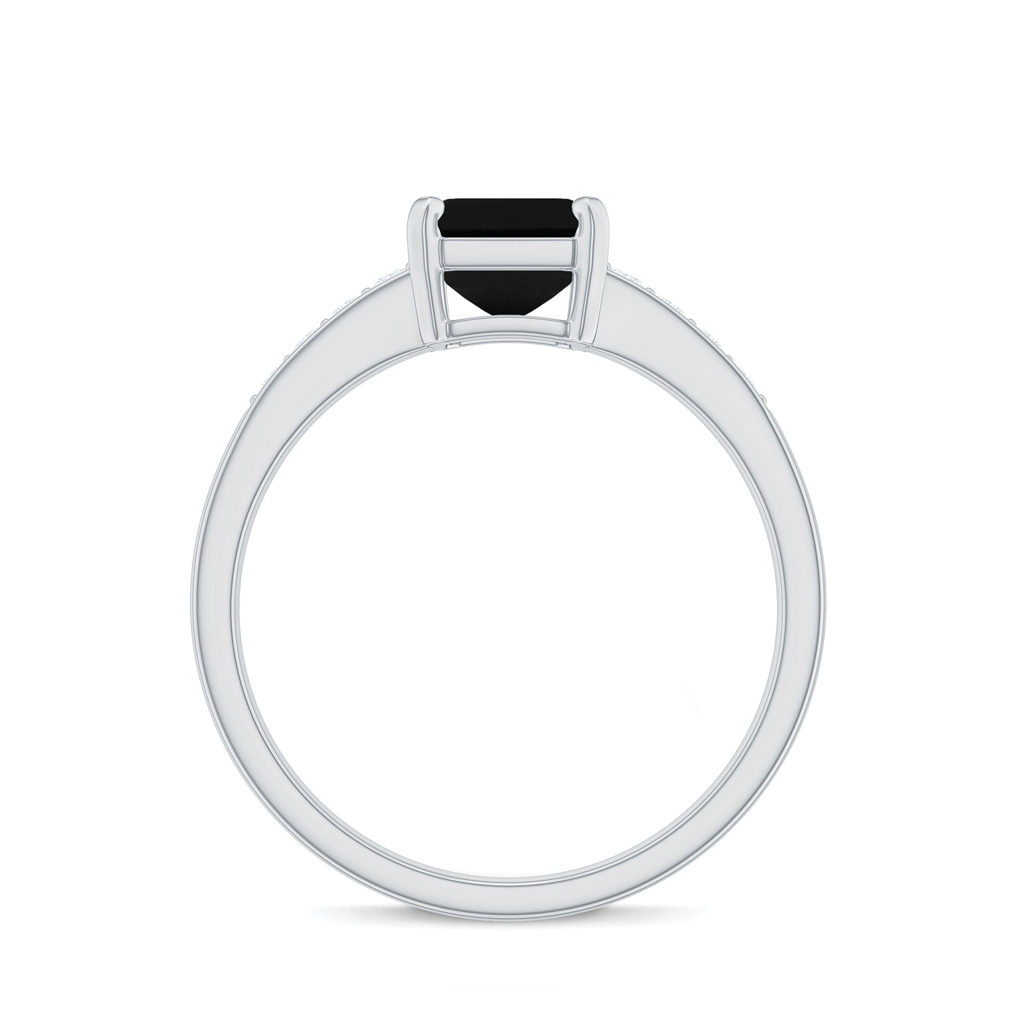 Embrace eternity with a ring that eloquently expresses its brilliance and sophisticated design. This Black Onyx Engagement Ring embodies the ideal harmony of passionate love and timeless grace, making it an unforgettable selection for your most treasured occasion. At the heart of this enchanting piece lies a 6X8 MM Emerald cut Black Onyx, meticulously secured in a prong setting. Enhancing the design further, the sleek band features horizontally set round shape diamond side stones. These thoughtfully arranged accents introduce a modern flair and delicate shimmer, perfectly enhancing the center stone while imparting a distinctive, contemporary essence to the Solitaire Engagement Ring. Whether for an engagement, a significant anniversary, or a momentous celebration of love, this 2 Carat Onyx Ring is crafted to symbolize strength, brilliance, and the journey of two souls uniting as one. Available in a broad spectrum of US sizes, this Emerald Cut Engagement Ring guarantees a perfect fit, designed to feel just right for your special day. Every angle, every sparkle, and every detail is meticulously crafted to create a piece that serves as a lasting emblem of your love story, your commitment, and the bright future that lies ahead. Allow your devotion to shine with a ring that is destined to be cherished forever.