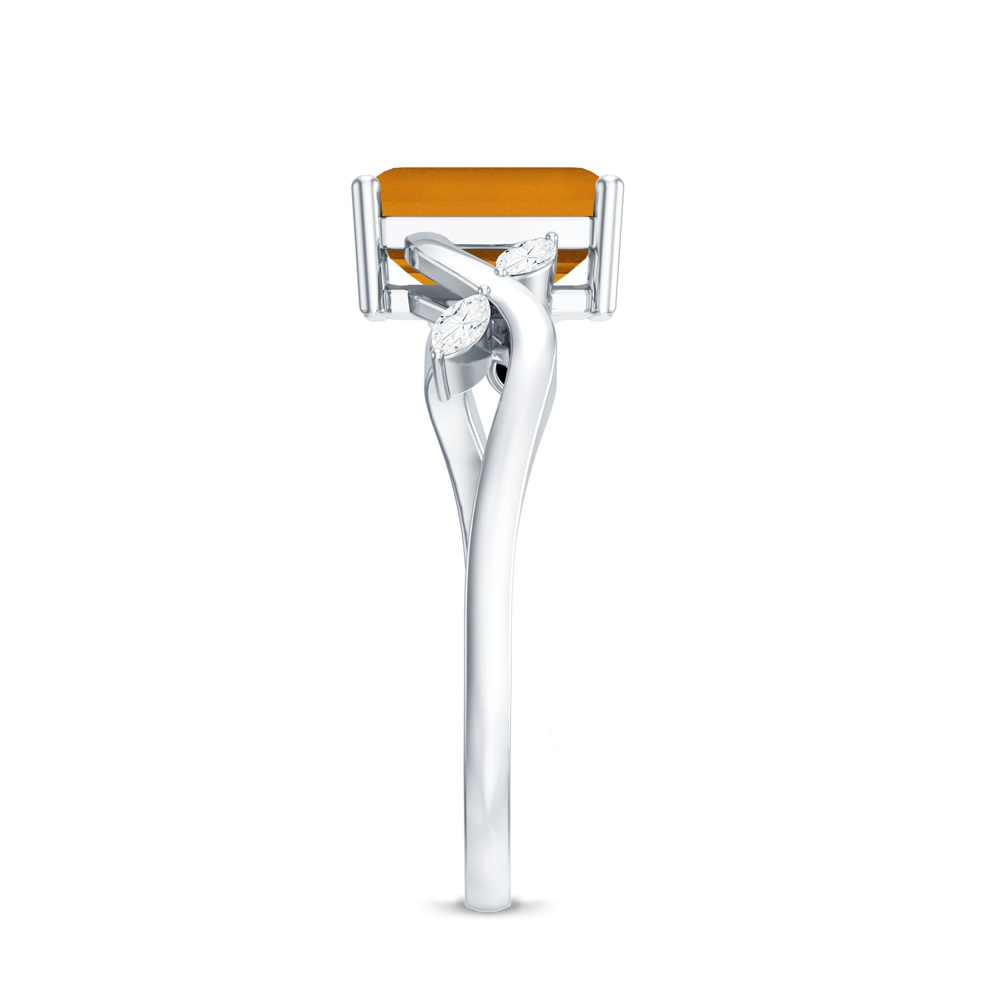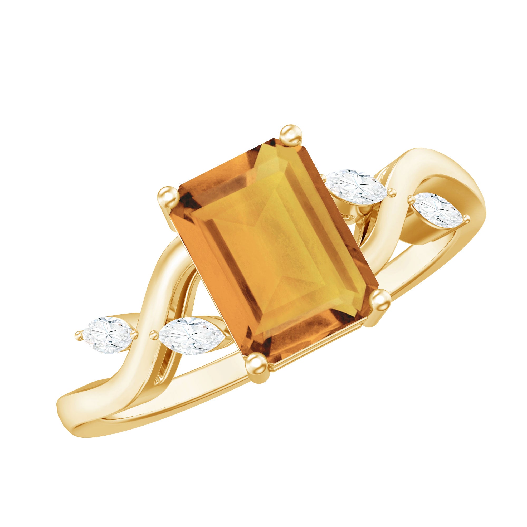 Octagon Cut Citrine and Diamond Solitaire Engagement Ring in Split Shank