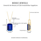This Solitaire Pendant Necklace features a stunning Octagon Cut Created Blue Sapphire Gemstone in a Prong Setting, adorned with small Brilliant Round Cut Moissanite. The exquisite combination of colors and meticulous craftsmanship creates a captivating piece of jewelry that will add a touch of elegance and sophistication to any outfit.