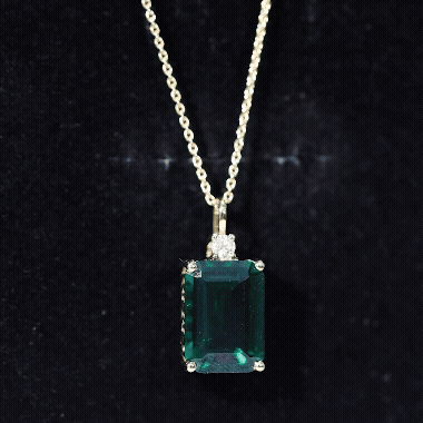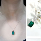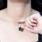Octagon Cut Created Emerald Solitaire Pendant with Moissanite