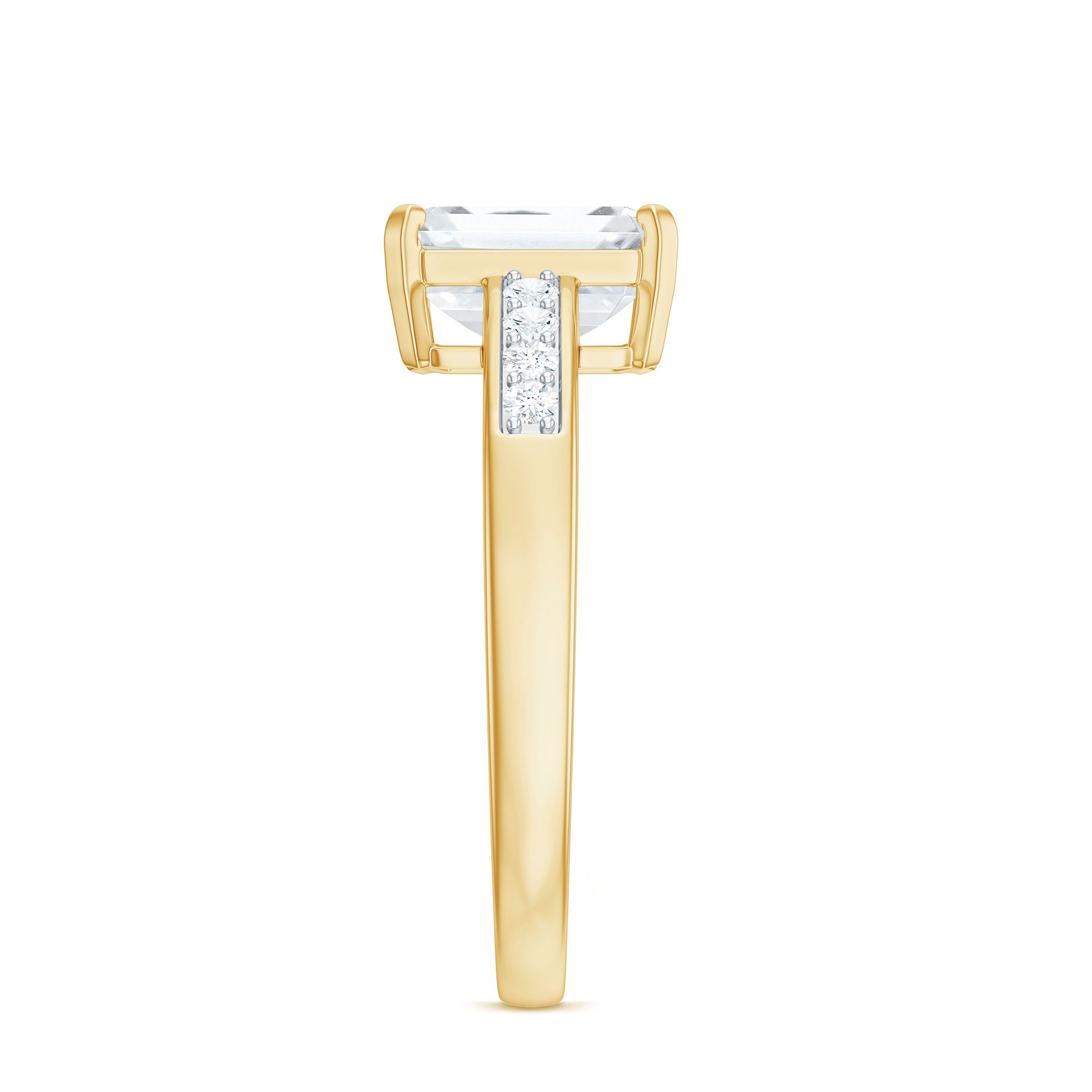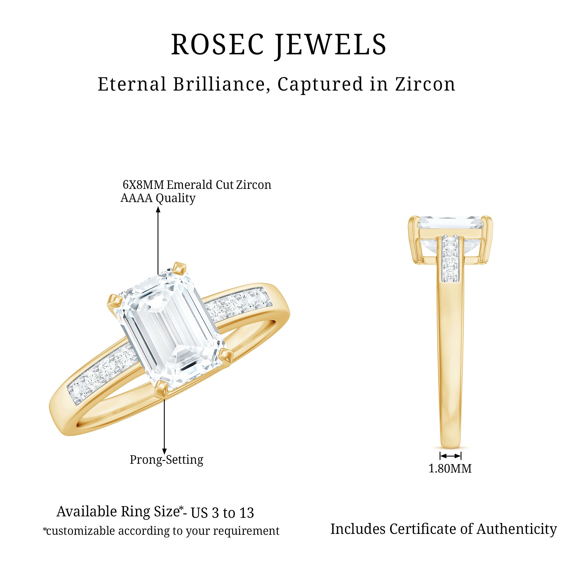 Make the love of your life the happiest person with this extraordinary Cubic Zirconia Solitaire Ring crafted from solid gold. This Zircon engagement ring features a stunning octagon-cut Zircon solitaire at its center, accompanied by delicate Zircon stones on the shank as side stones, further enhancing its beauty.