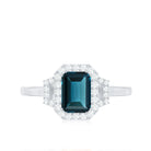 Emerald Cut Blue Topaz and Diamond Halo Engagement Ring