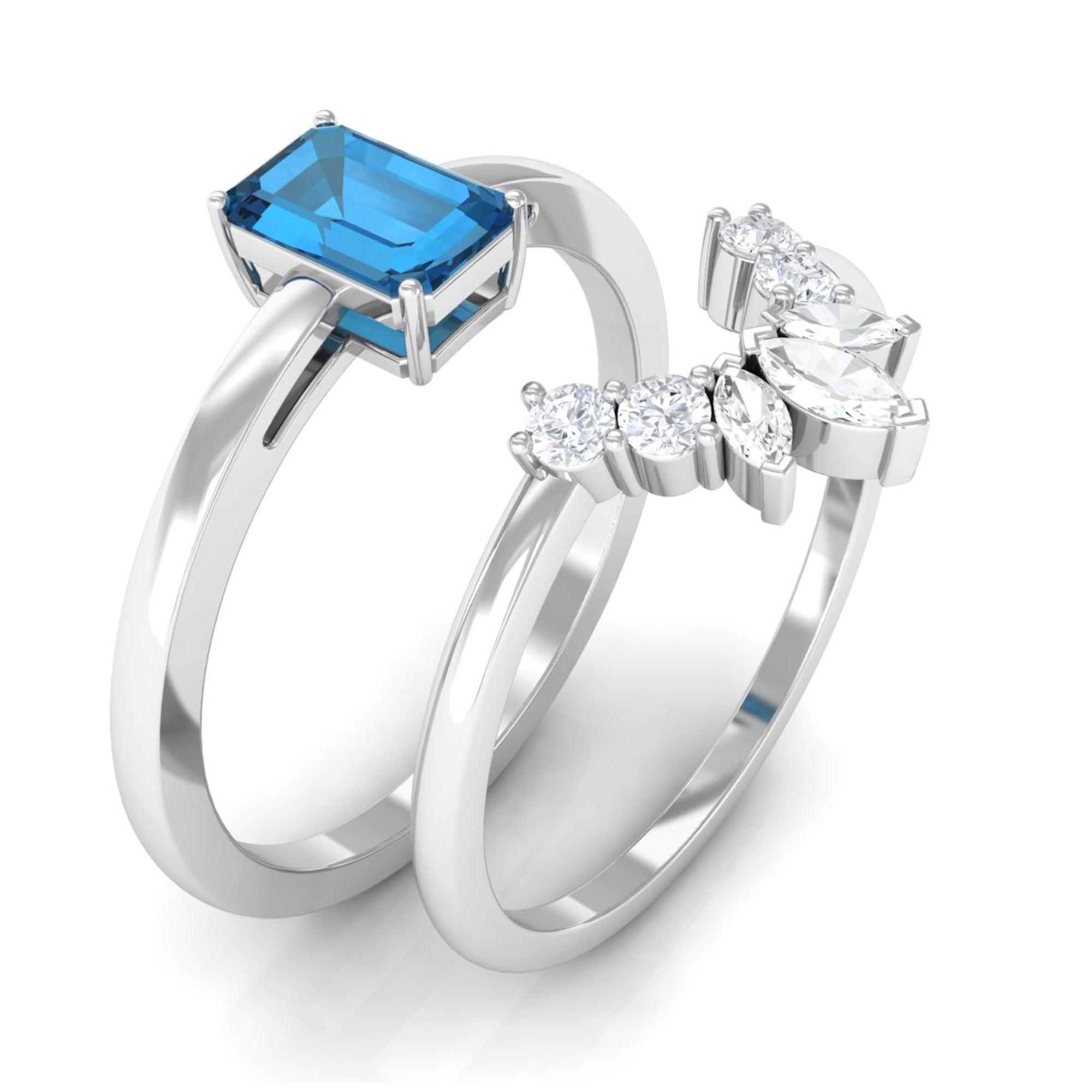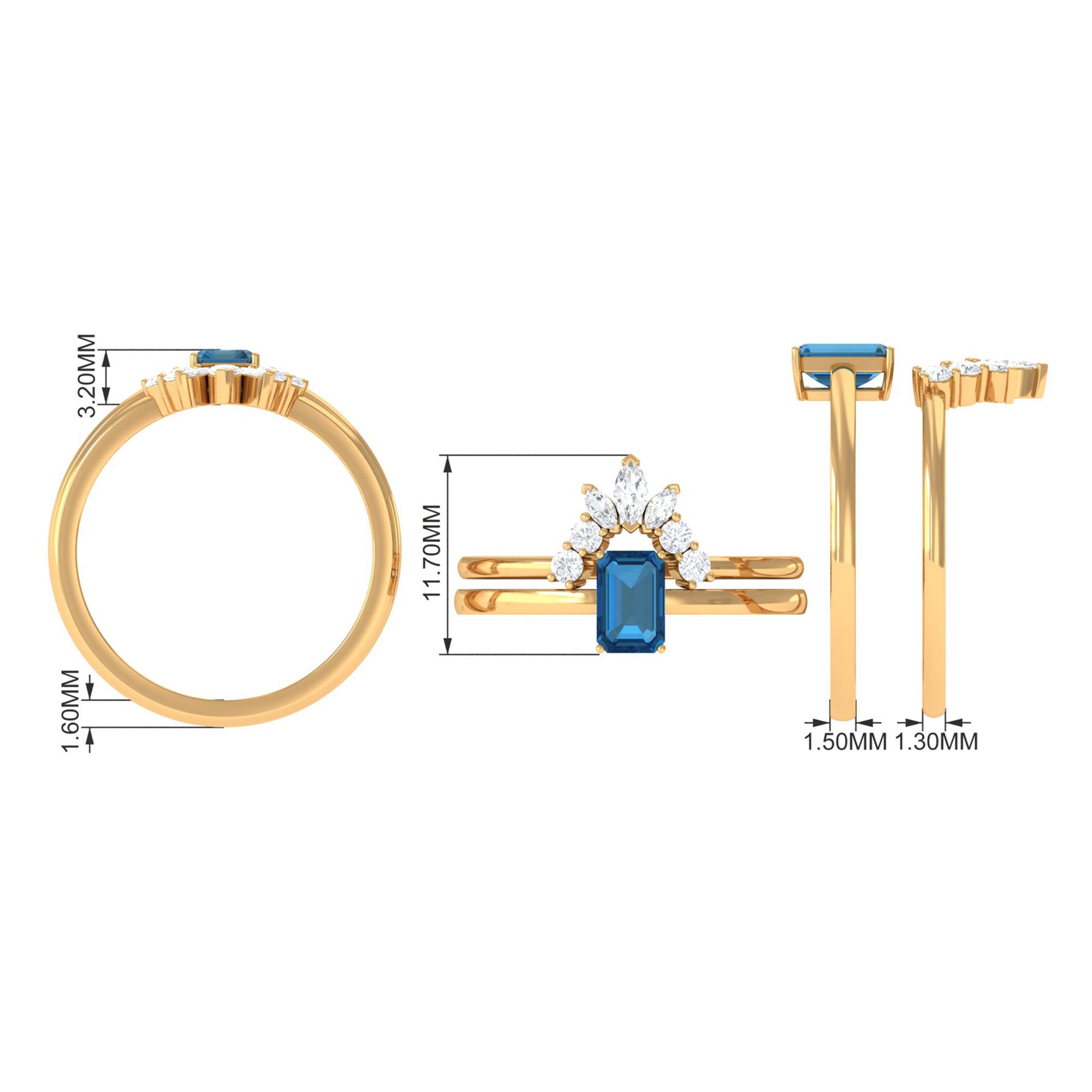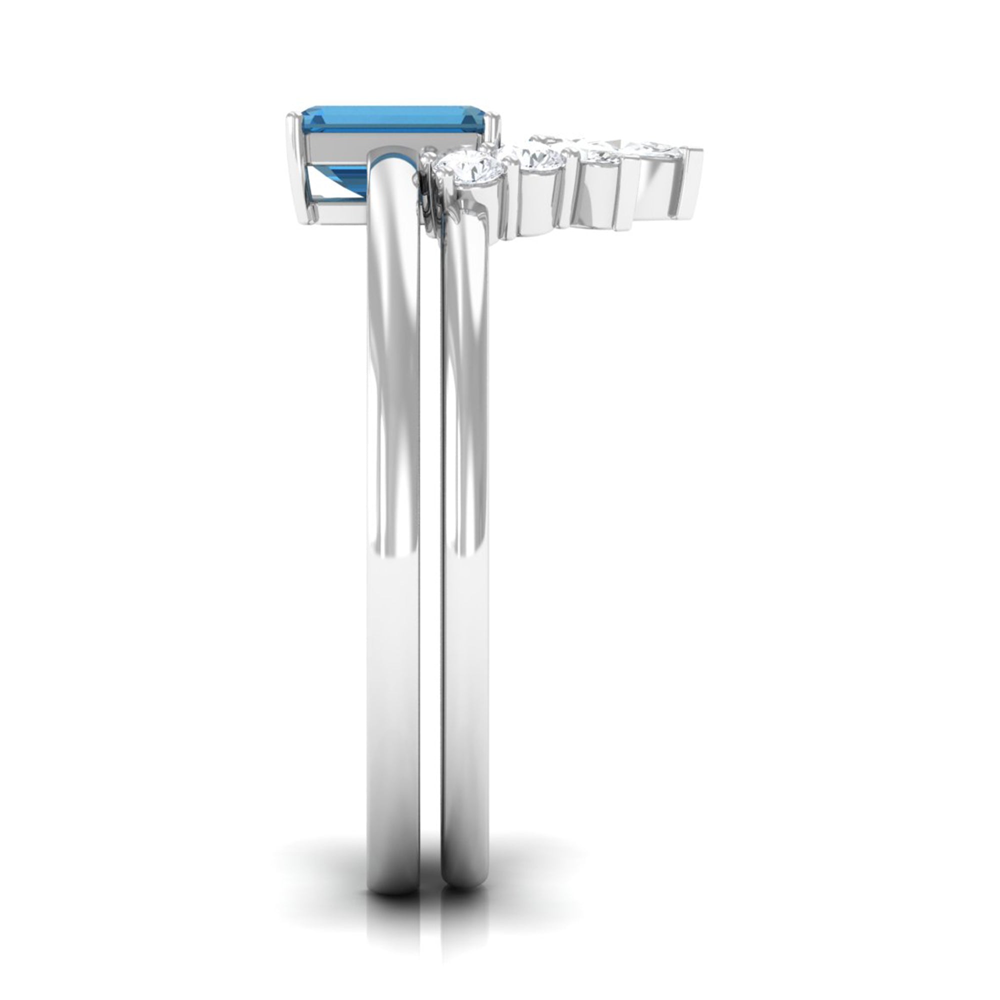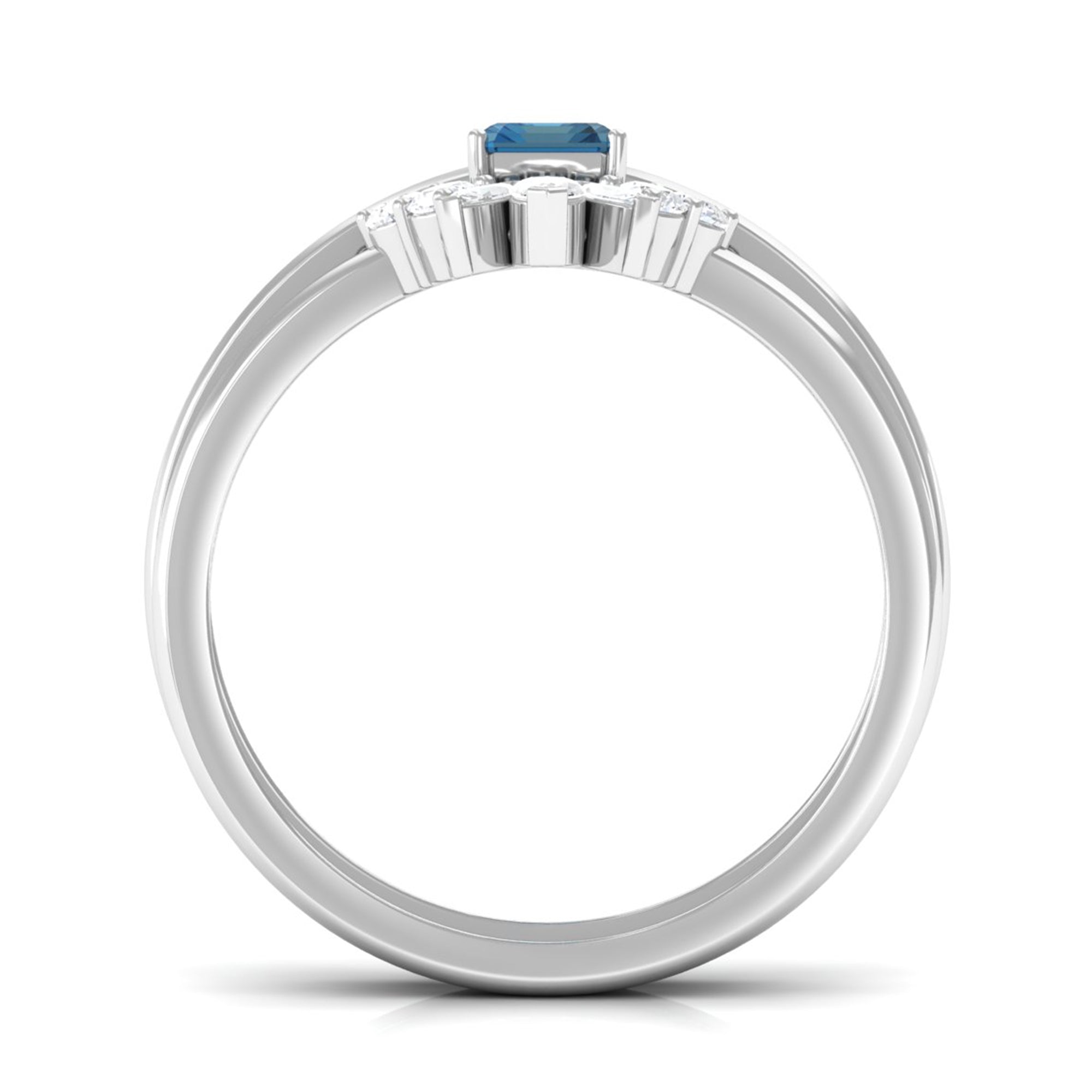 4X6mm Emerald Cut London Blue Topaz Solitaire Ring Set with Diamond