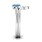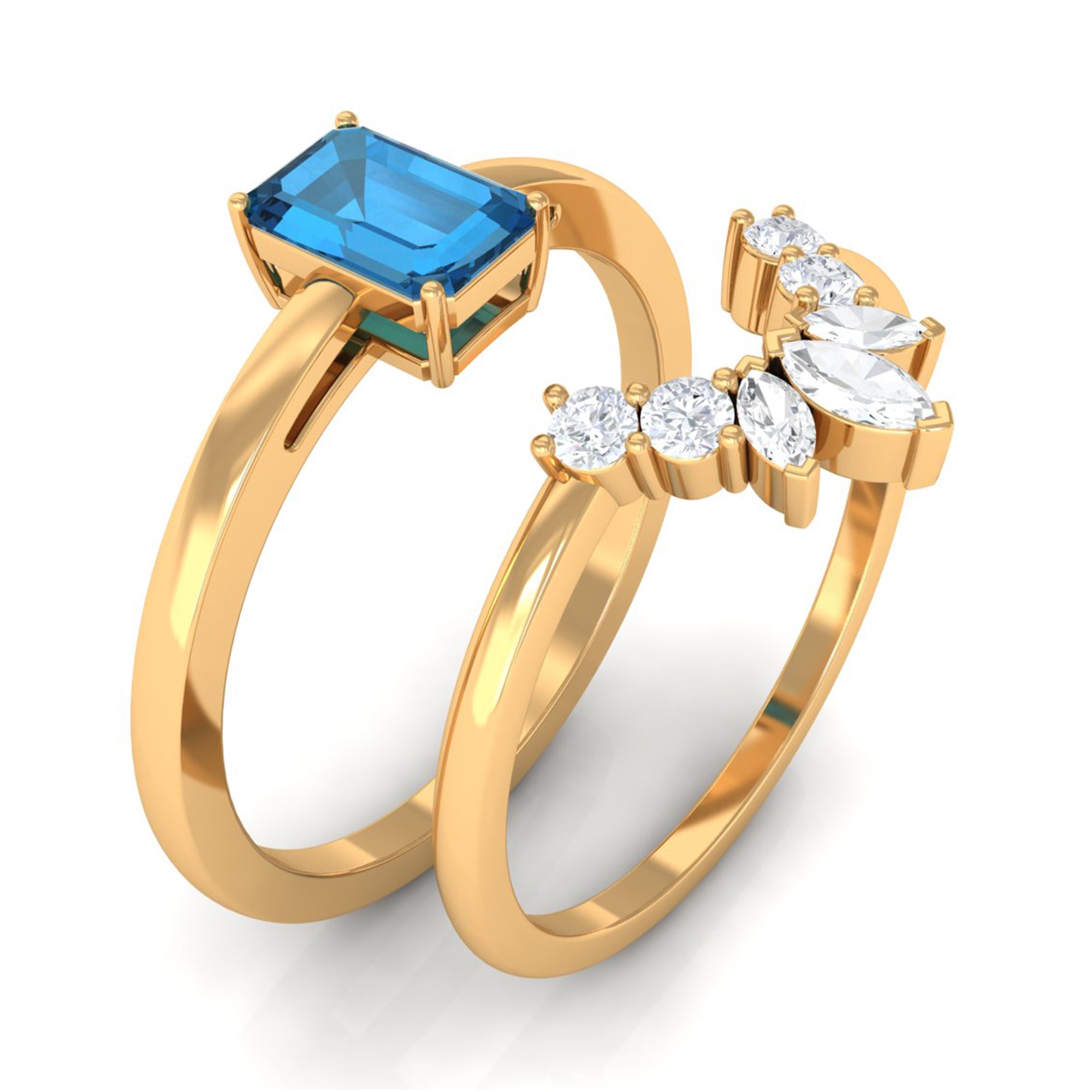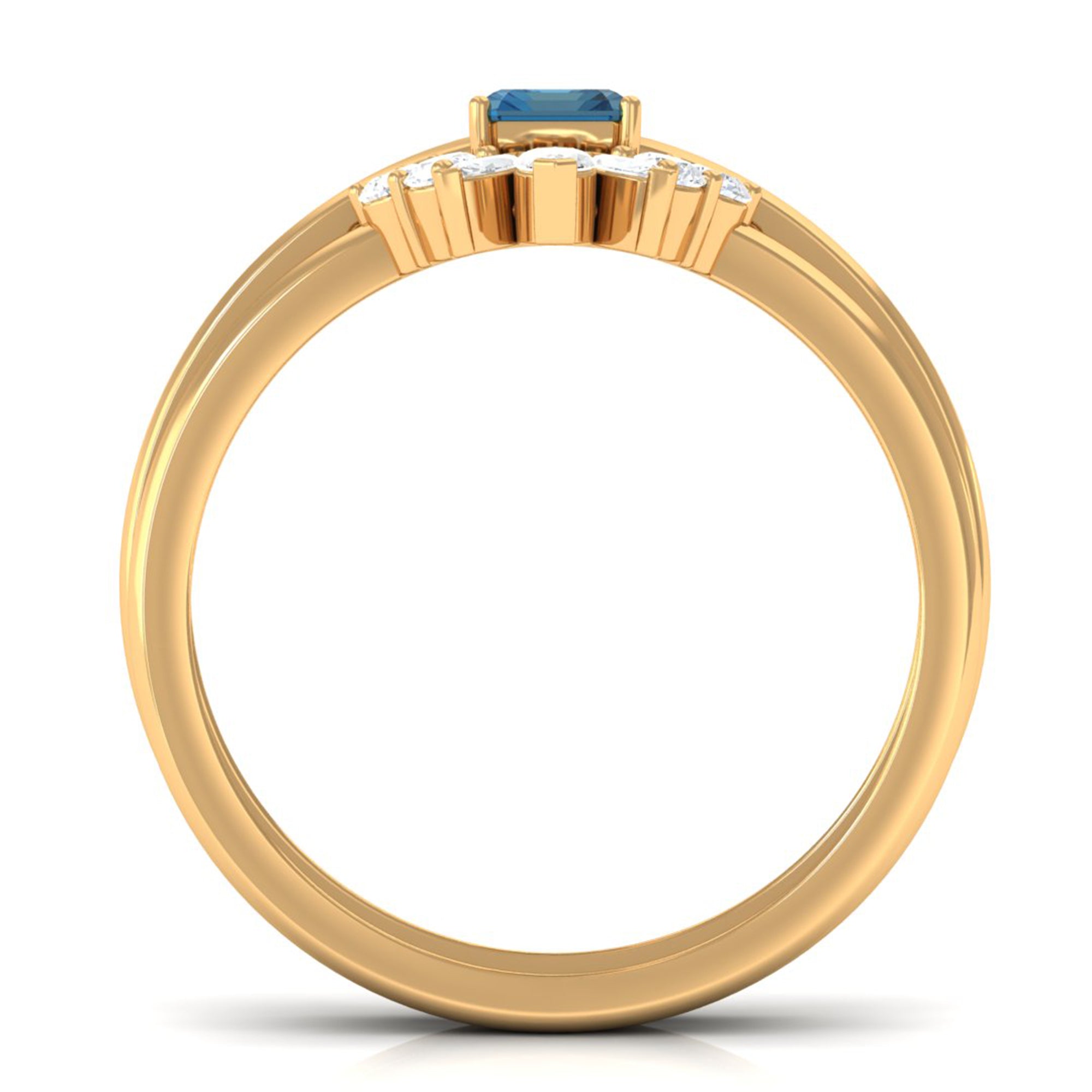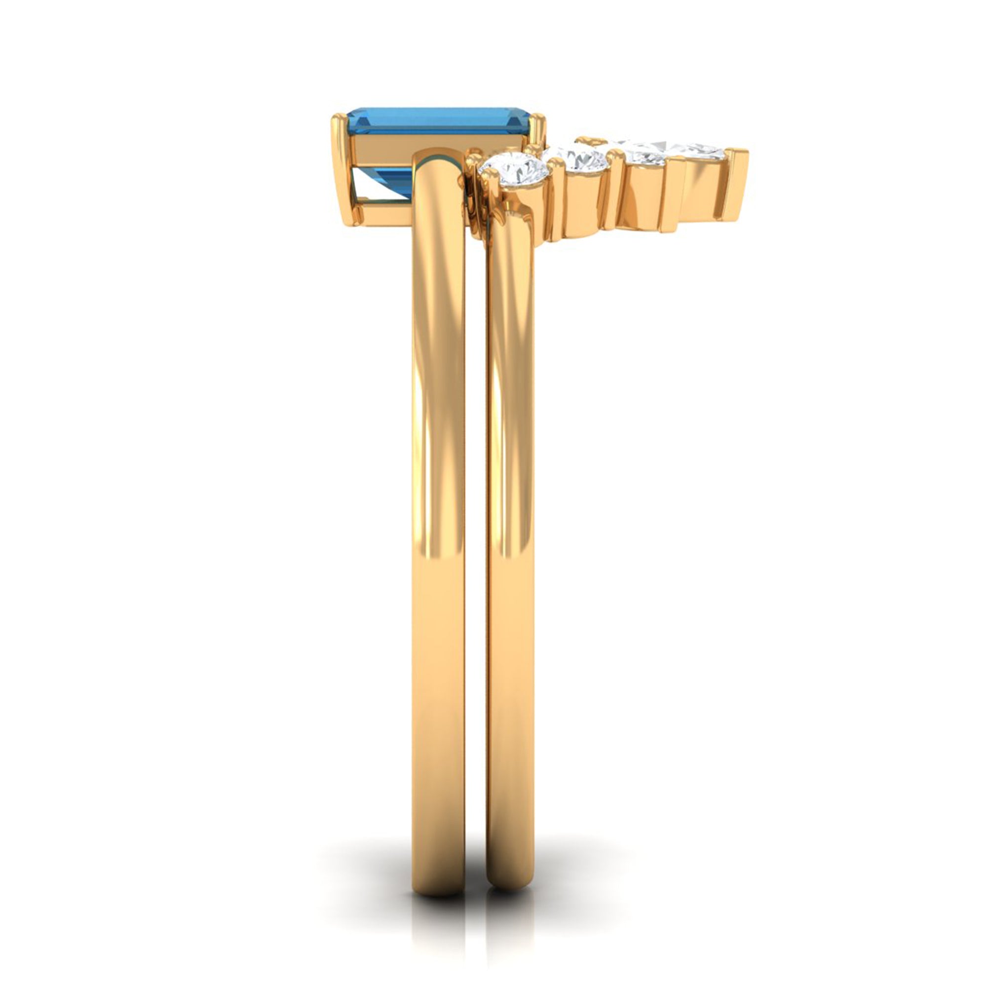 4X6mm Emerald Cut London Blue Topaz Solitaire Ring Set with Diamond