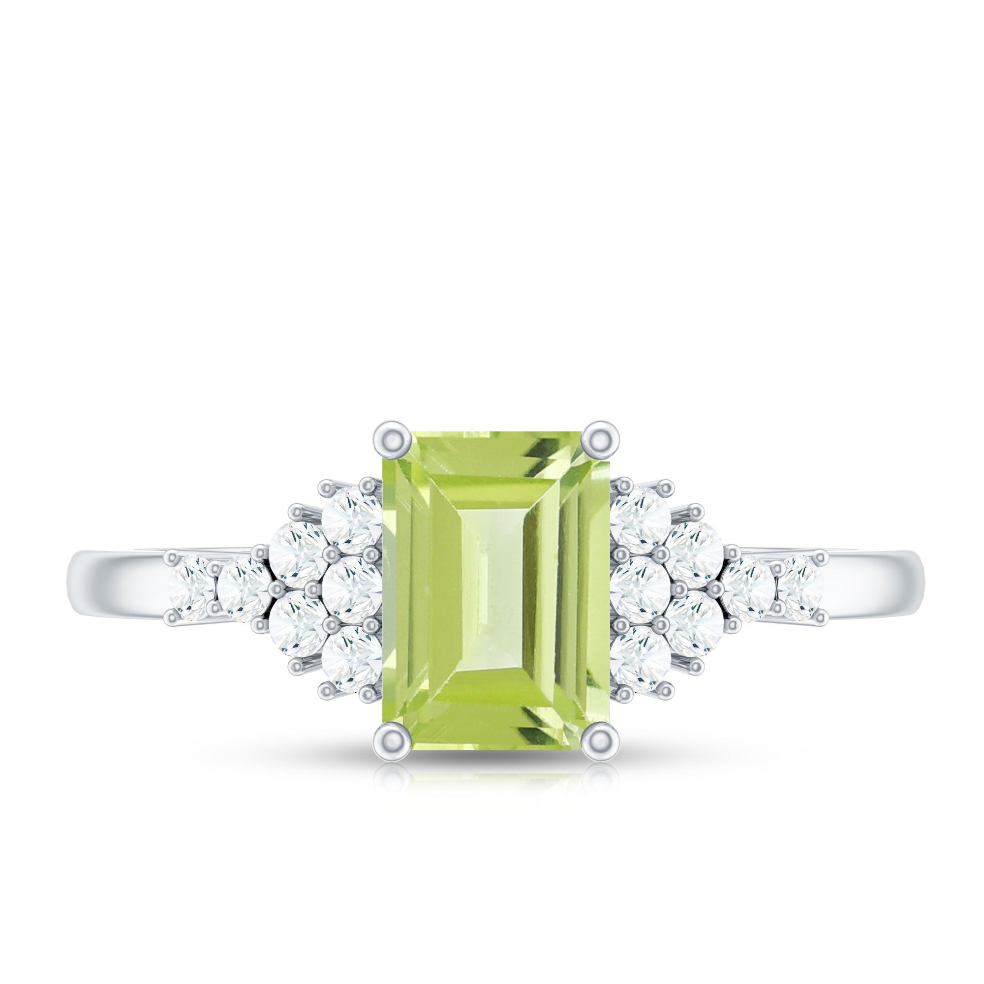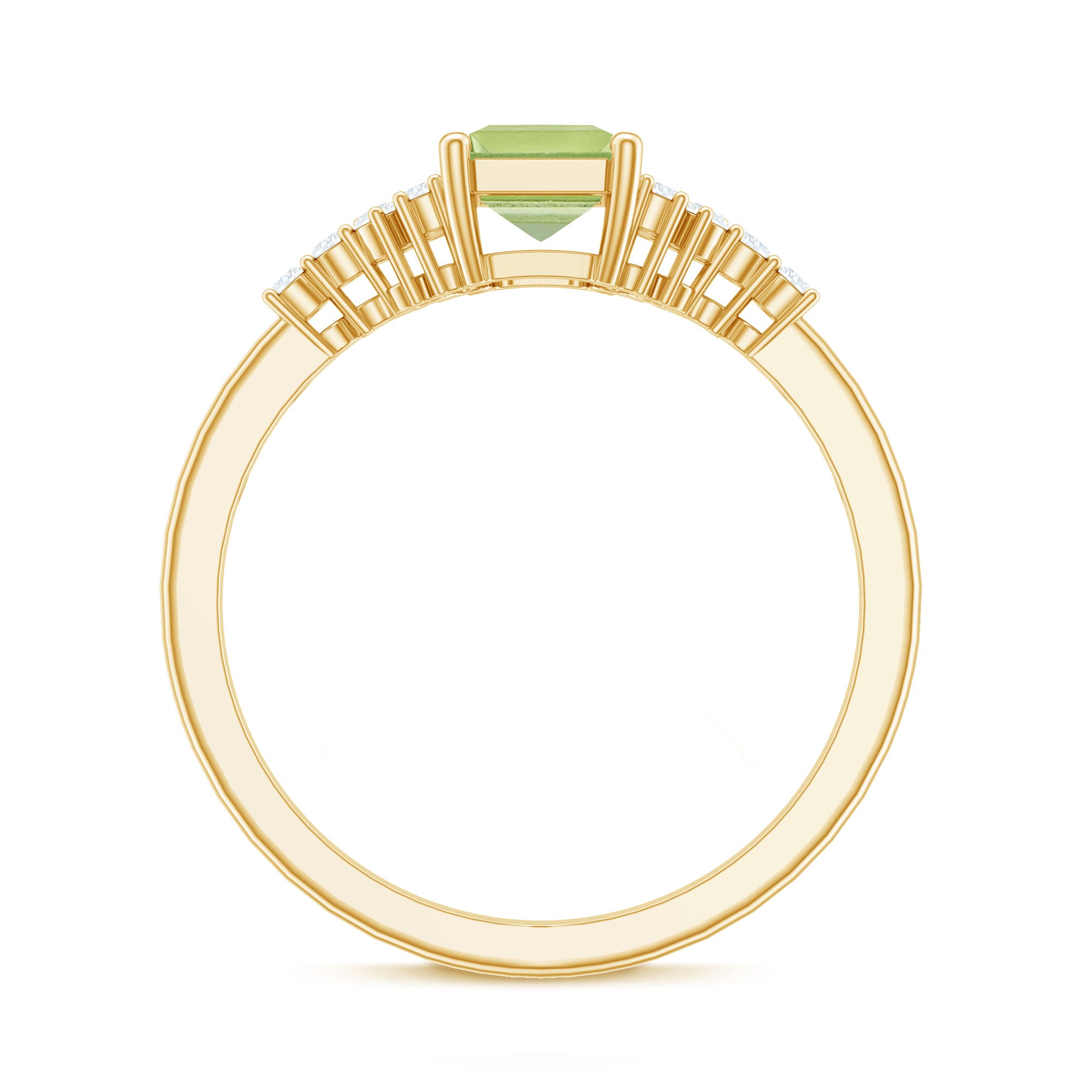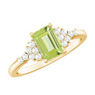 Emerald Cut Peridot and Diamond Solitaire Engagement Ring