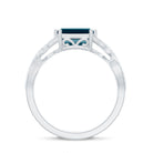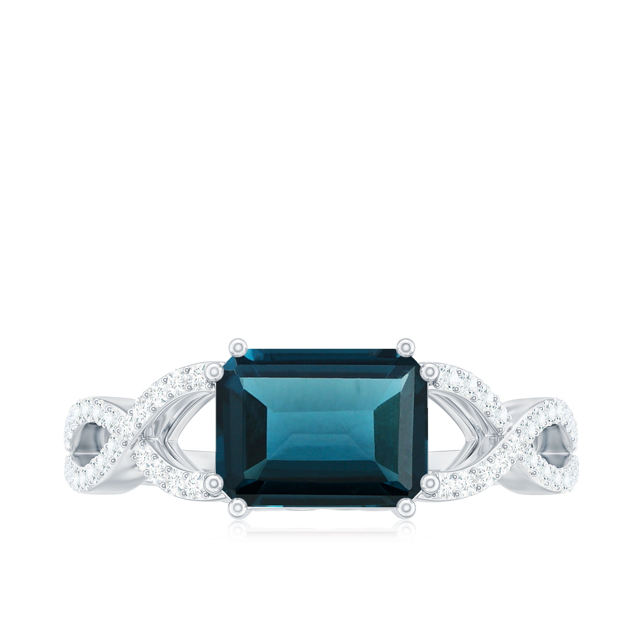 6X8mm Emerald Cut London Blue Topaz East West Engagement Ring with Diamond
