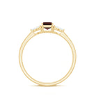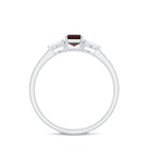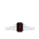 Octagon Shape Garnet Solitaire Ring with Diamond Trio