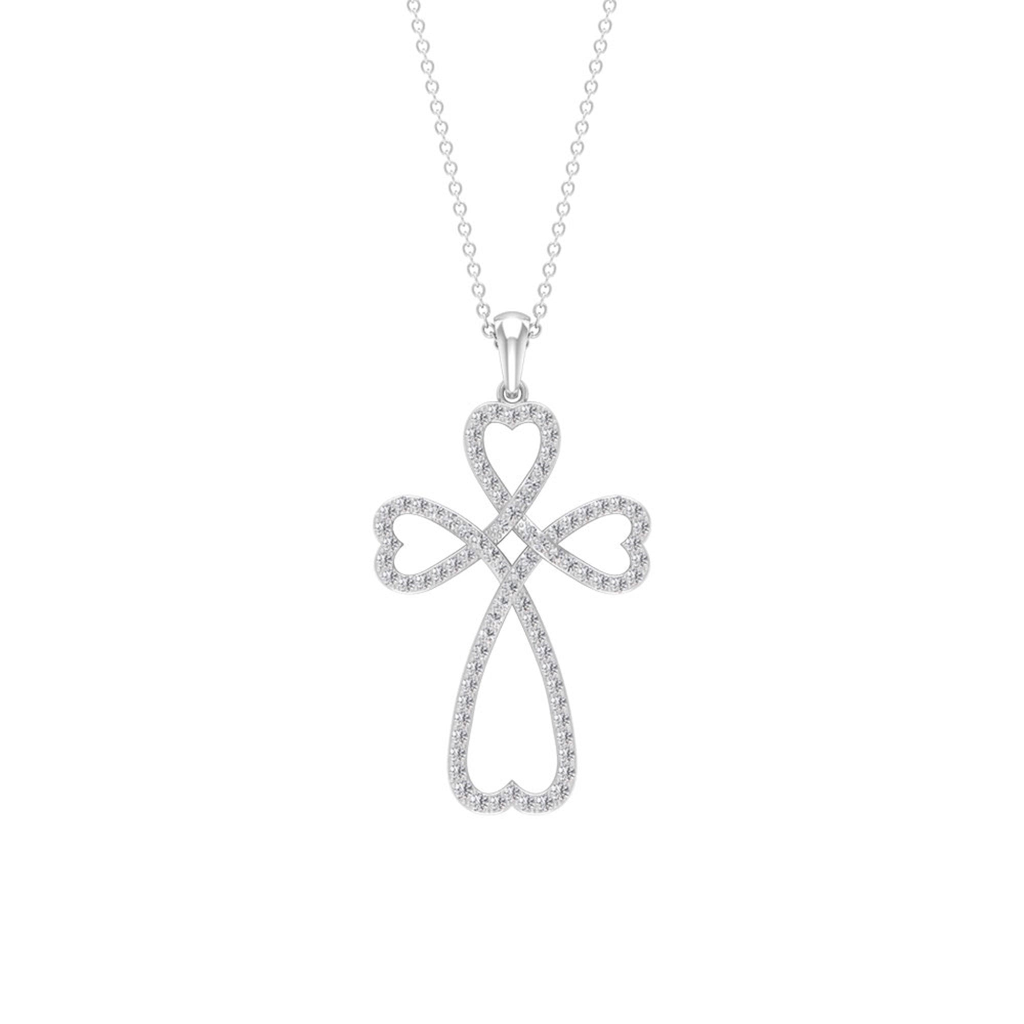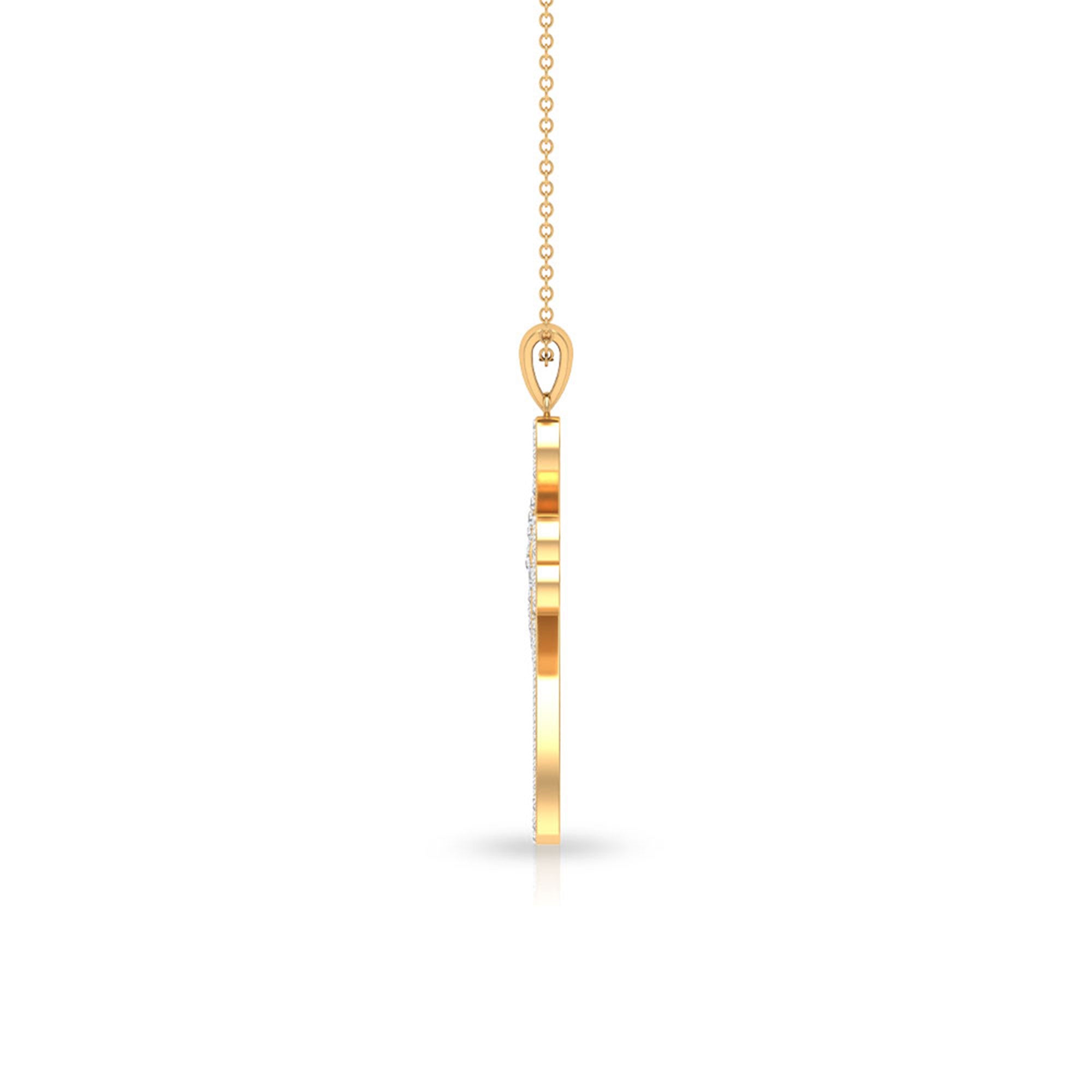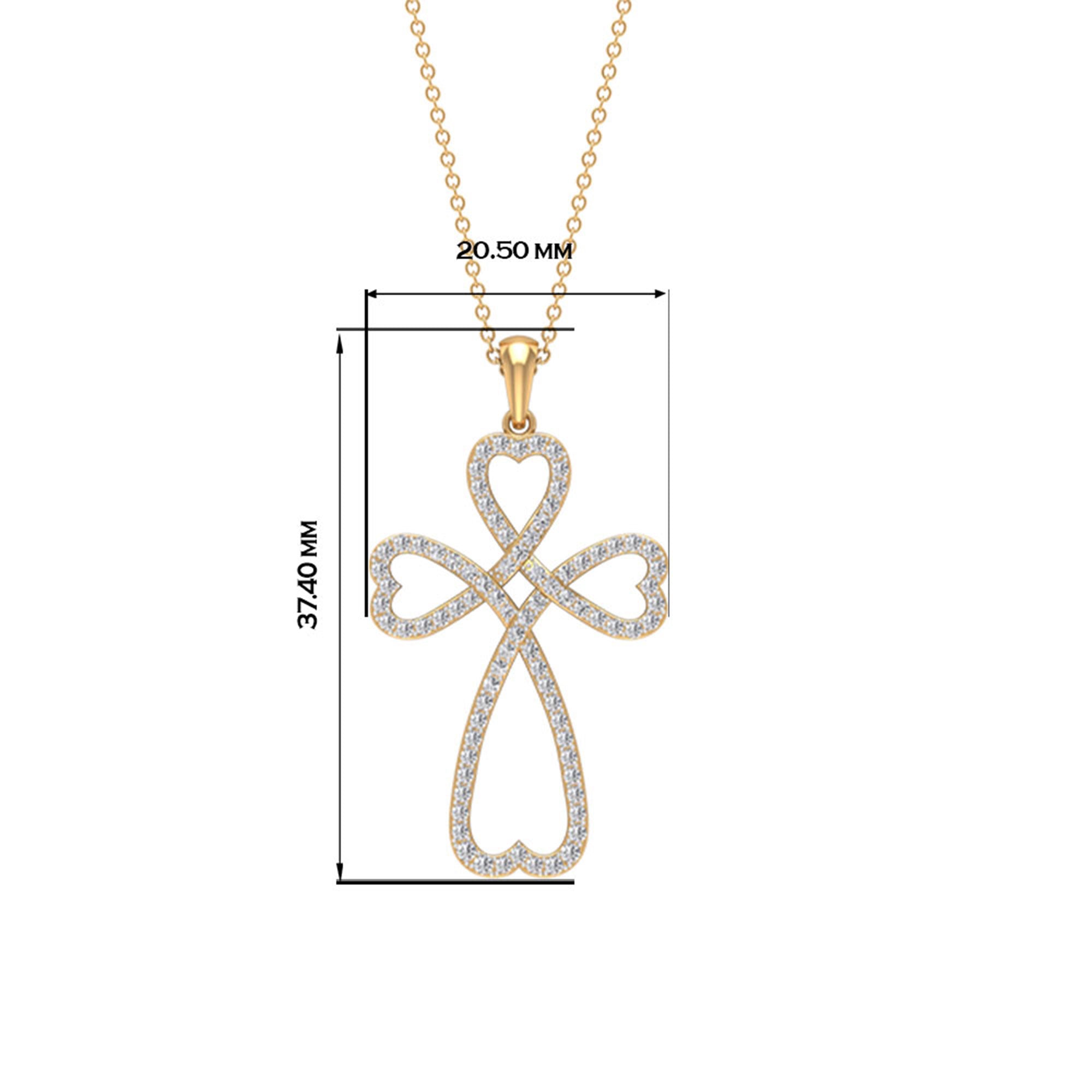 It is a Minimalist Cross Pendant, set in Gold and features Round Cut Moissanite embellished in Pave Setting for you to look stunning. It is also known as a Heart Pendant.