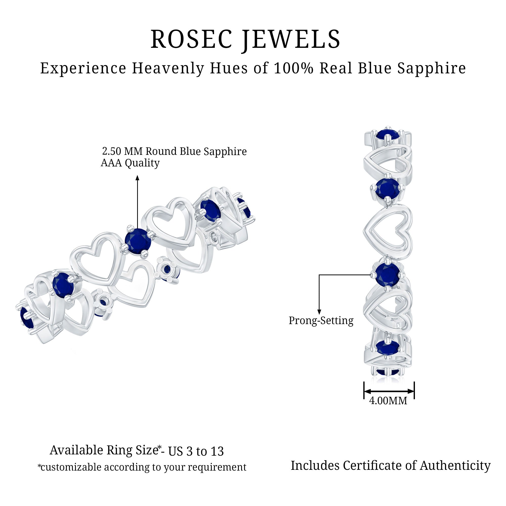 Open Gold Heart Blue Sapphire Band Ring in 2 Prong Setting