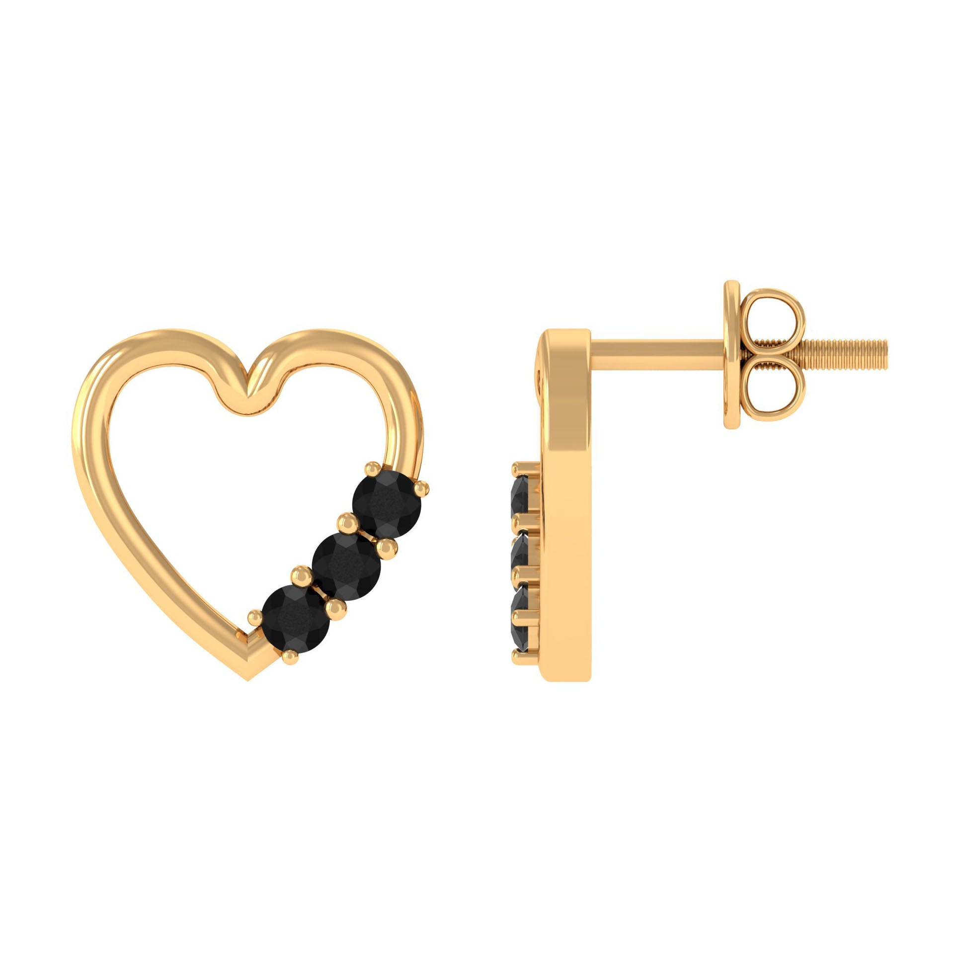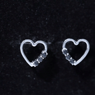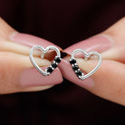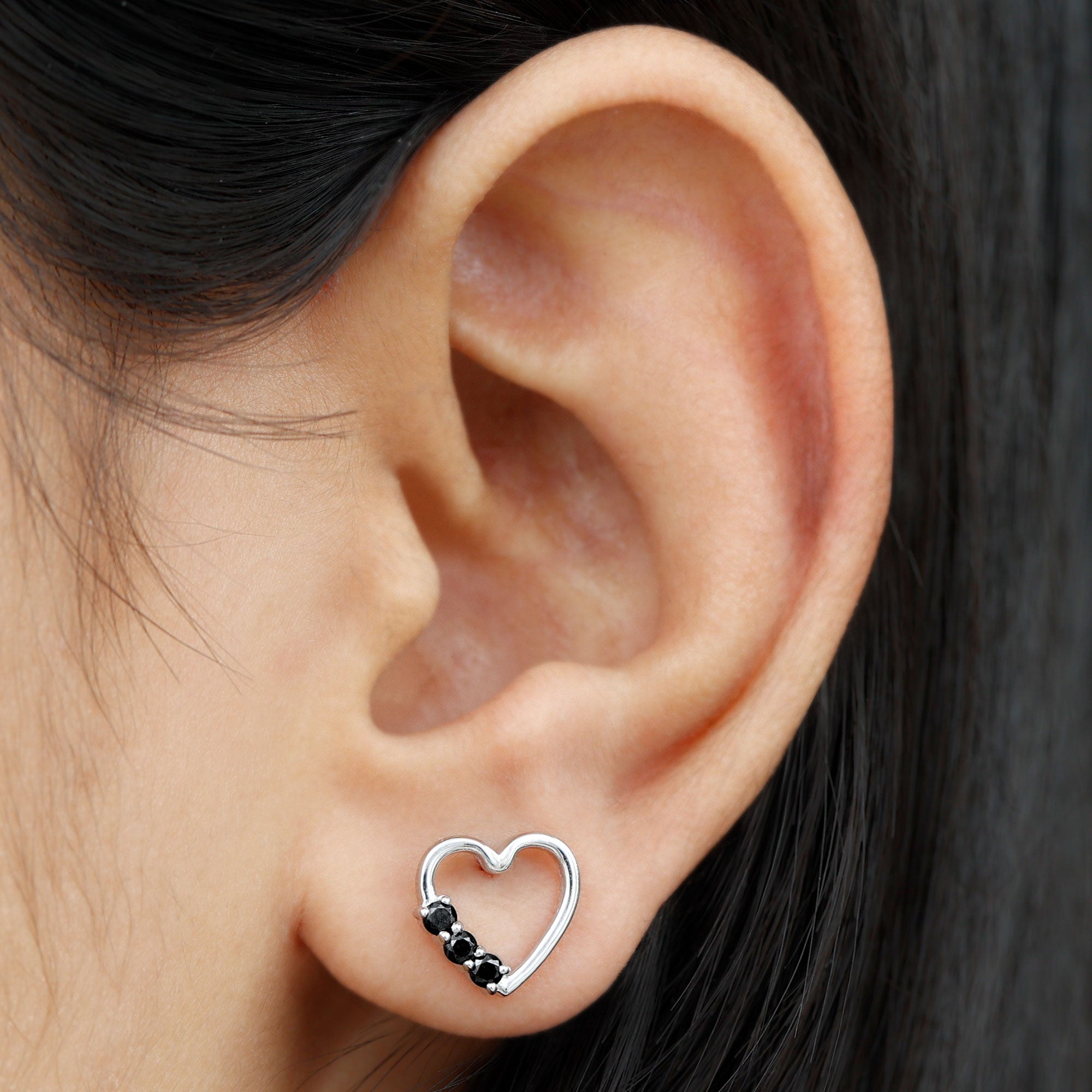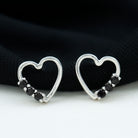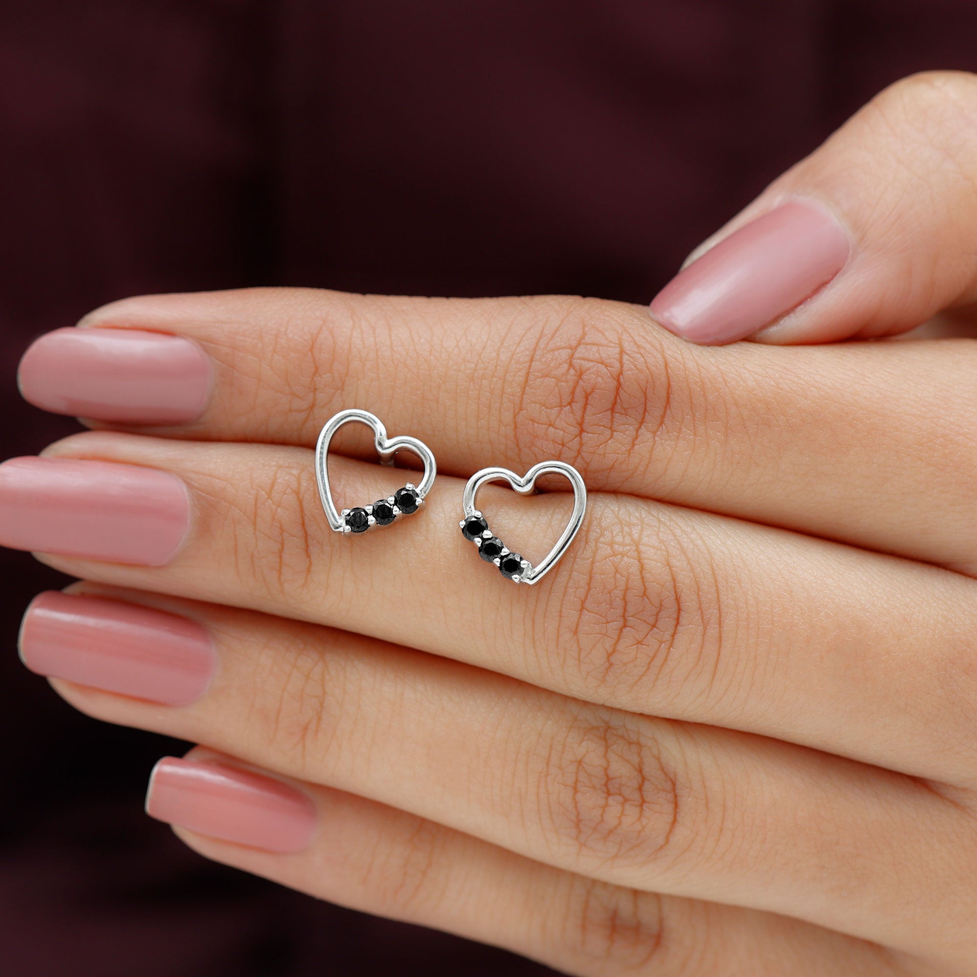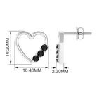 Open Heart Stud Earrings with Three Lab-Created Black Diamond