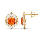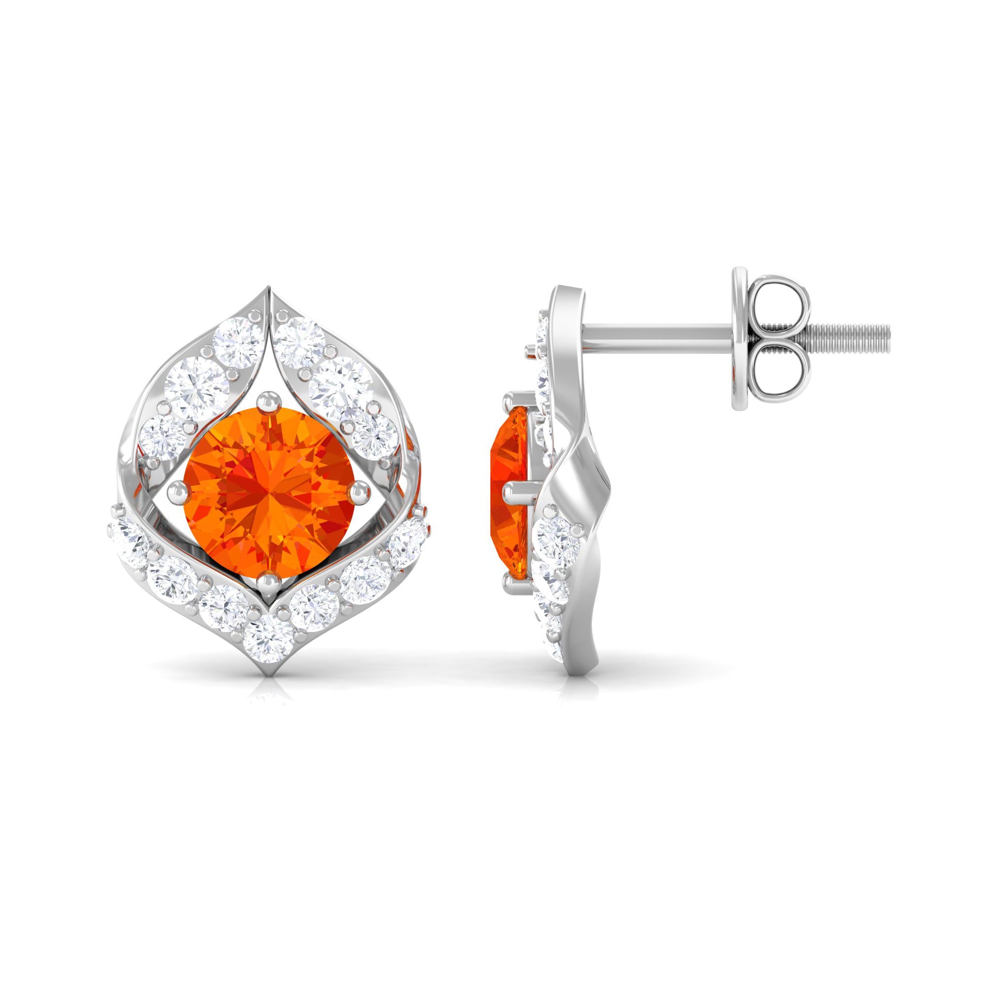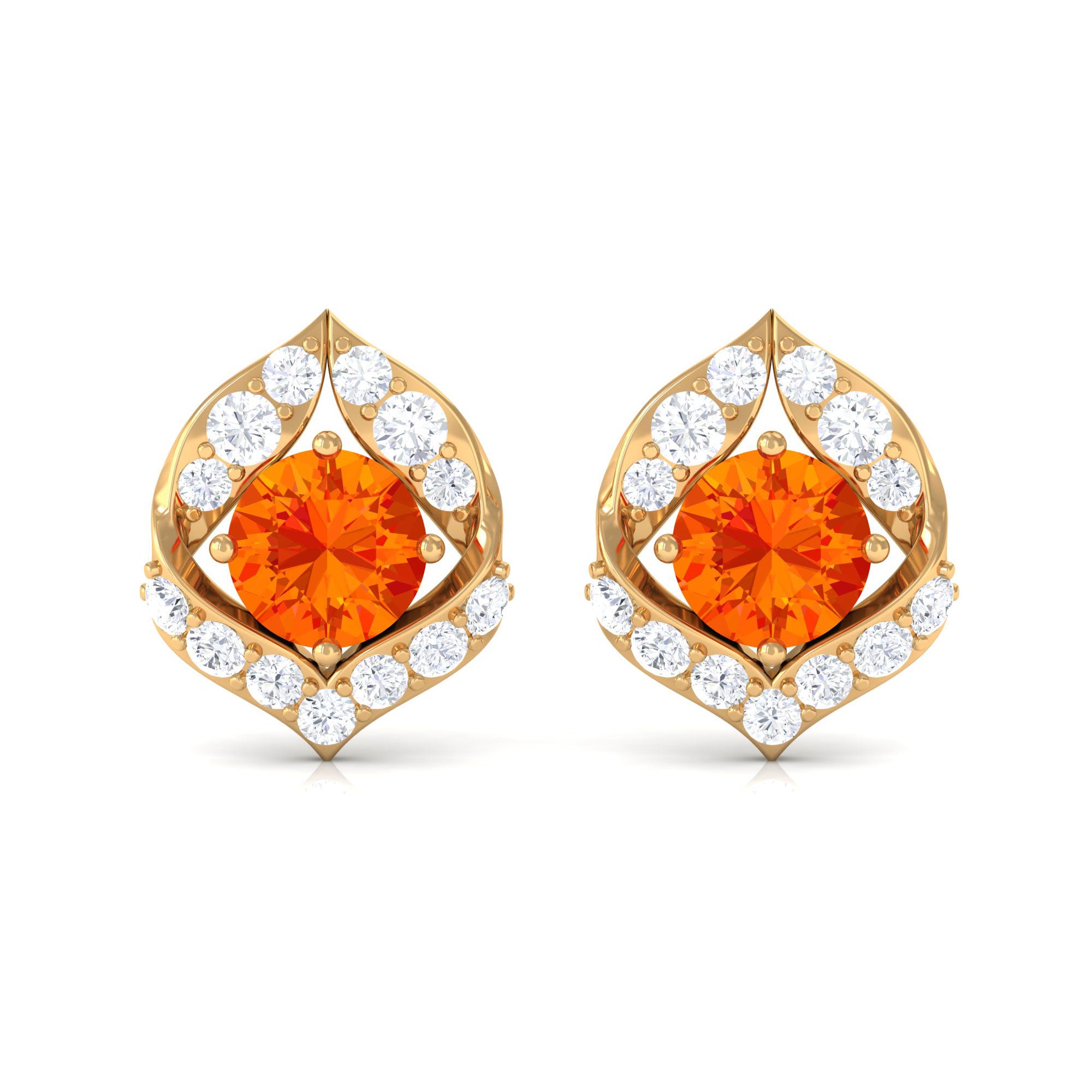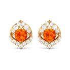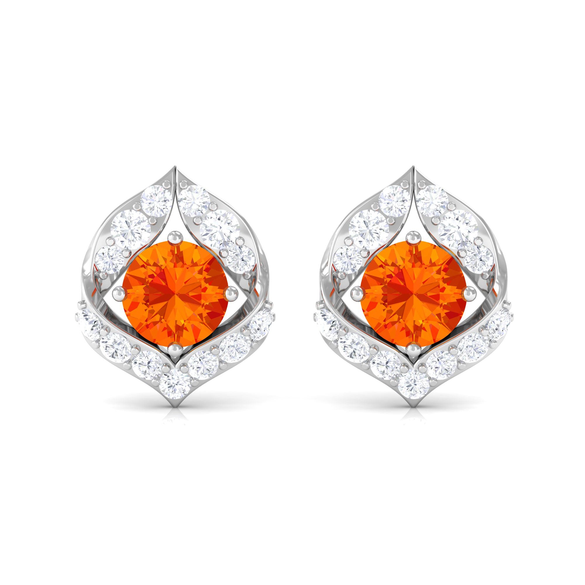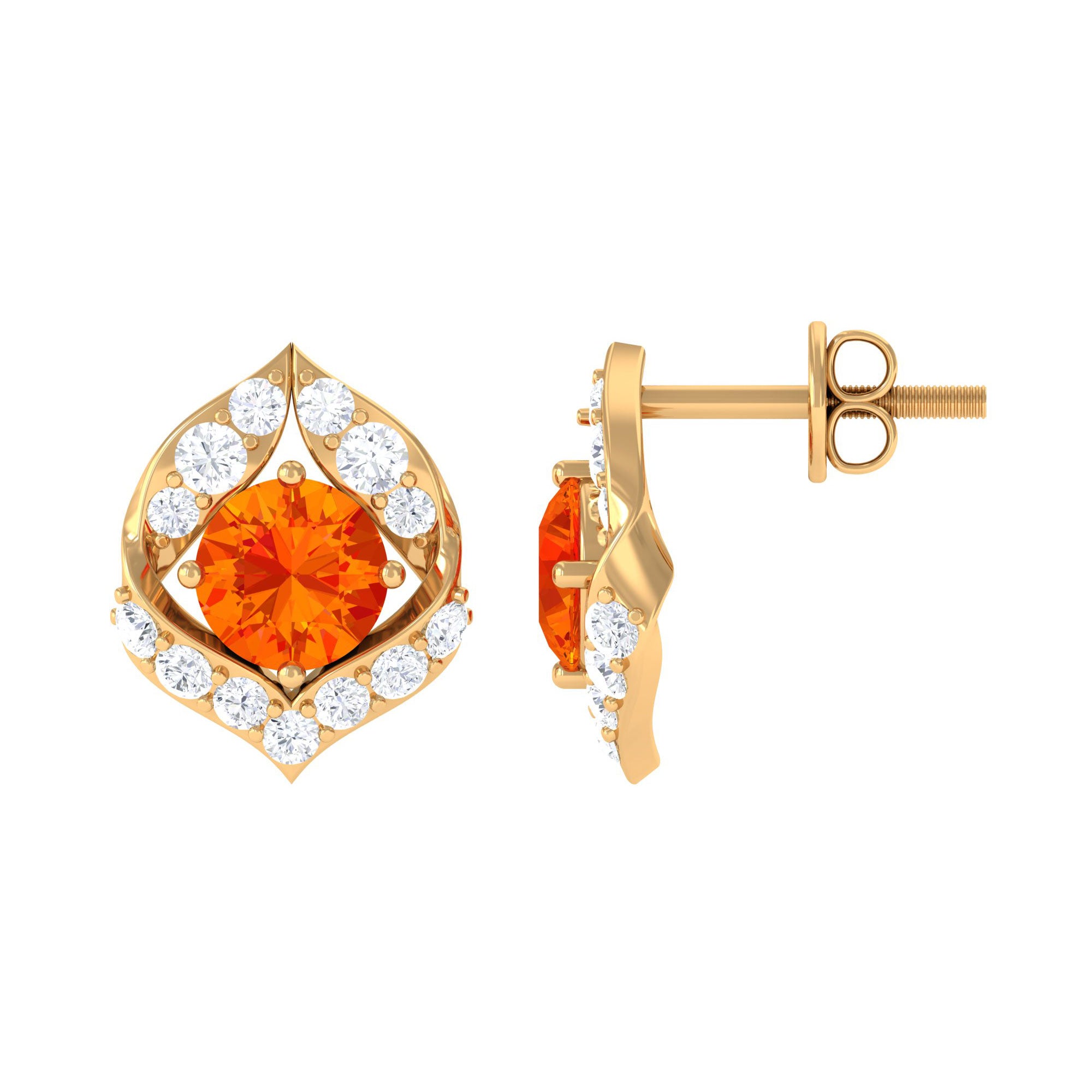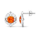 These awesome Unique Stud Earrings will have everyone mesmerized when you wear them around town. Crafted with Hallmarked Metal and embellished with Round Shape Orange Sapphire secured by 4 Prong Setting while dainty Round Diamonds studded on the unique design. You will make a unique style statement with these Orange Sapphire Earrings when you will wear them with your casual or party attires. Melt her heart by getting these Unique Earrings for her on a special occasion.