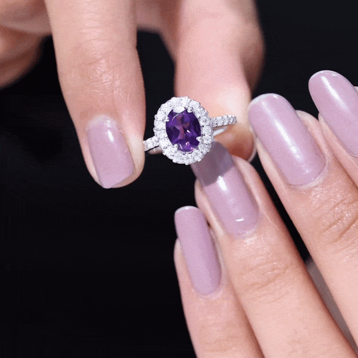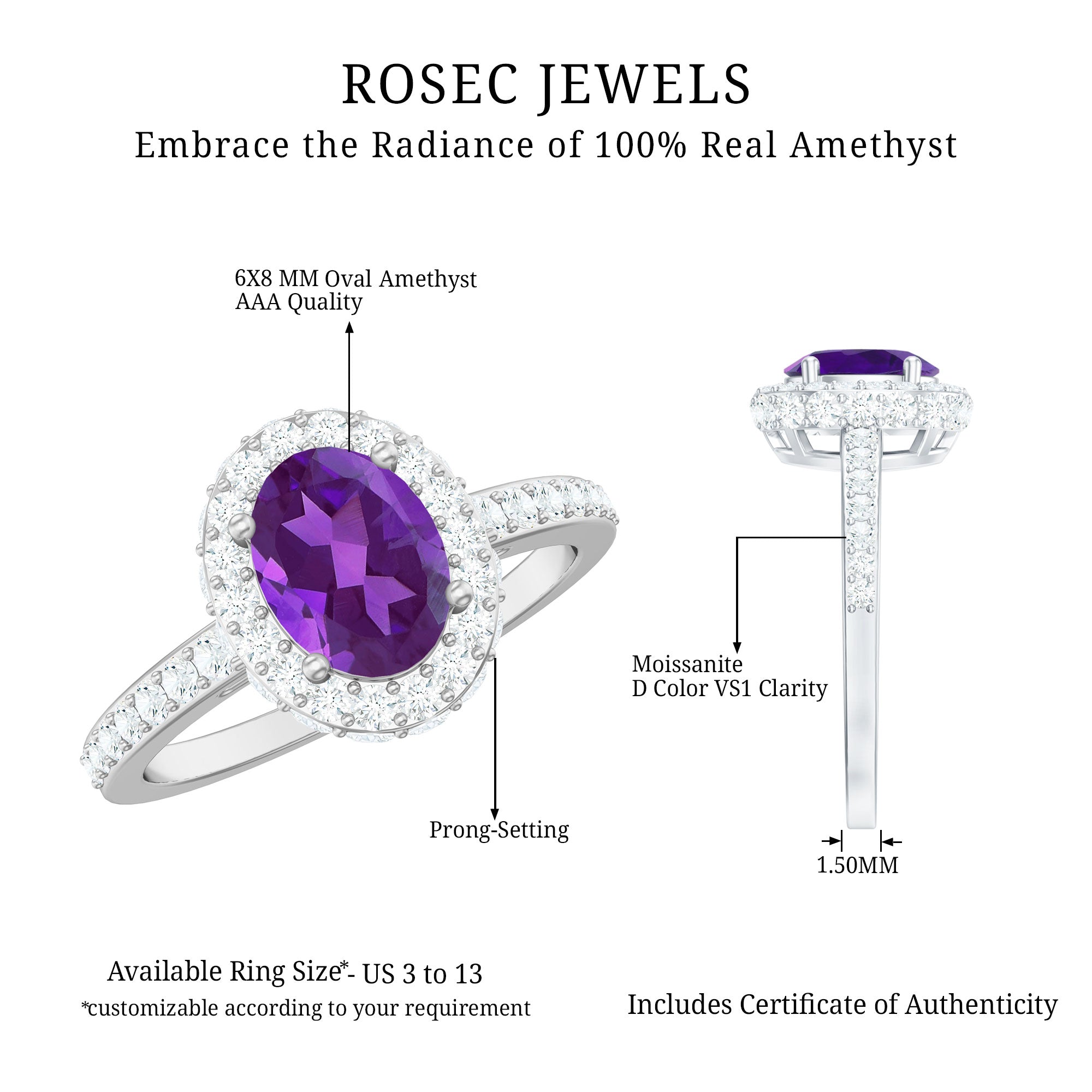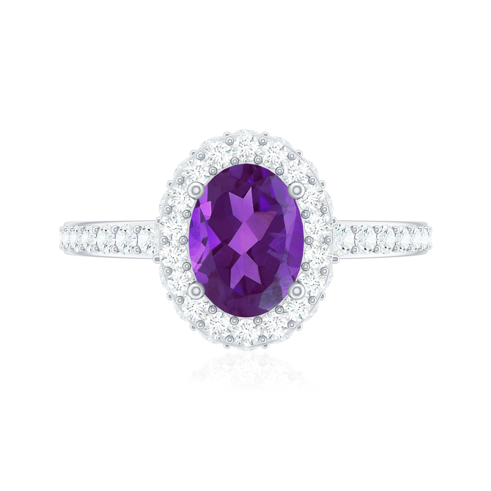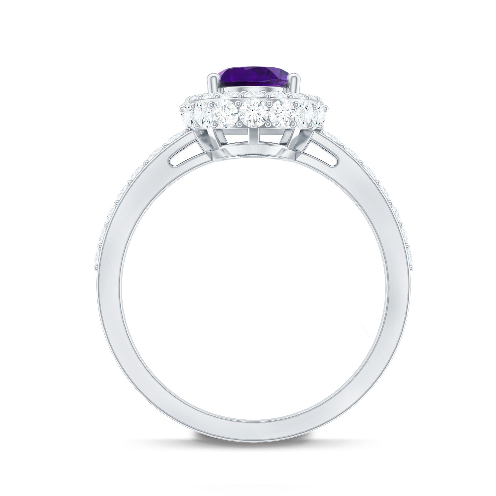 Oval Amethyst Engagement Ring with Moissanite Halo