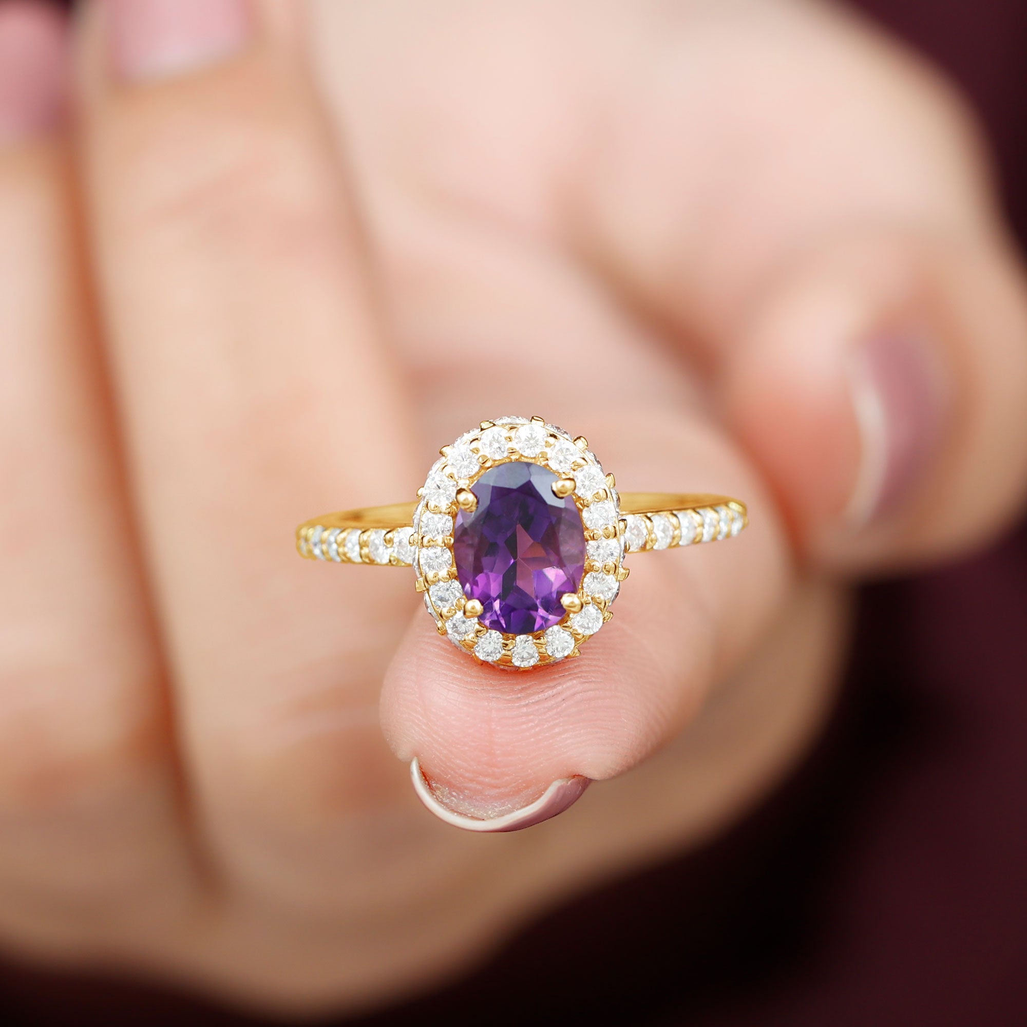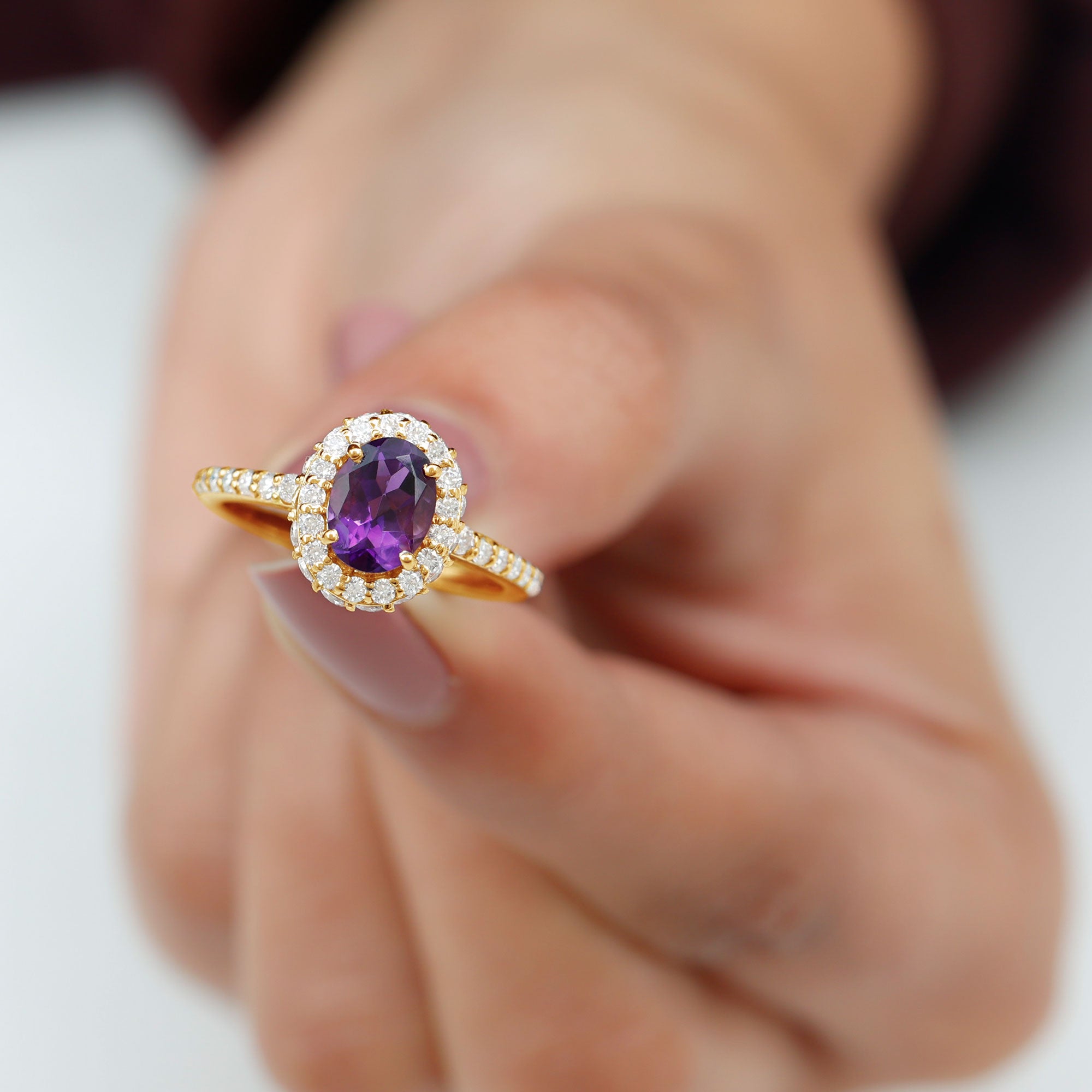 Oval Amethyst Engagement Ring with Moissanite Halo