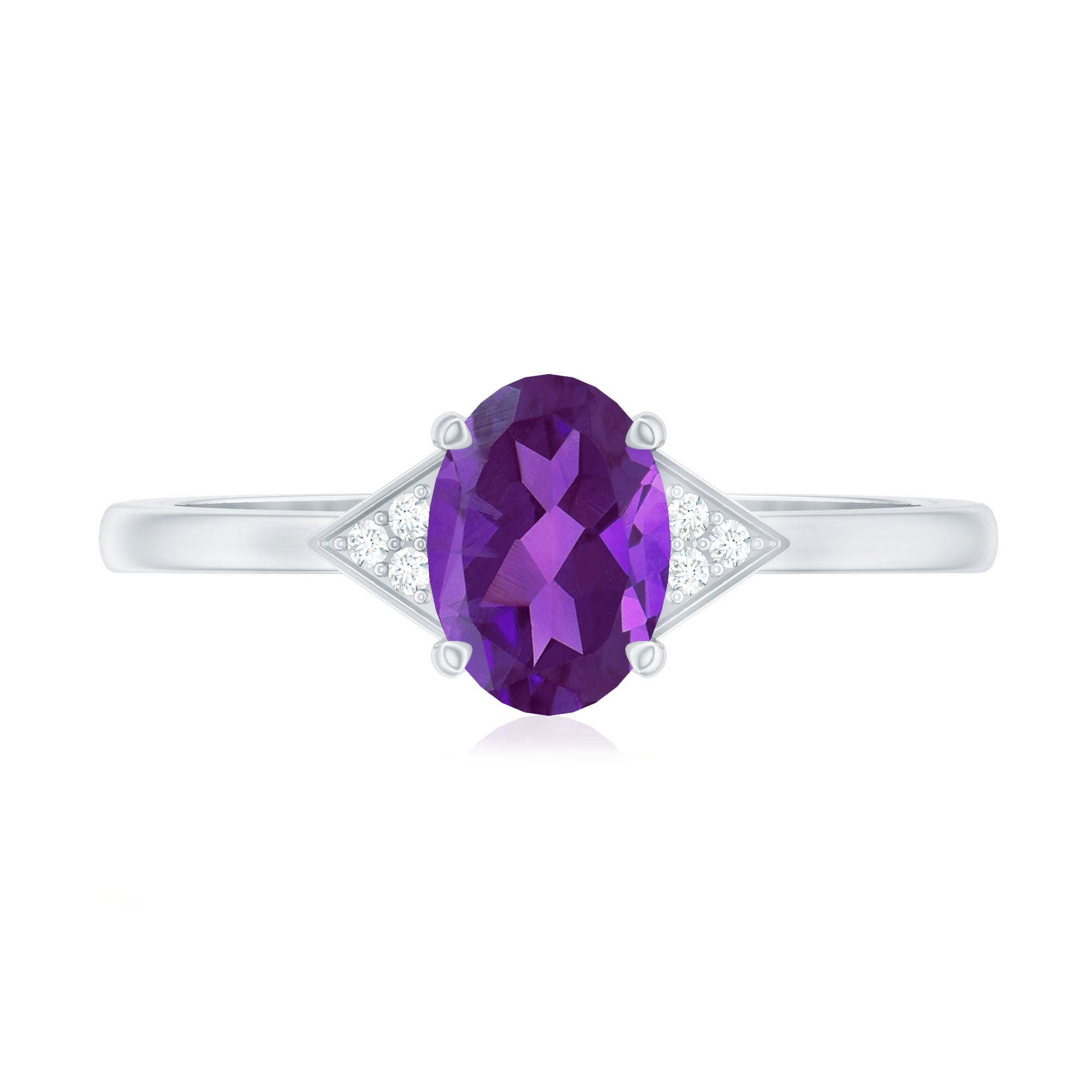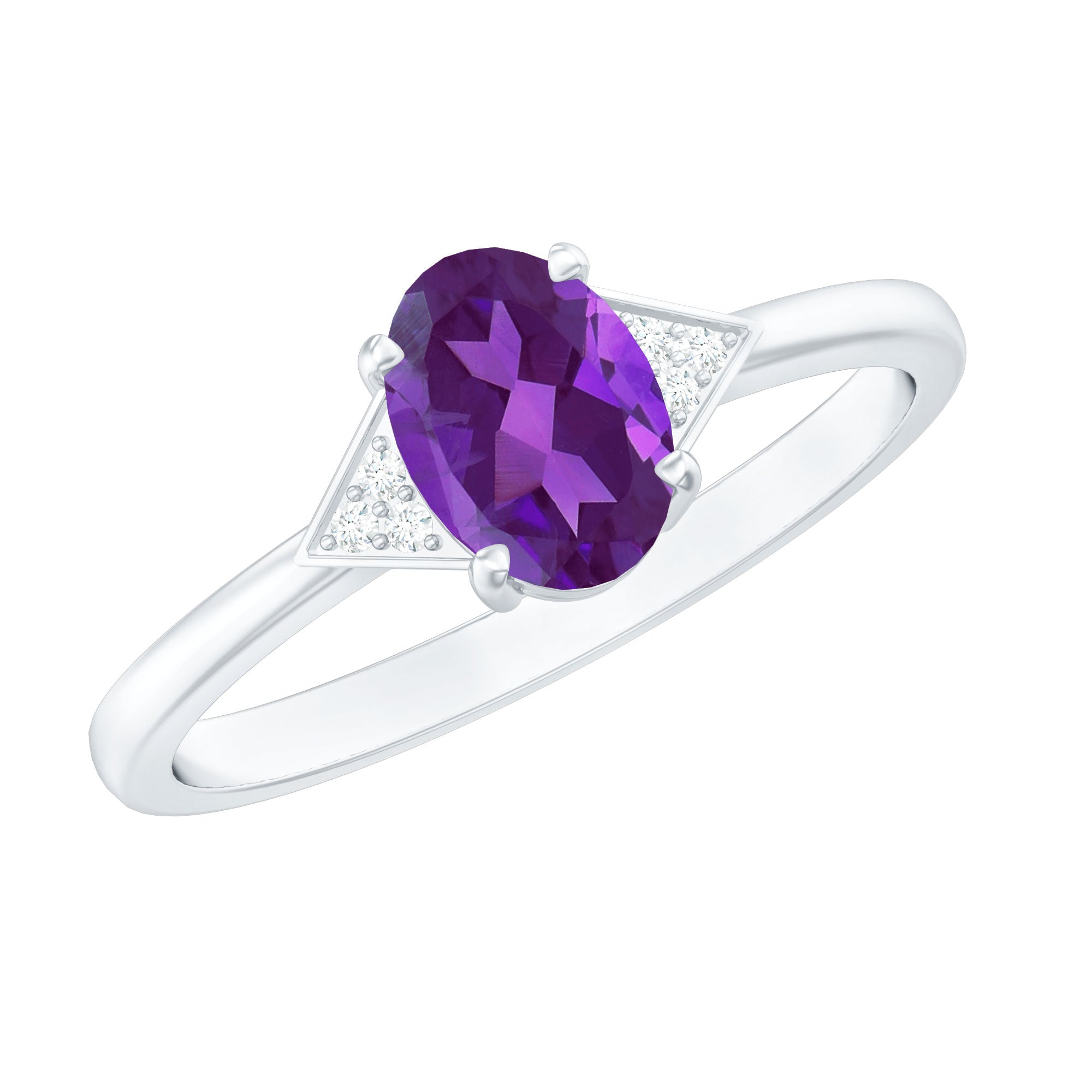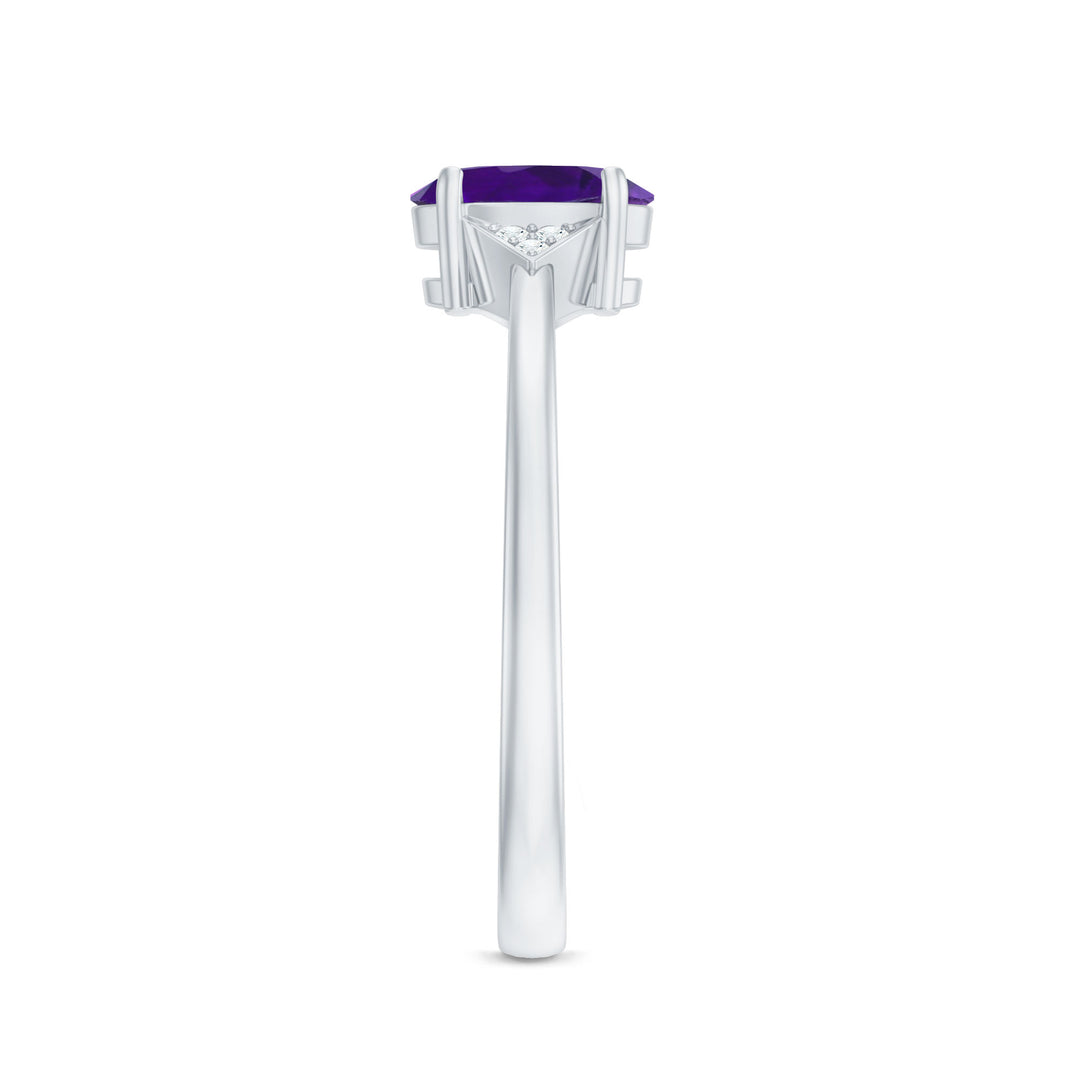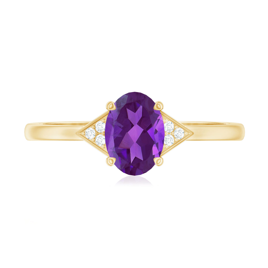 Oval Amethyst Solitaire Engagement Ring with Diamond Accent