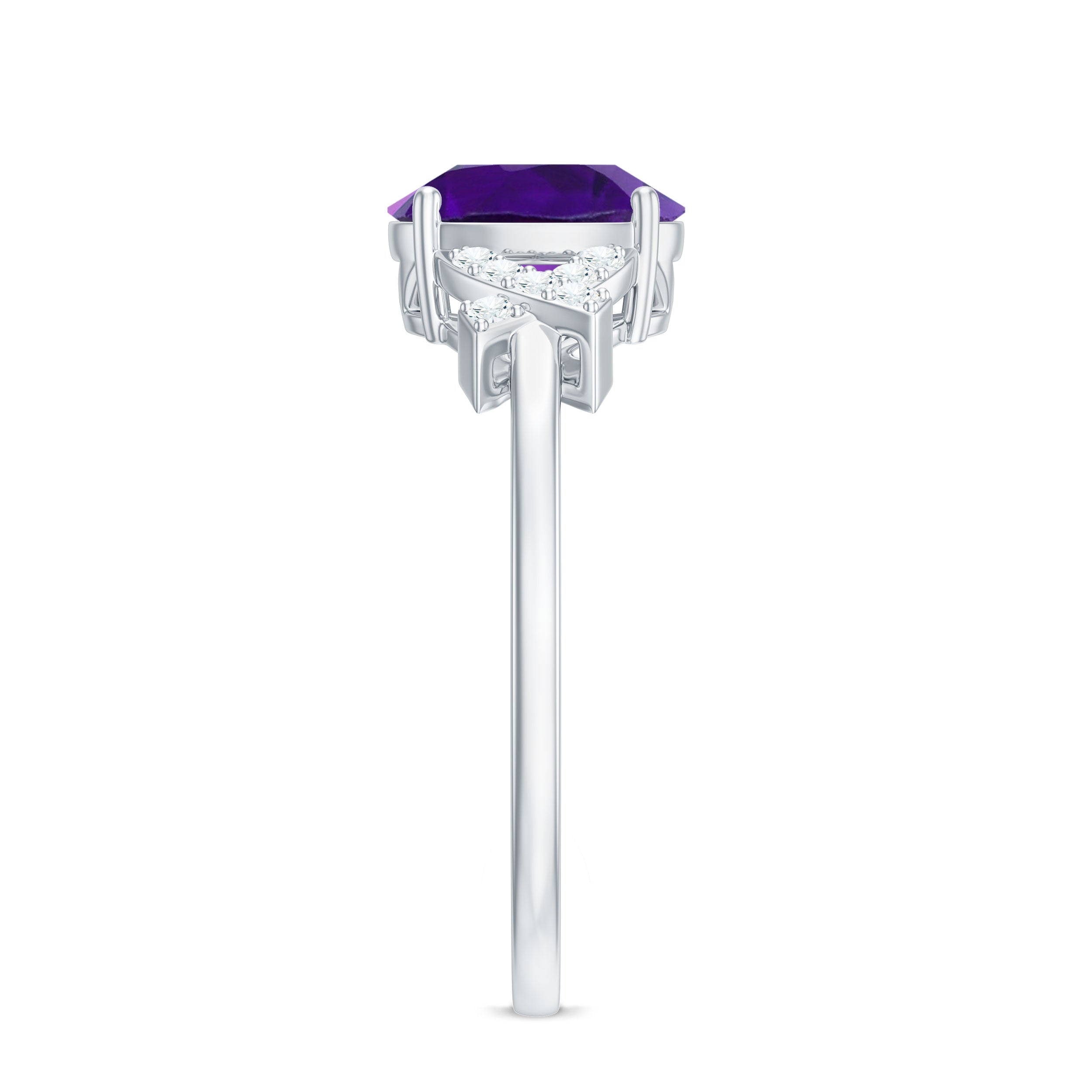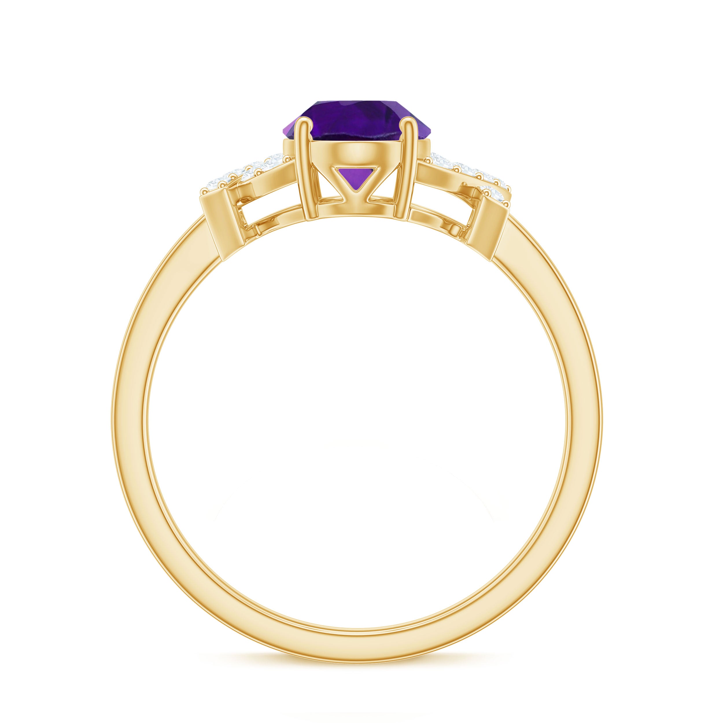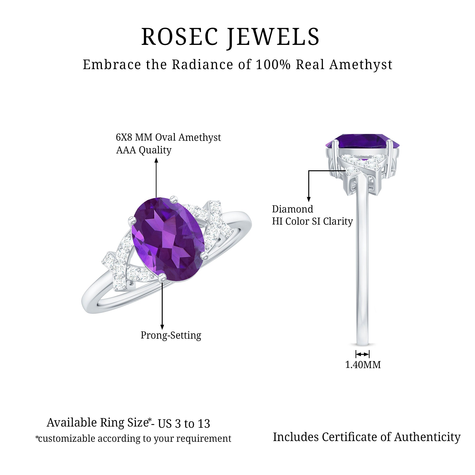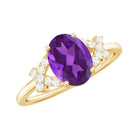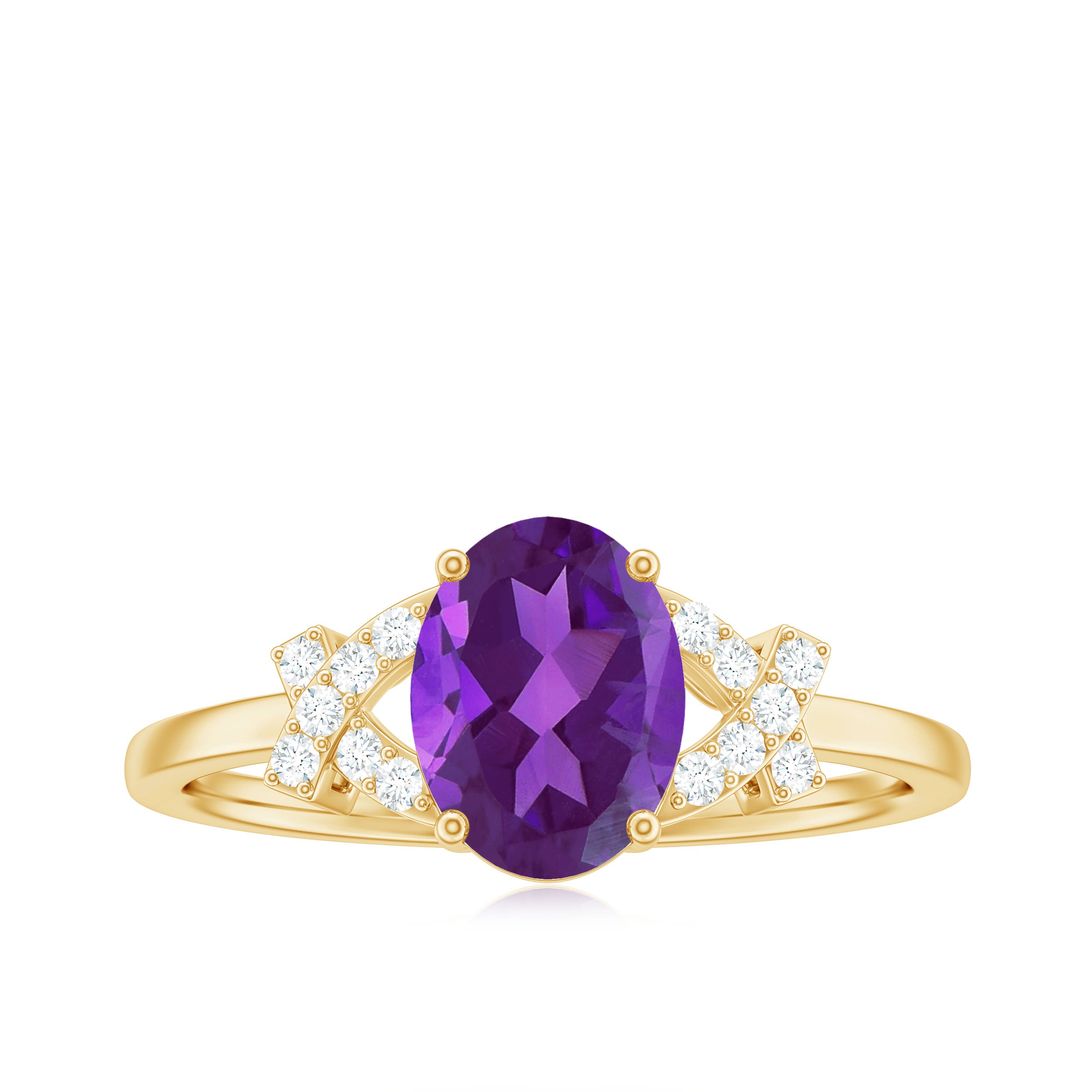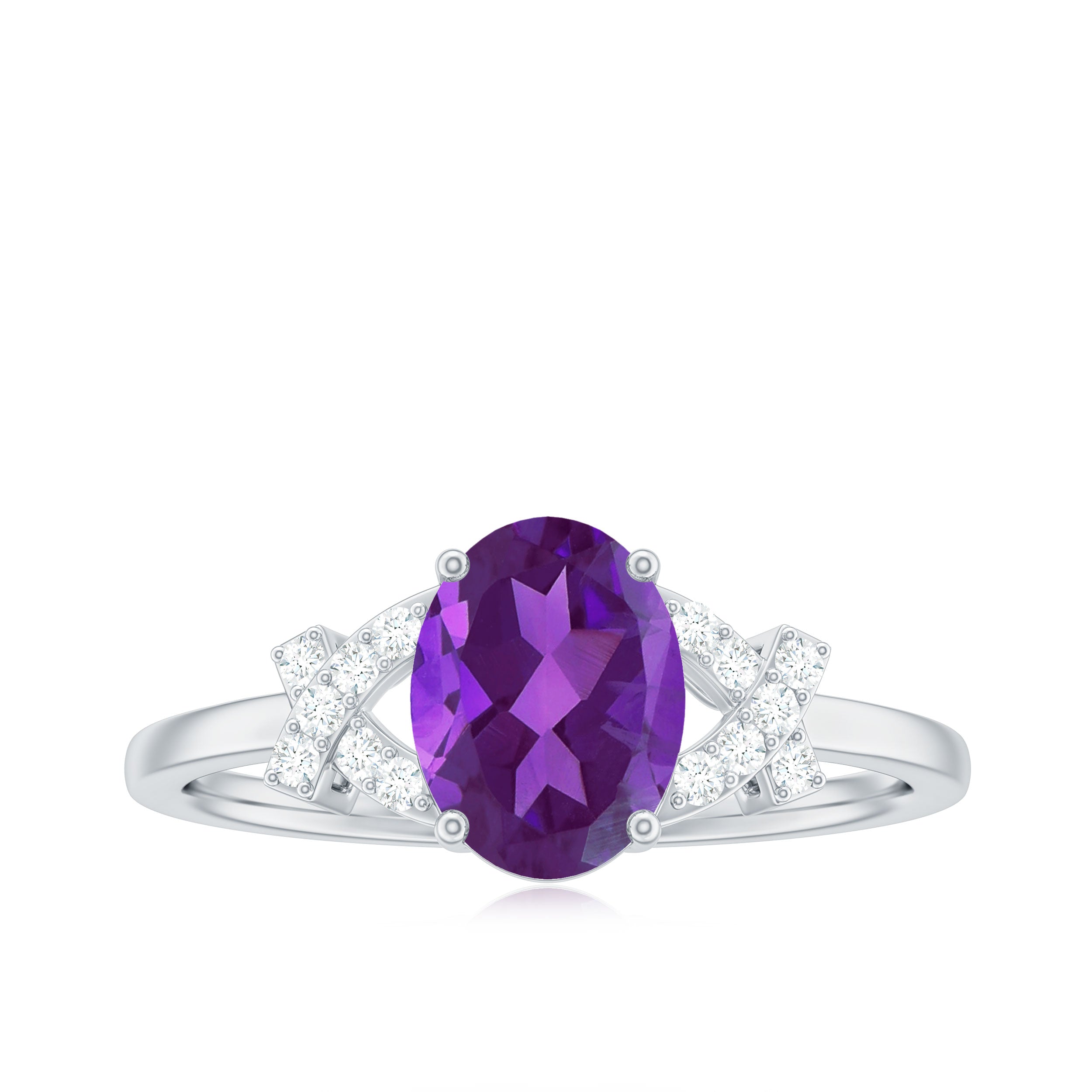 Oval Amethyst Solitaire Ring with Diamond in Split Shank
