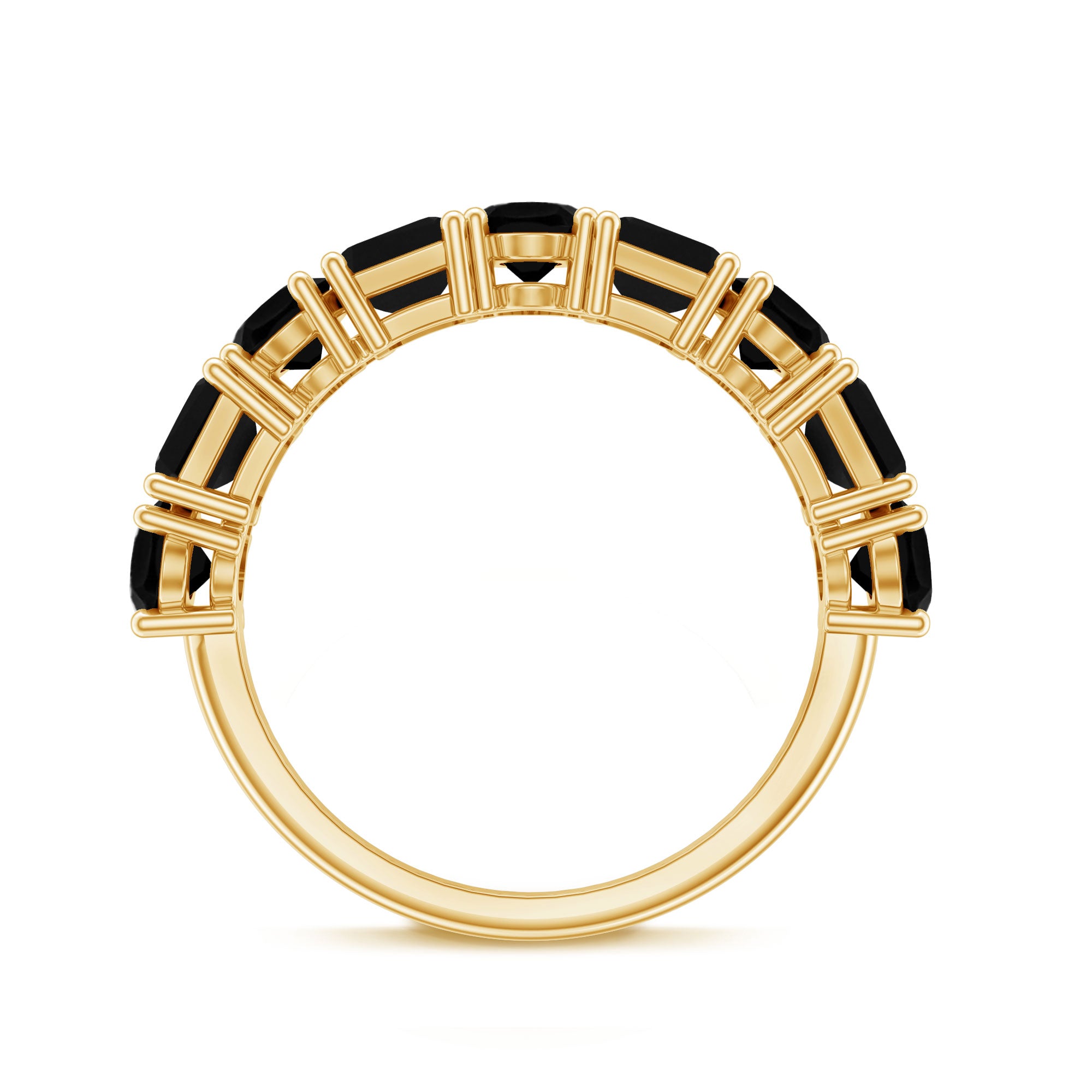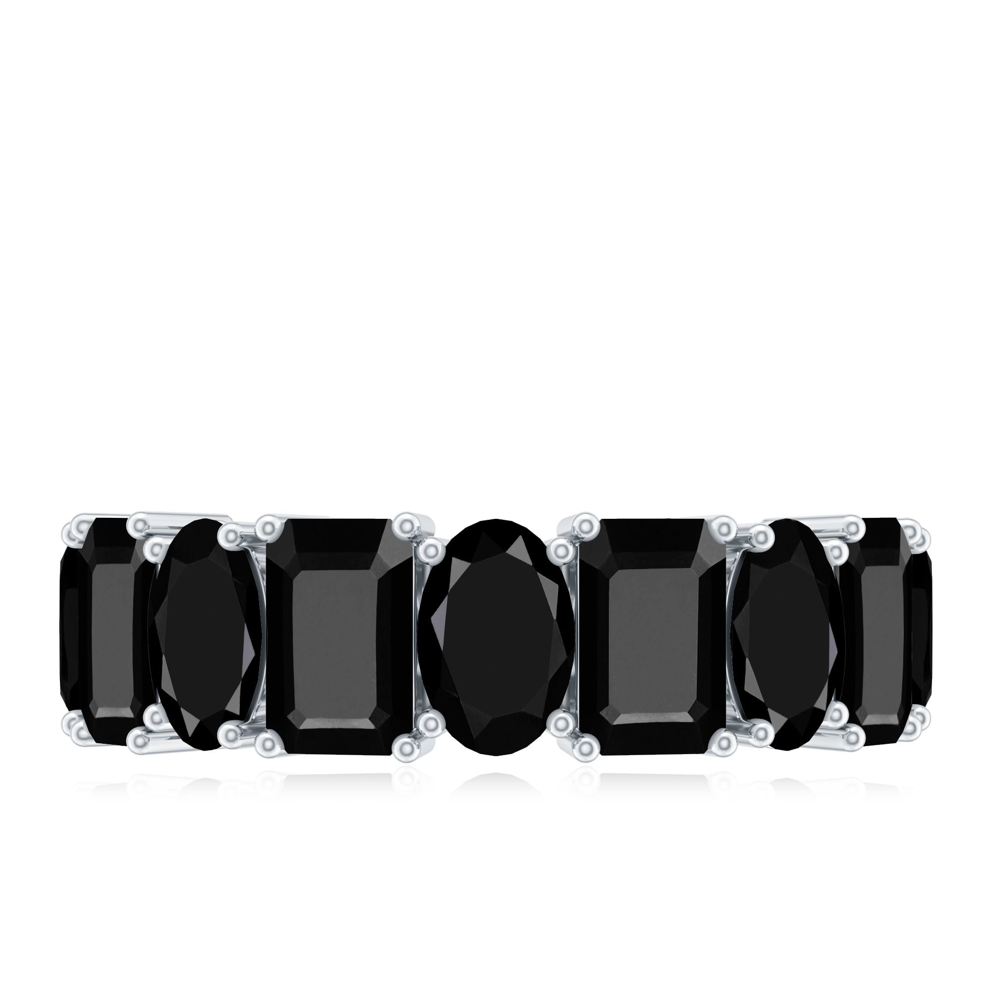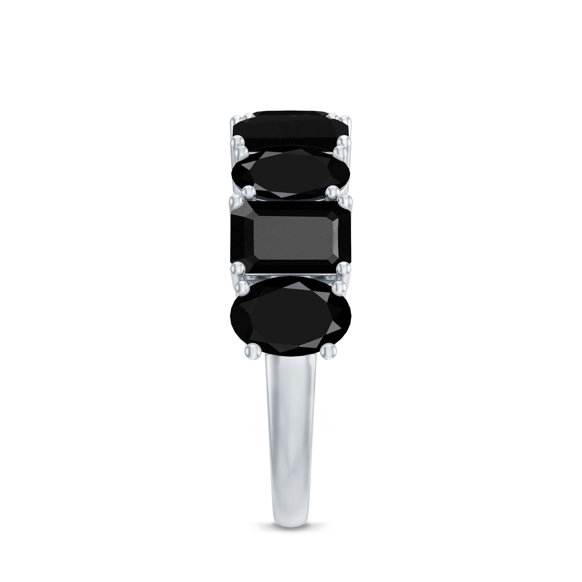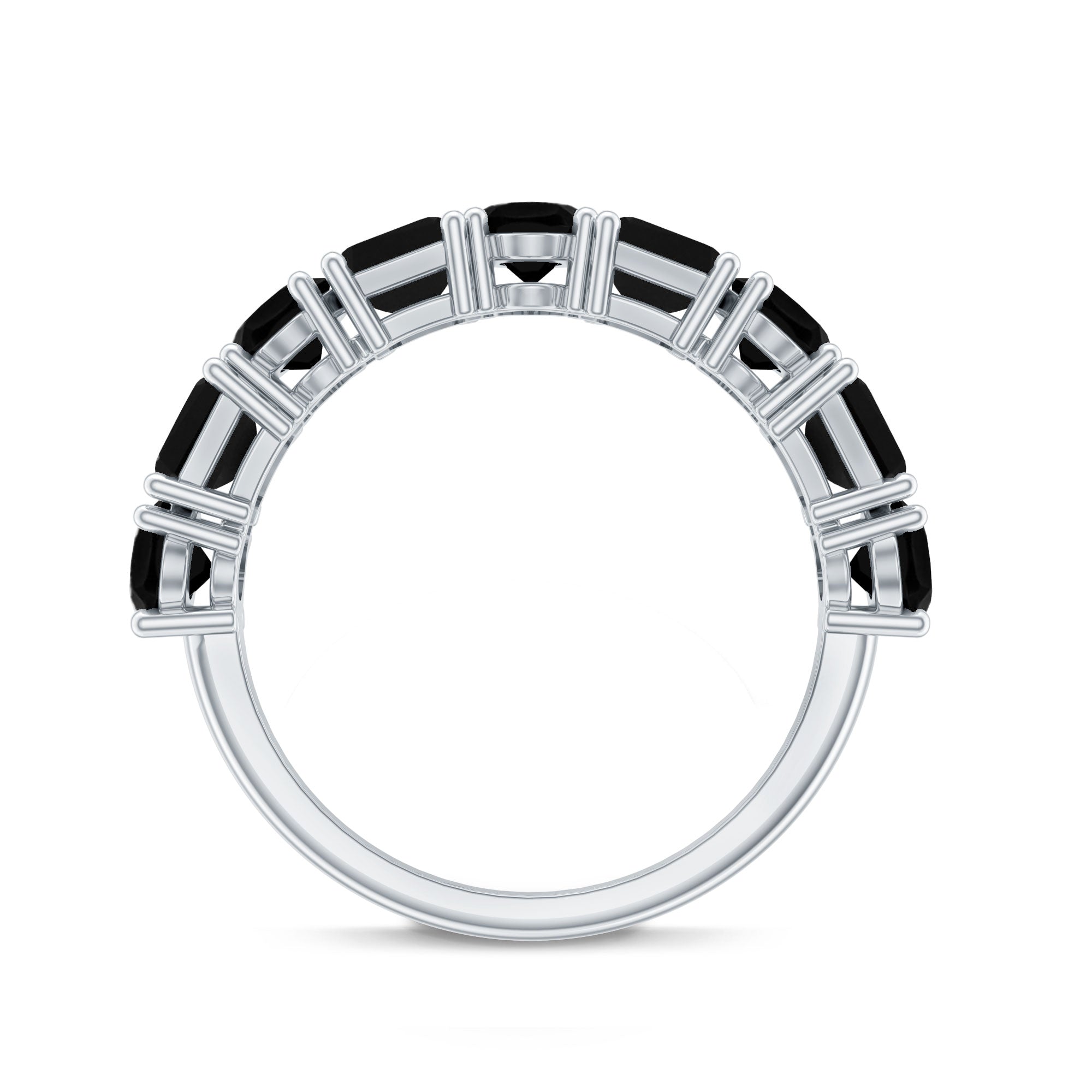 Oval and Emerald Cut Black Onyx Half Eternity Wedding Band