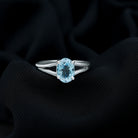 Genuine Oval Aquamarine Solitaire Engagement Ring in Split Shank