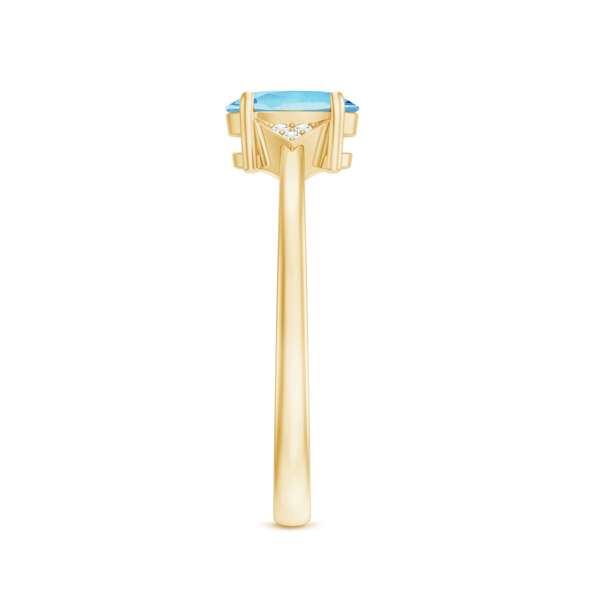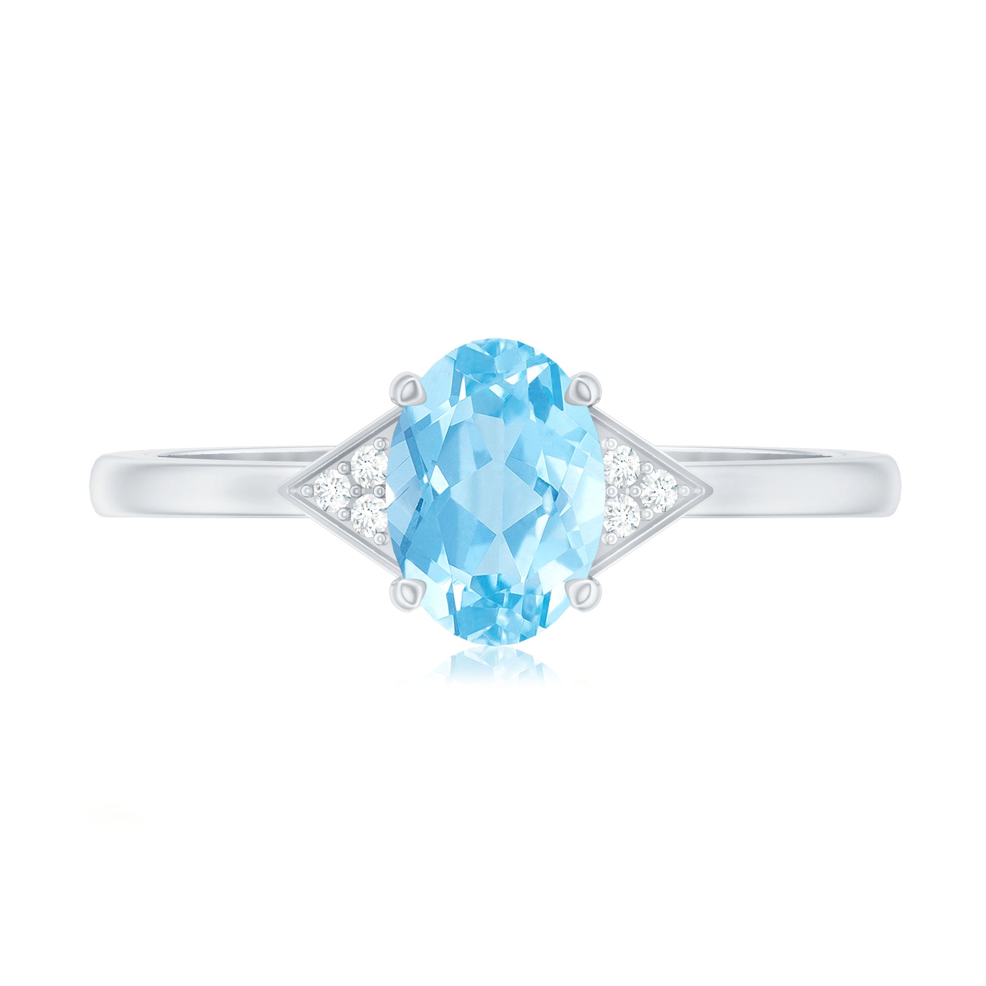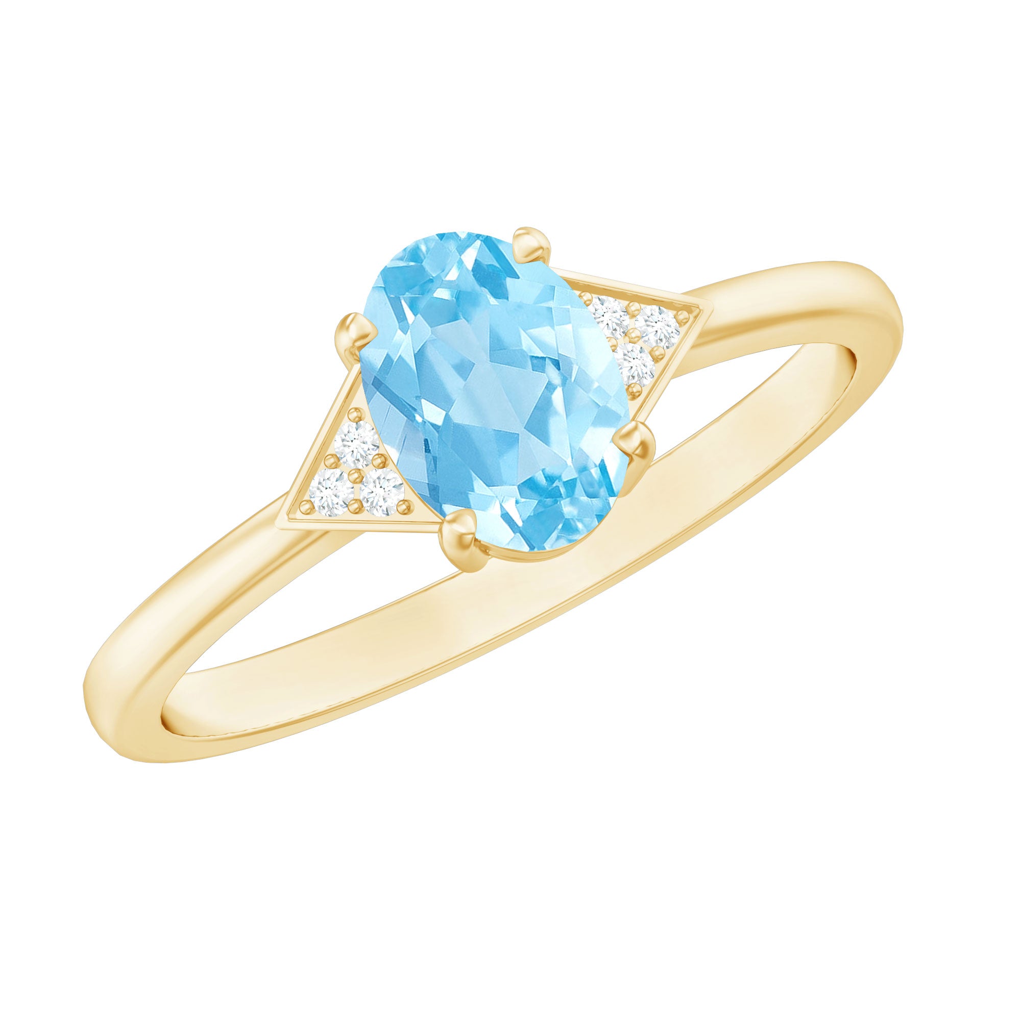 Genuine 6X8mm Aquamarine Oval Engagement Ring with Diamond