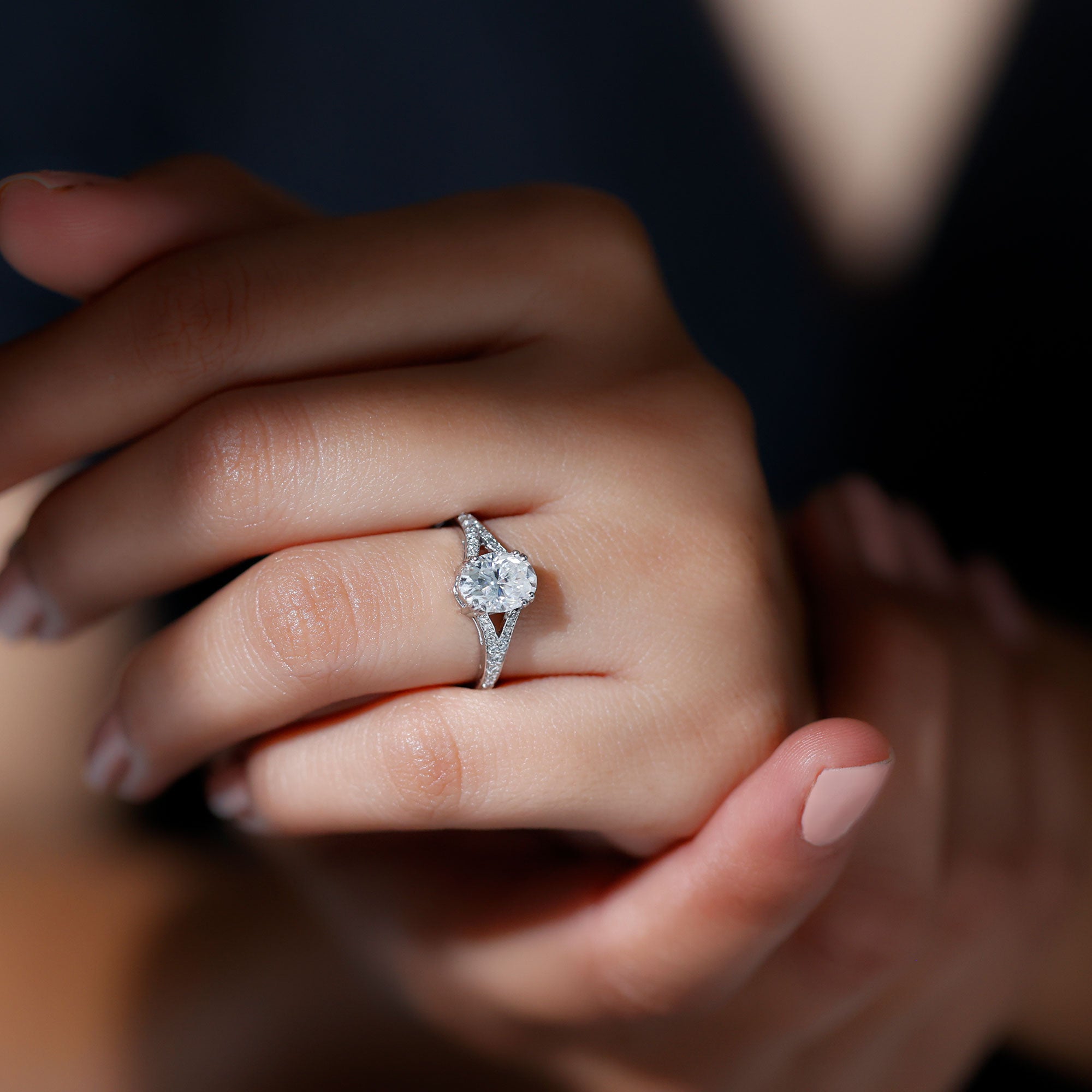 Oval Brilliant Cut Lab Diamond Engagement Ring with Split Shank