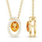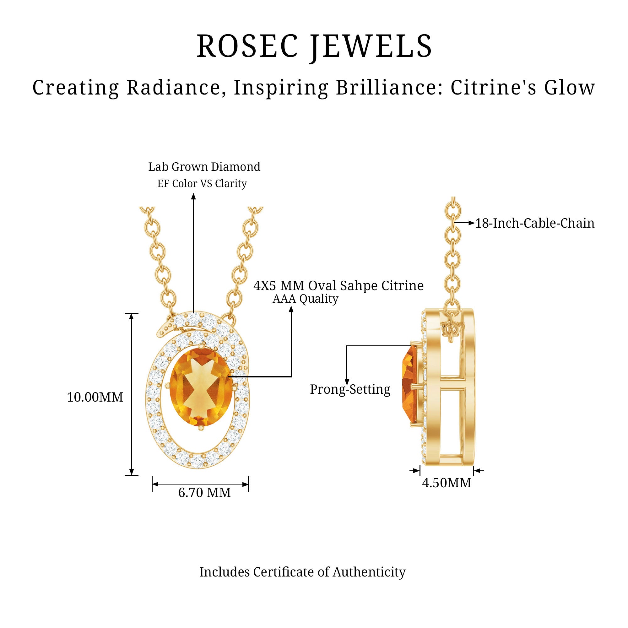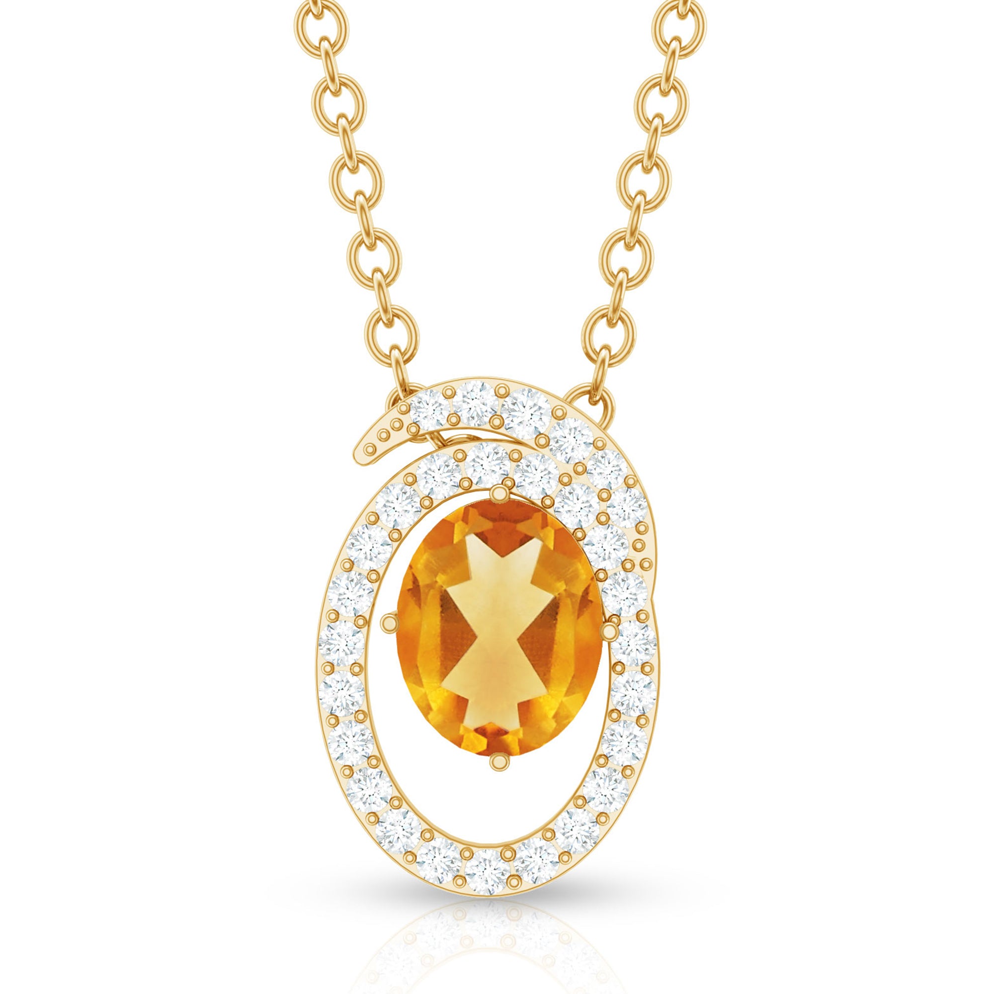 Oval Citrine and Diamond Swirl Necklace for Women in Silver