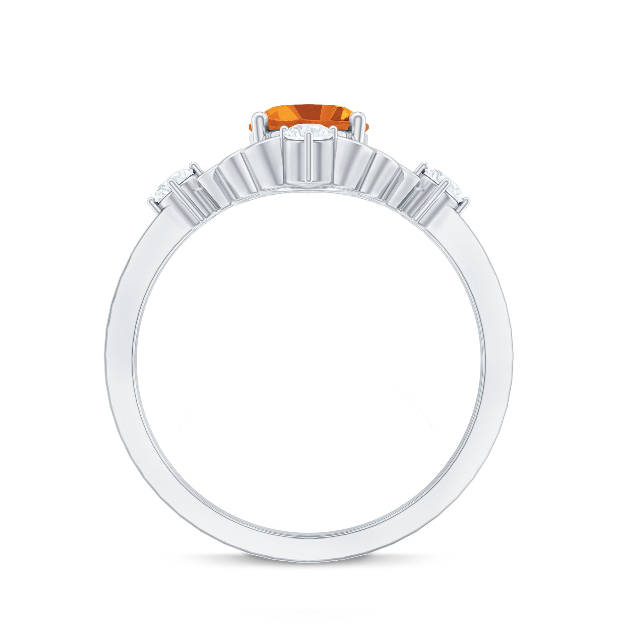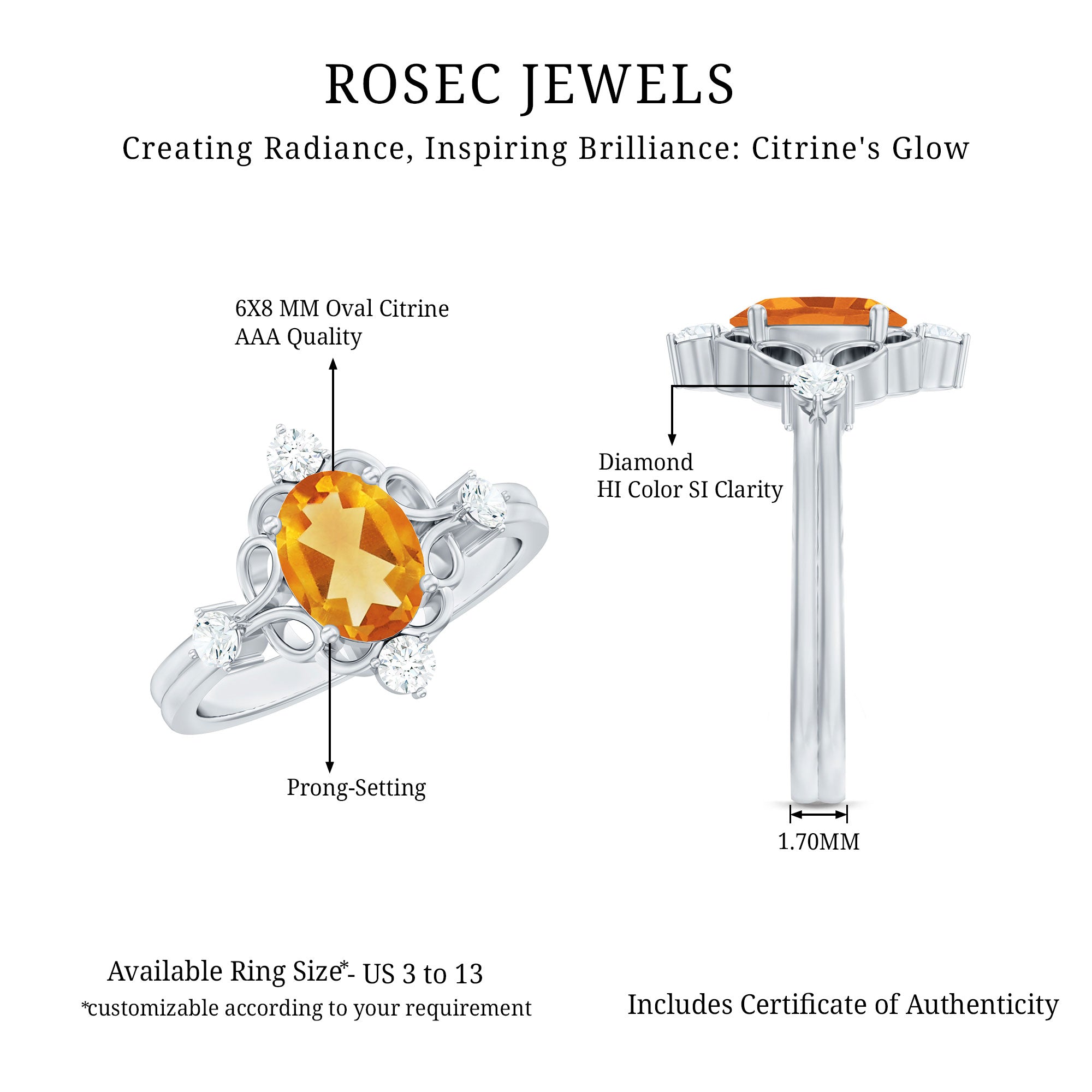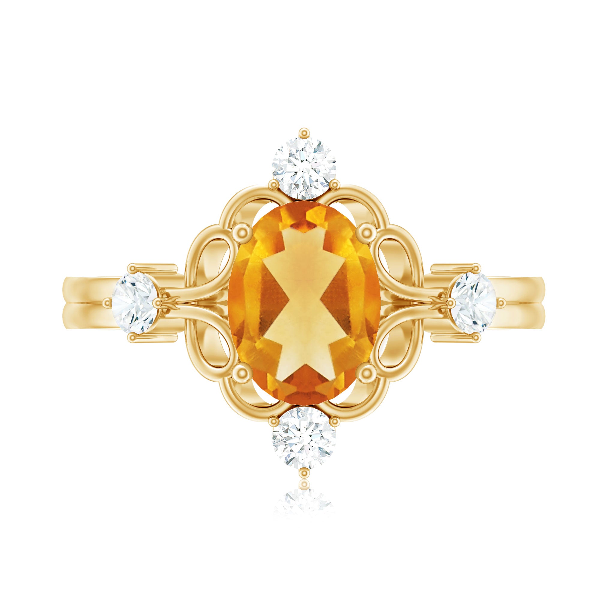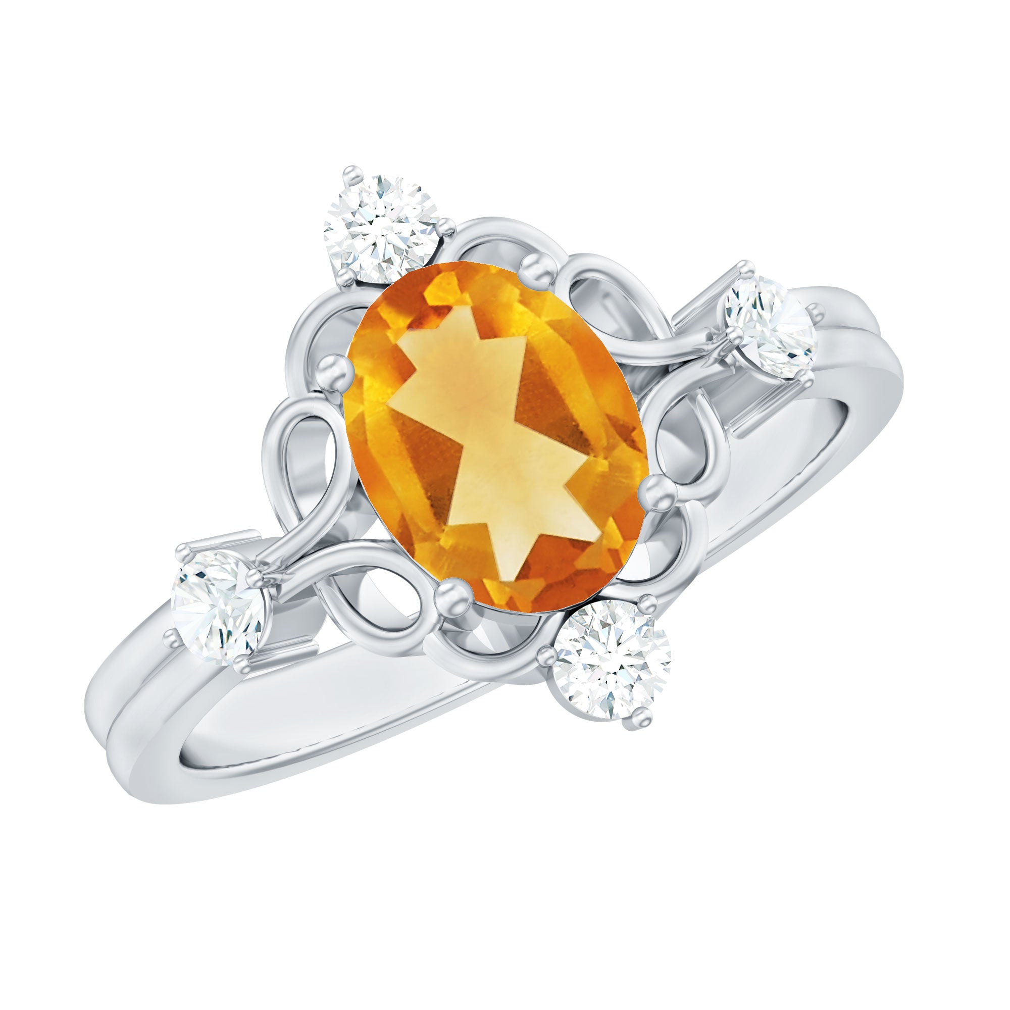 The luscious shank is set with a central oval citrine that is complemented with traditional detailing and round Diamond for added radiance. The citrine is held in place with prongs, adding a timeless appeal to this gorgeous cocktail ring. If you are keen on classic solitaire that has a touch of modernity, this oval cocktail ring will not disappoint.