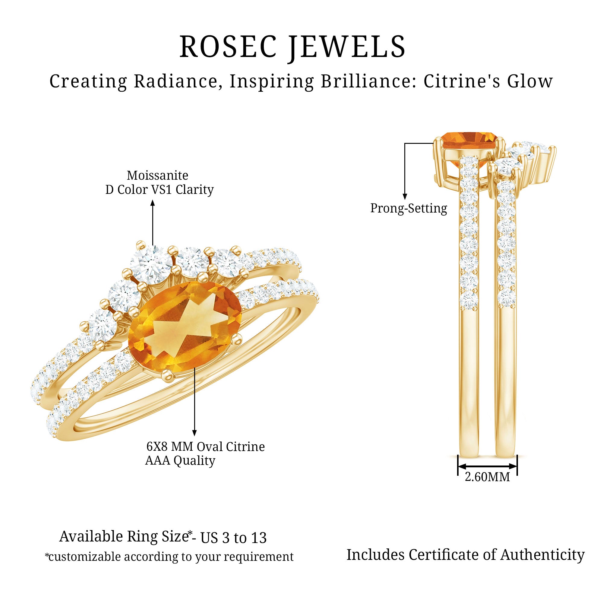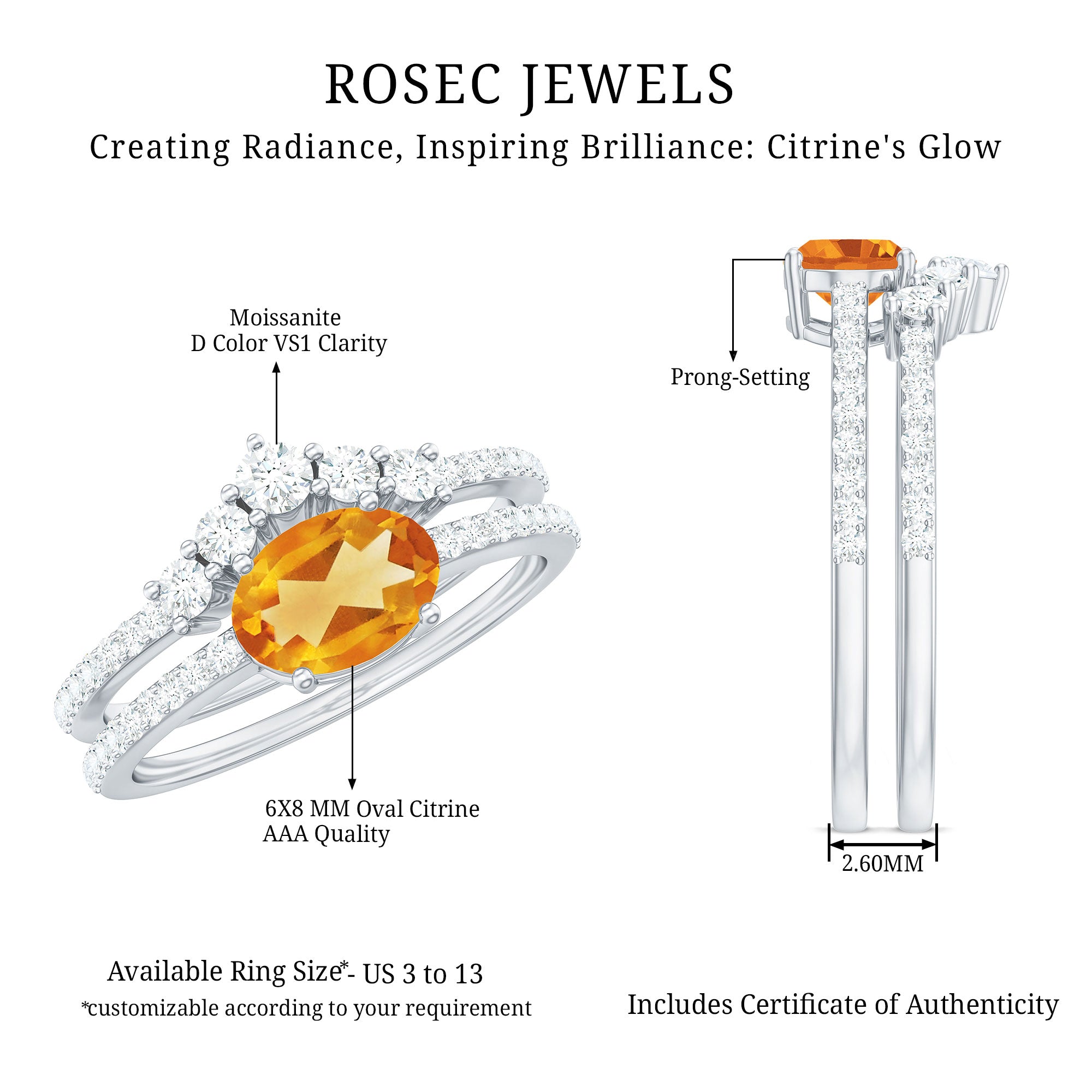 Oval Citrine East West Wedding Ring Set with Moissanite