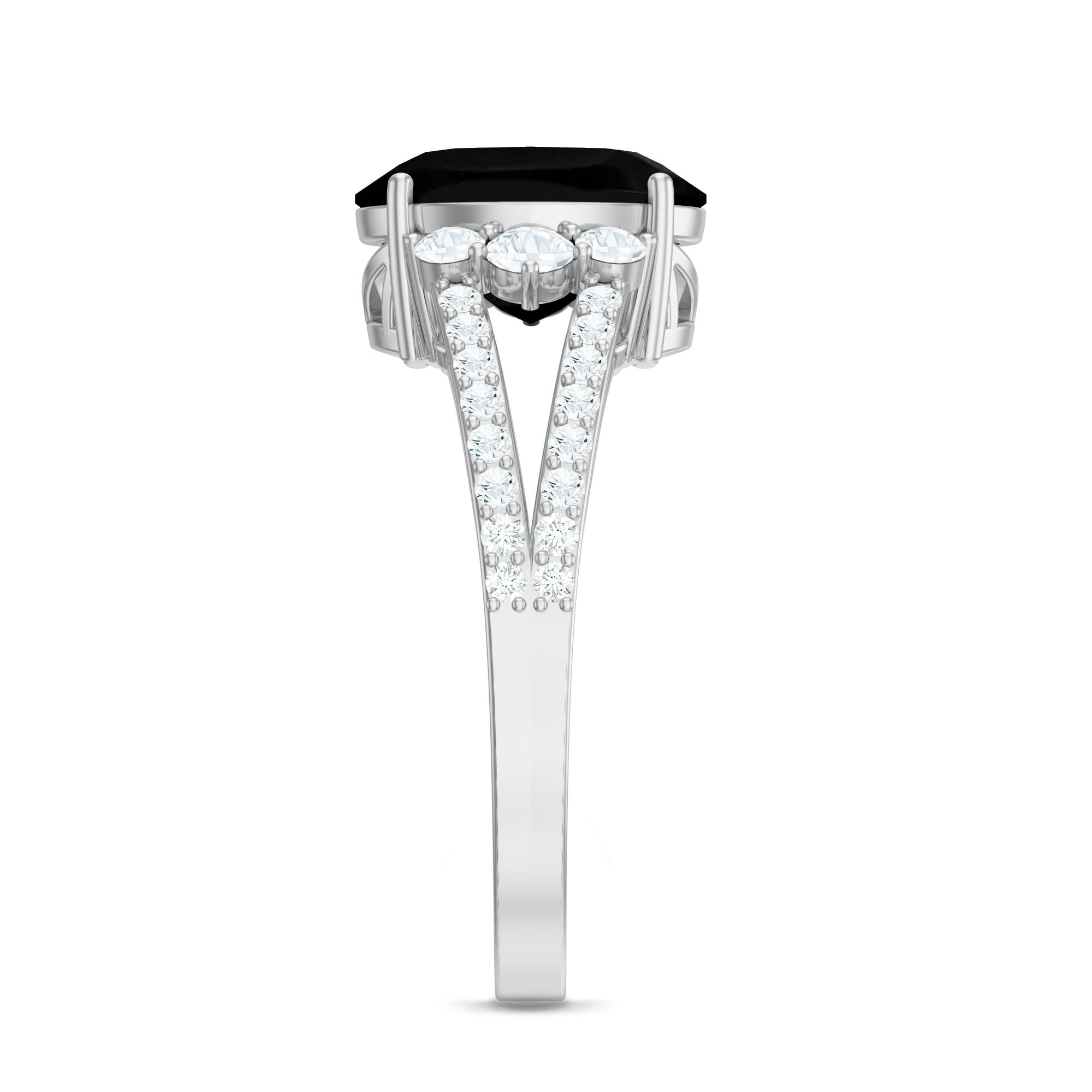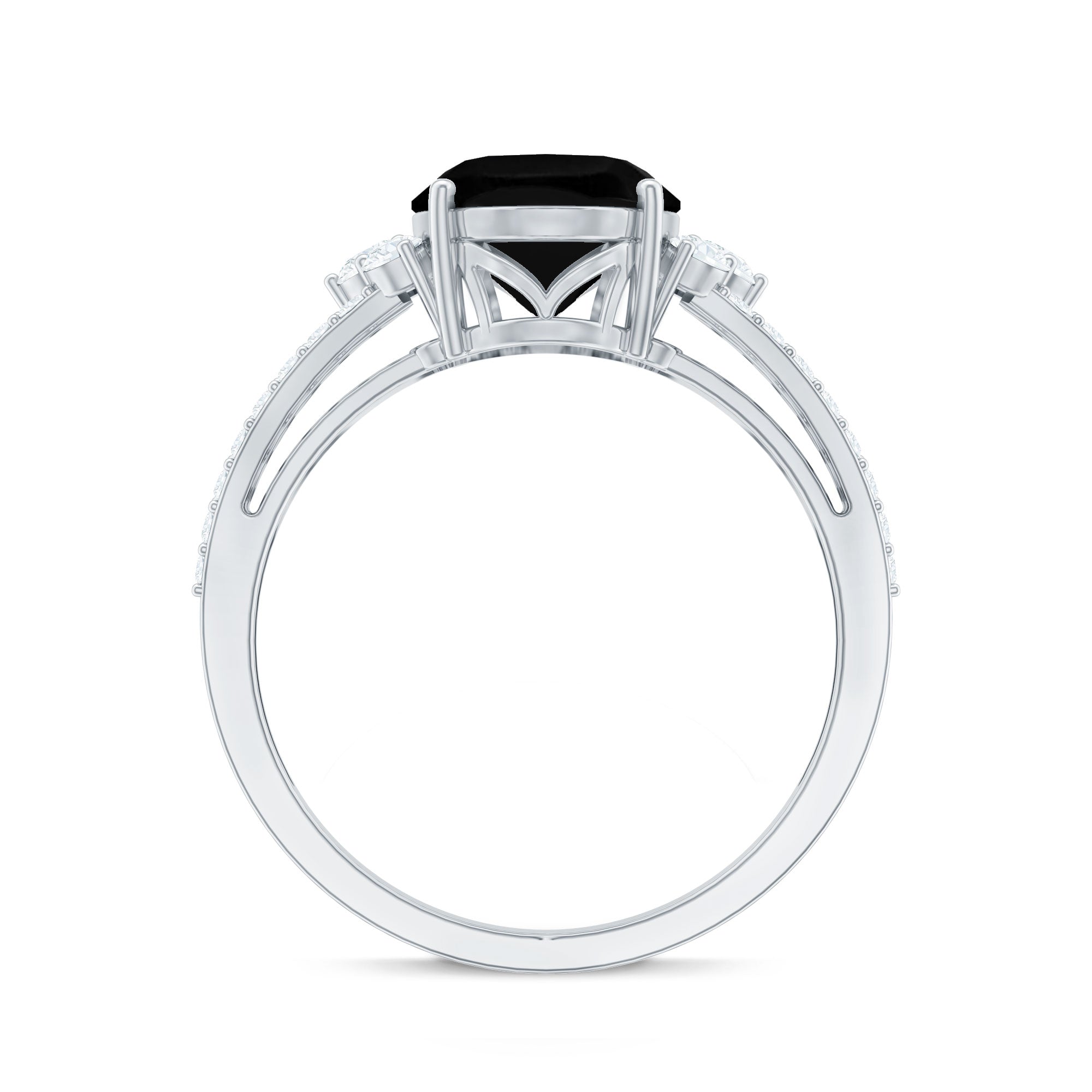 Oval Created Black Diamond Engagement Ring with Diamond Split Shank
