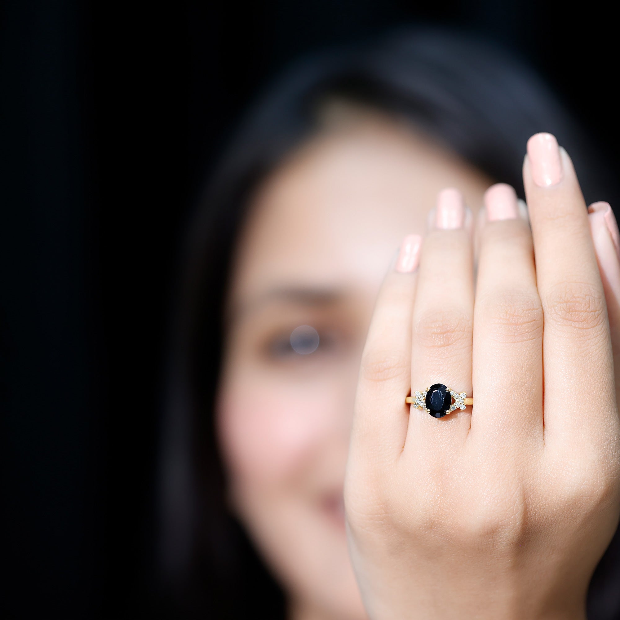 Oval Created Black Diamond Solitaire Ring with Diamond in Split Shank