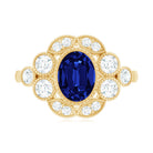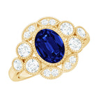 Make a grand and unforgettable statement of your love with this breathtaking Statement Engagement Ring. Featuring a dazzling Oval Cut Created Blue Sapphire at the center, surrounded by a halo of shimmering Round Diamond stones, this ring is an enchanting piece of fine jewelry that will leave your lady overwhelmed. The Gold Beaded Details of the ring add a touch of elegance and sophistication, making it even more exquisite and beautiful. Give this extraordinary Oval Created Blue Sapphire Ring to your special someone and let her know just how much she means to you.