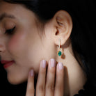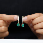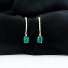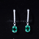 Oval Created Emerald and Diamond Hoop Drop Earrings