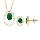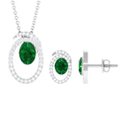Oval Created Emerald and Moissanite Contemporary Jewelry Set