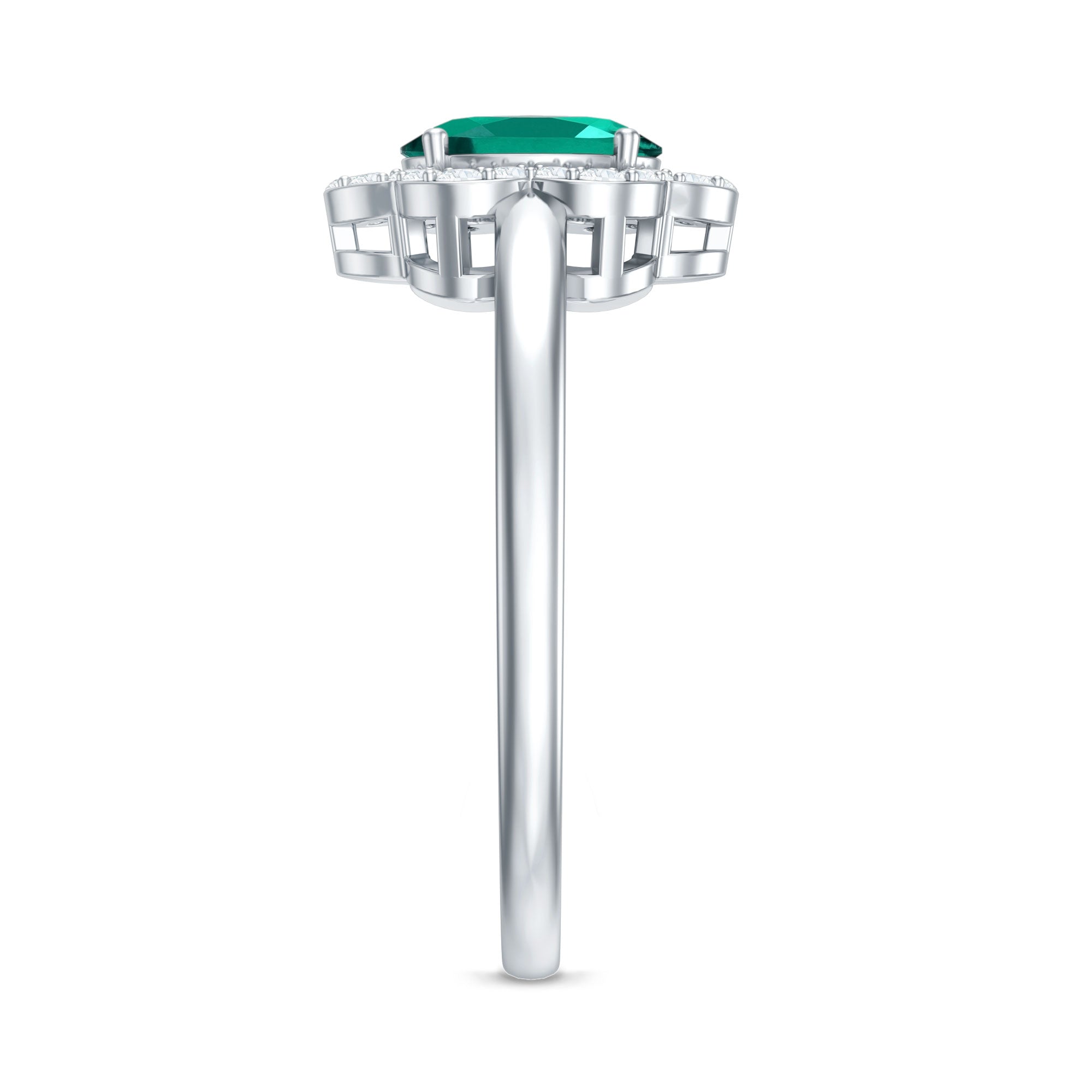 Certified Lab Grown Emerald Diamond Flower Engagement Ring With Diamonds