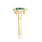 Intensify your elegance with the captivating Engagement Ring featuring an embellishment of an Oval Cut Created Green Sapphire and a delicate collar of Round Cut Moissanite. This exceptional Solitaire Ring serves as an impeccable accessory for all occasions, effortlessly bringing a touch of sophistication to every ensemble.