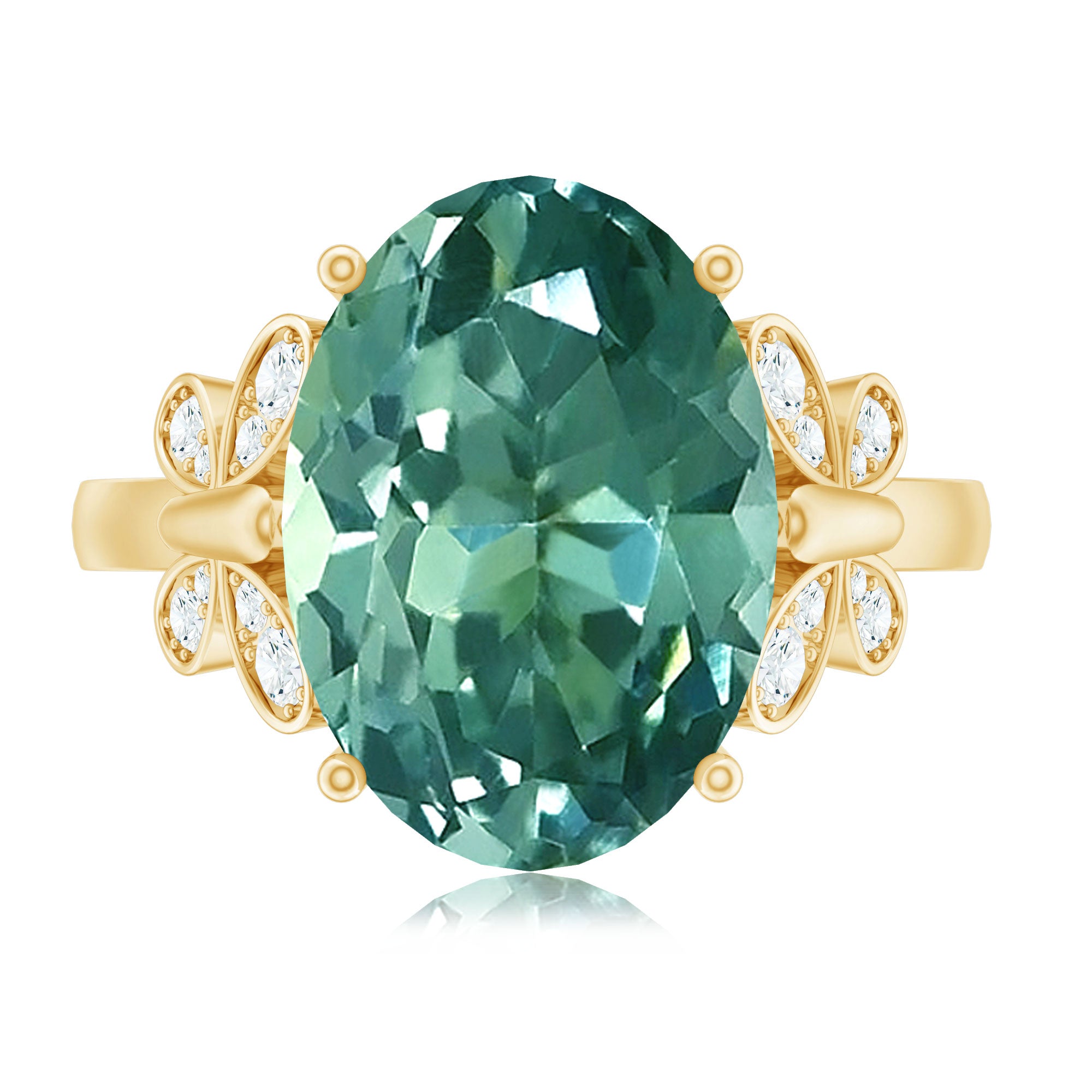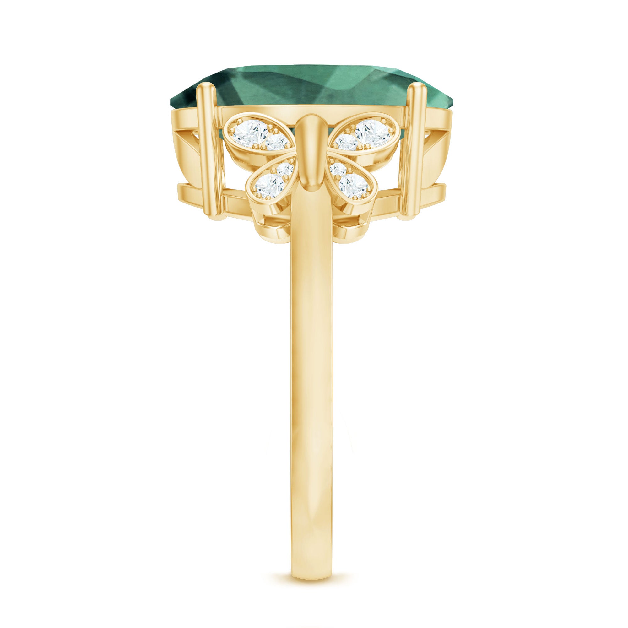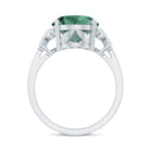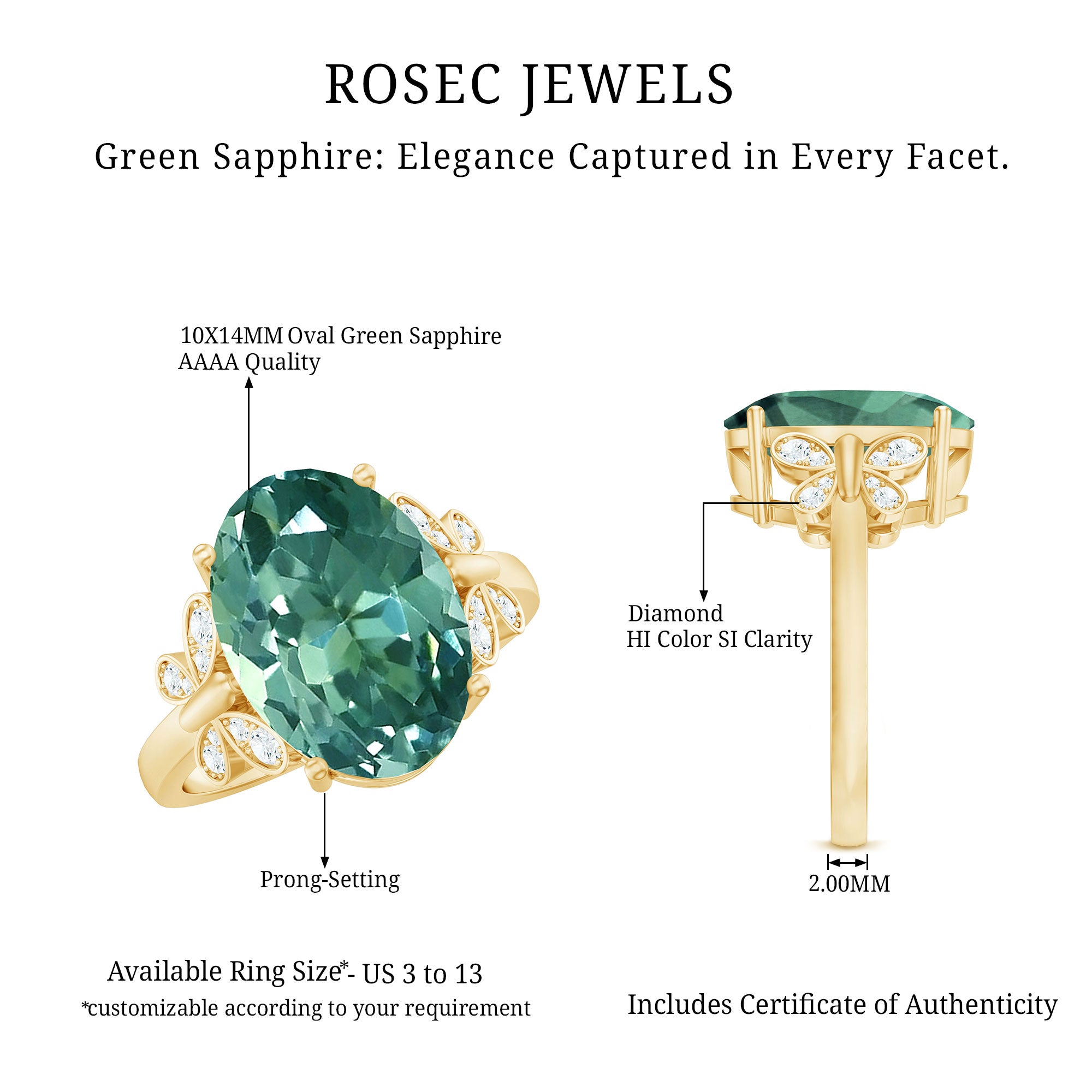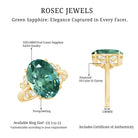 Get this Statement Ring for your soulmate that will complement her personality. Decorated with Oval Cut Lab Created Green Sapphire secured in Prong Setting and Round Shape Diamond enhancing its shine. The Created Green Sapphire Ring will symbolize your eternal love for your special person. So, dont wait to get this Oval Ring and make her feel like a queen on her big day.