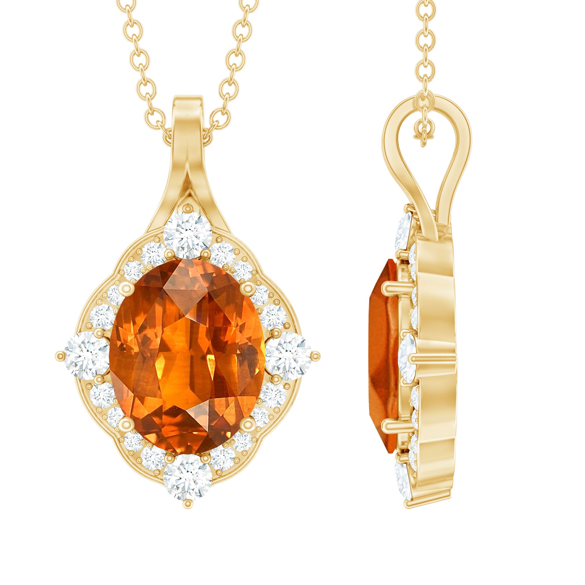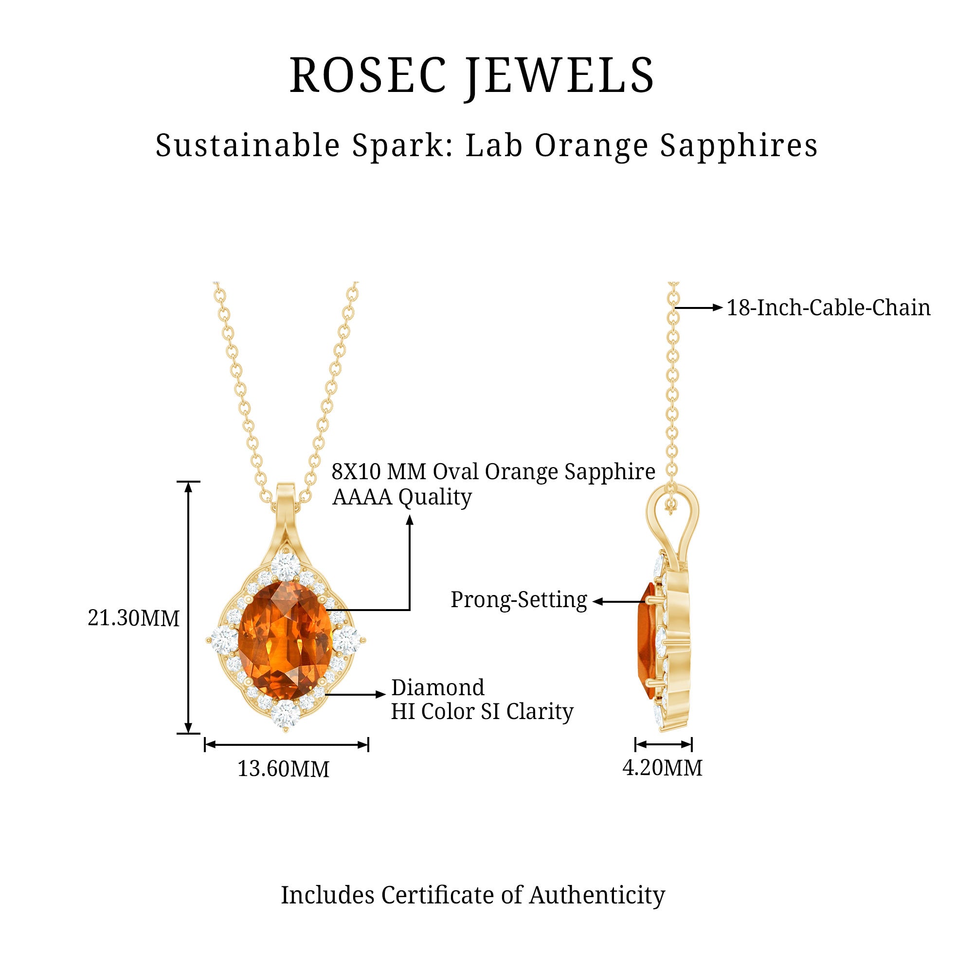 Oval Created Orange Sapphire Vintage Style Pendant with Diamond Halo