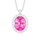 Oval Created Pink Sapphire Halo Pendant with Diamond